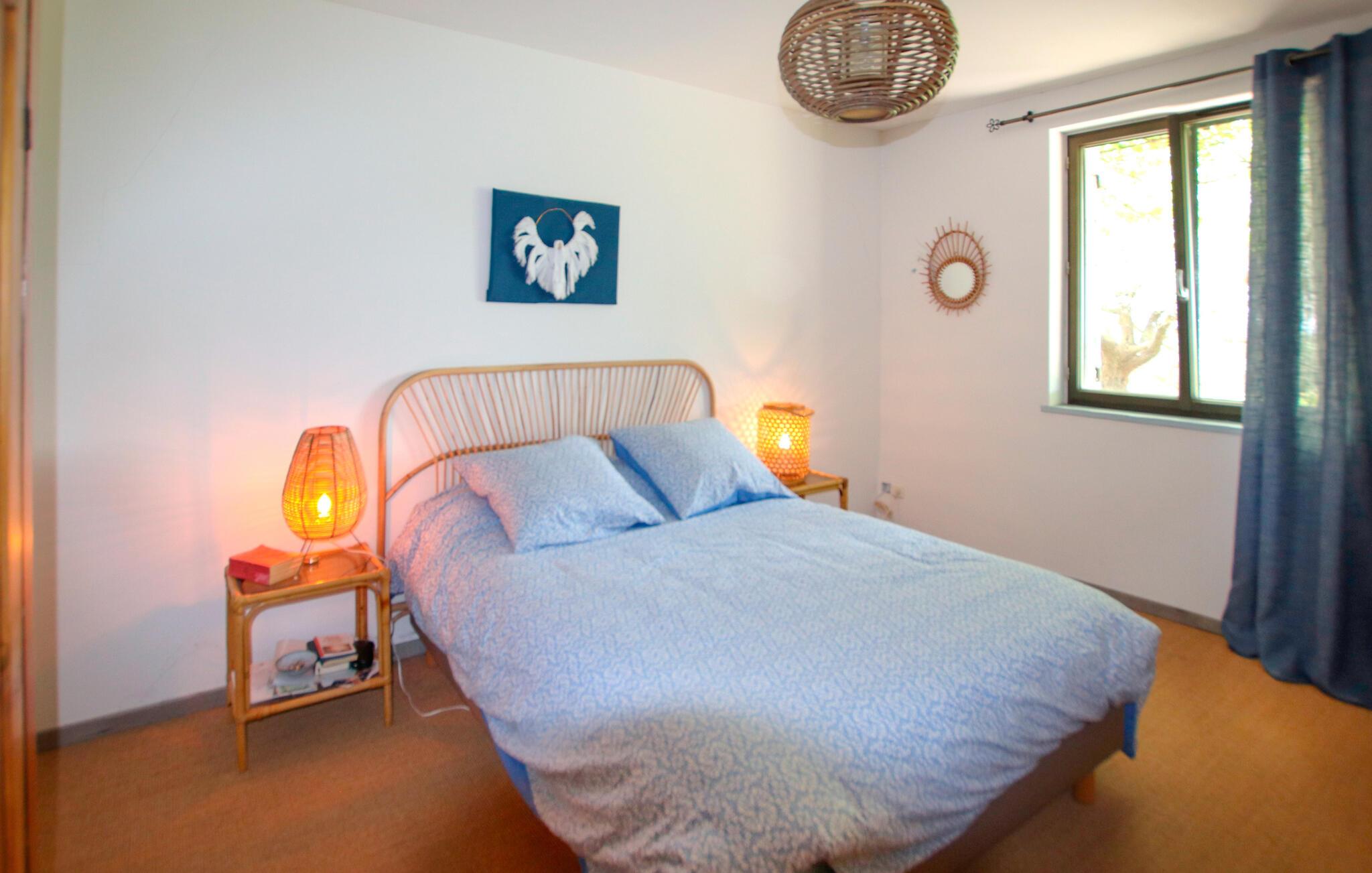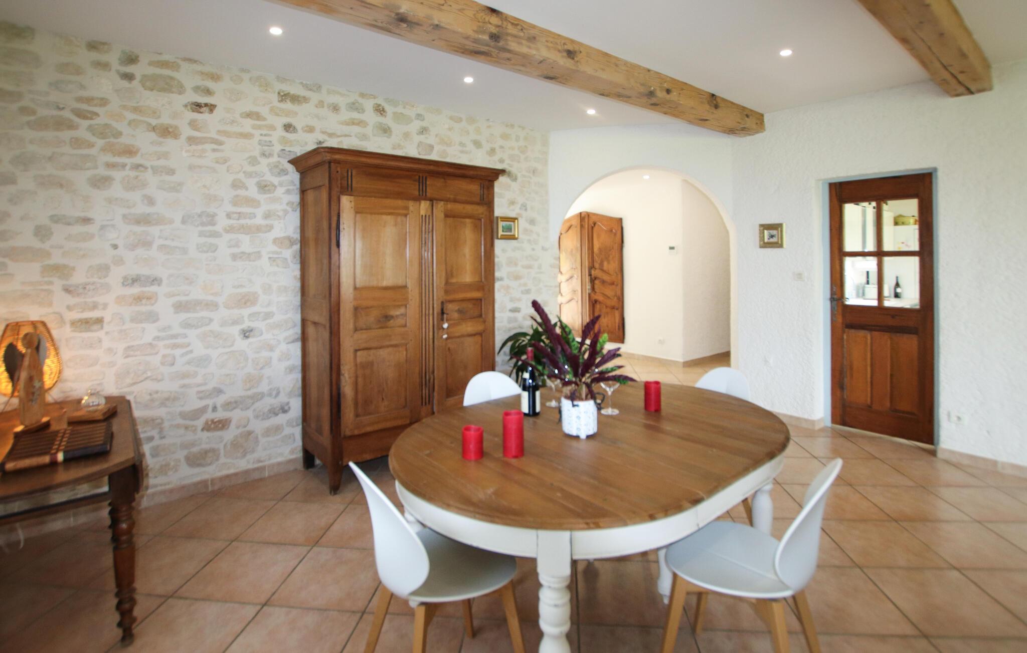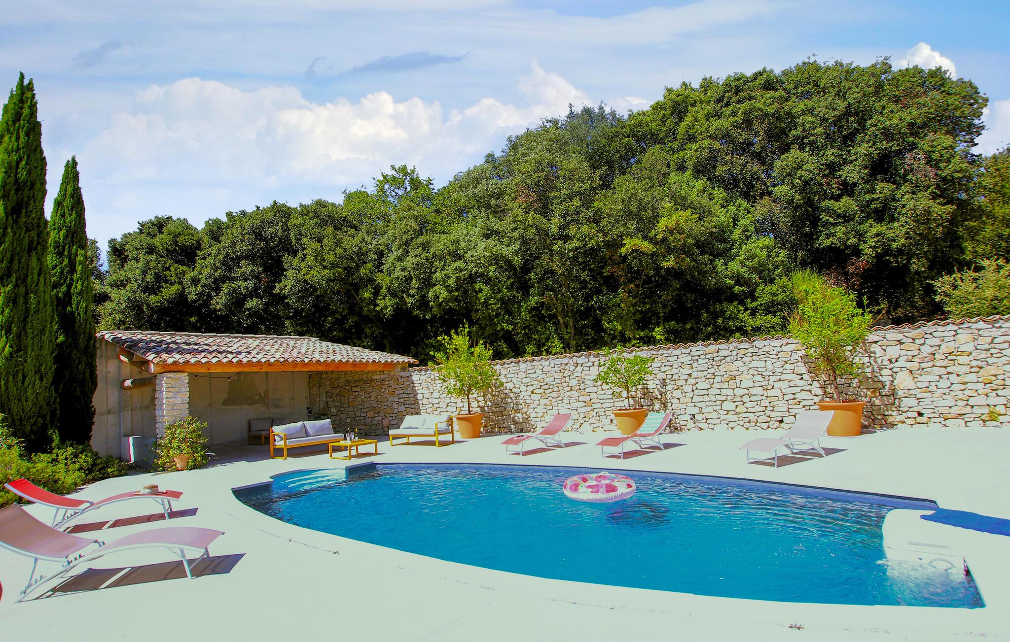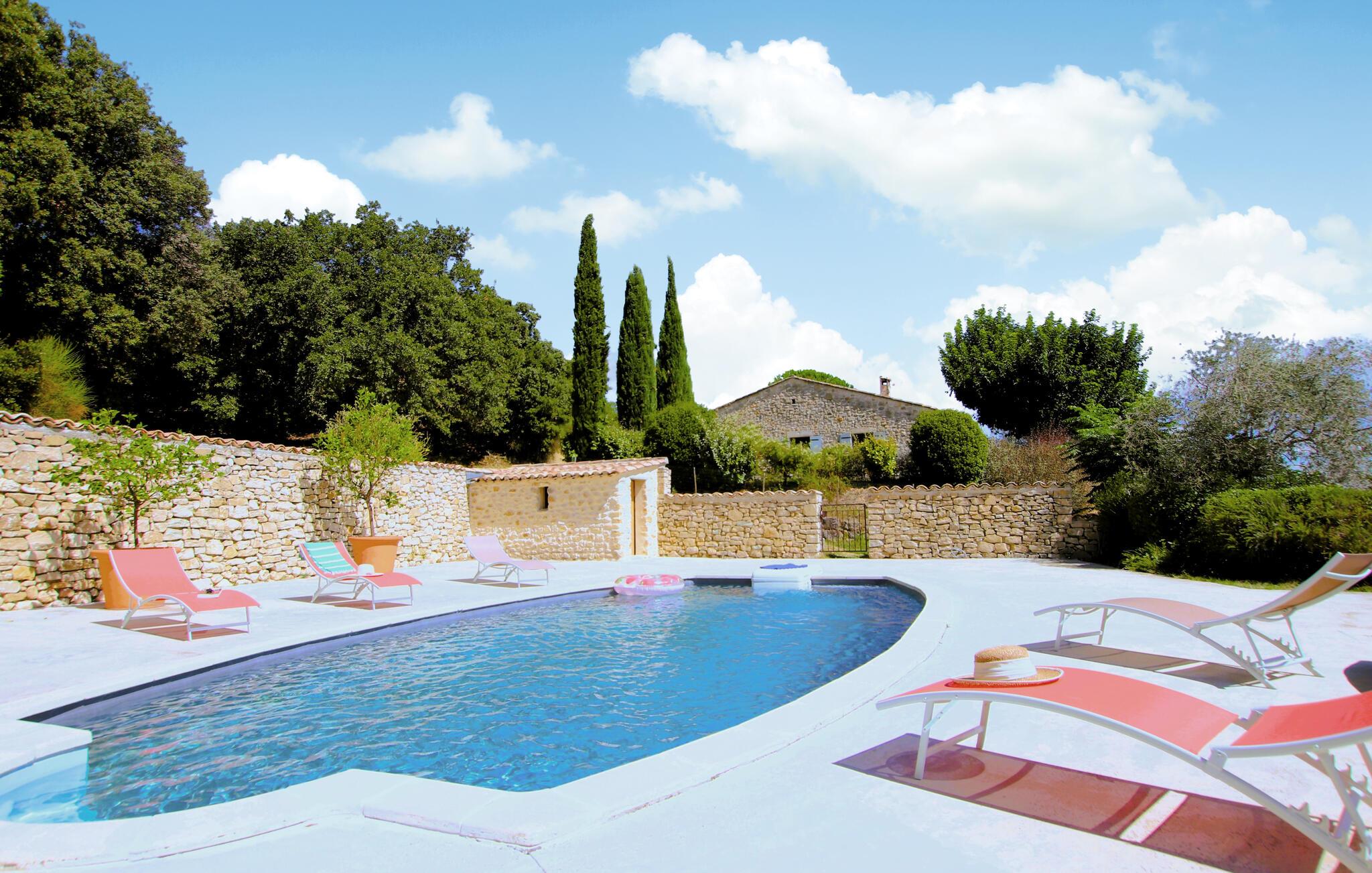 Tilbring uforglemmelige dage i dette provencalske feriehus med pool i en idyllisk beliggenhed. Denne karakterfulde oase af ro byder jer velkommen mellem de imponerende Gorges de l'Ardèche, den vidtstrakte Rhône-dal og den frodige Ibie-dal. Lad jer betage af det rummelige, lyse opholdsområde - ideelt til en stor familie eller en gruppe venner. Glæd jer til masser af komfort med kærligt udvalgte møbler i fint træ og velholdte naturstensvægge. Jeres feriehus ligger på en fortryllende grund med udsigt over en stor vingård. Nyd jeres måltider under skyggefulde vinstokke, slap af i poolen og nyd den fredelige atmosfære, mens I læser eller nipper til et glas regional vin. Besøg middelalderbyen Saint-Montan med dens charmerende klatreruter, vandrestier og autentiske bistroer. Udforsk Grotte de Saint-Marcel, Chauvet-hulen eller den spektakulære Gouffre de l'Aven d'Orgnac. Besøg renæssanceslottet Château de Grignan, fæstningen Suze-la-Rousse eller den gamle by Alba-la-Romaine. Nyd vandsport ved Lac de Pigne Doré, prøv nougat i Montélimar, eller tag en kanotur gennem Ardèche-kløften.