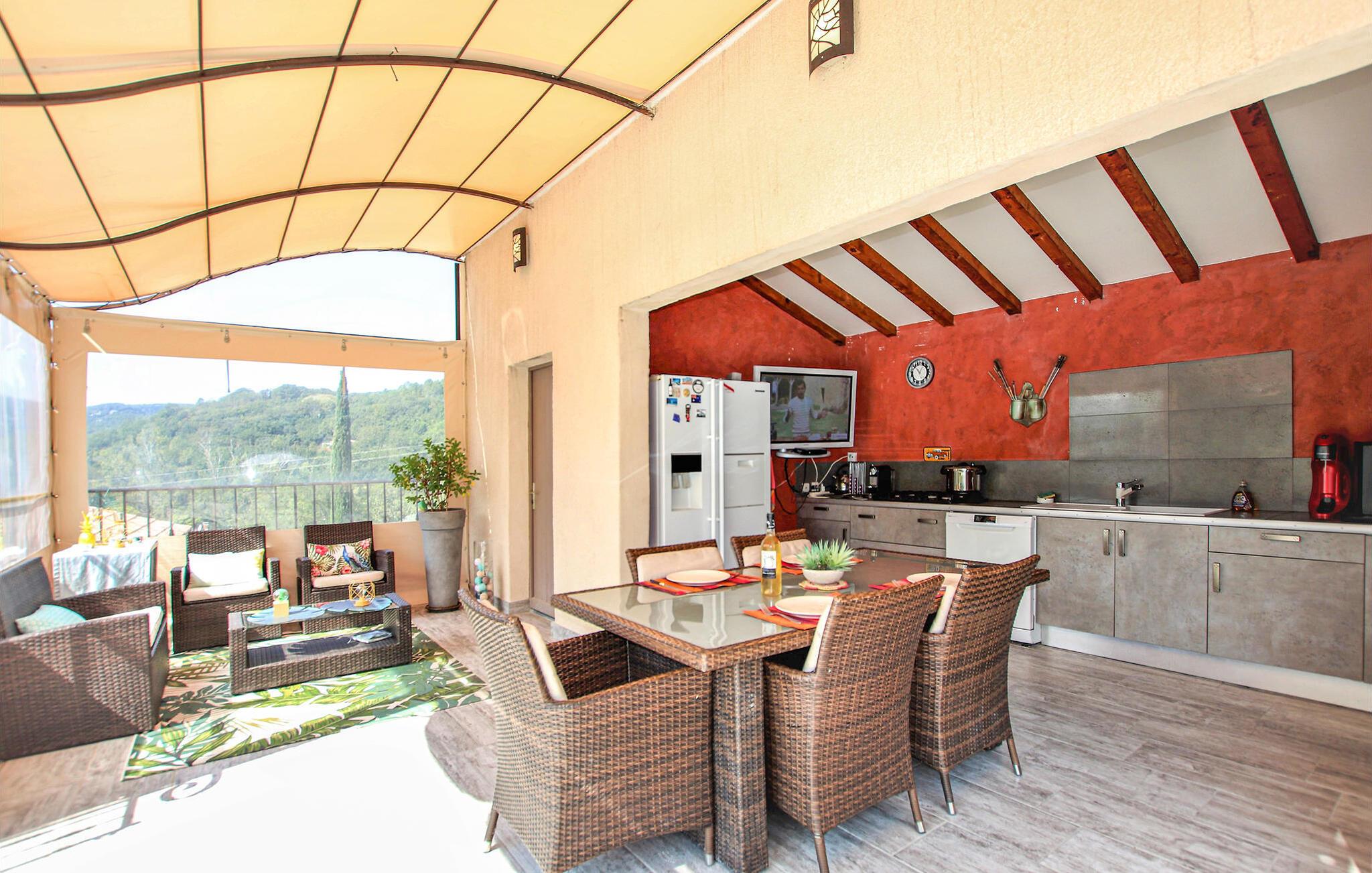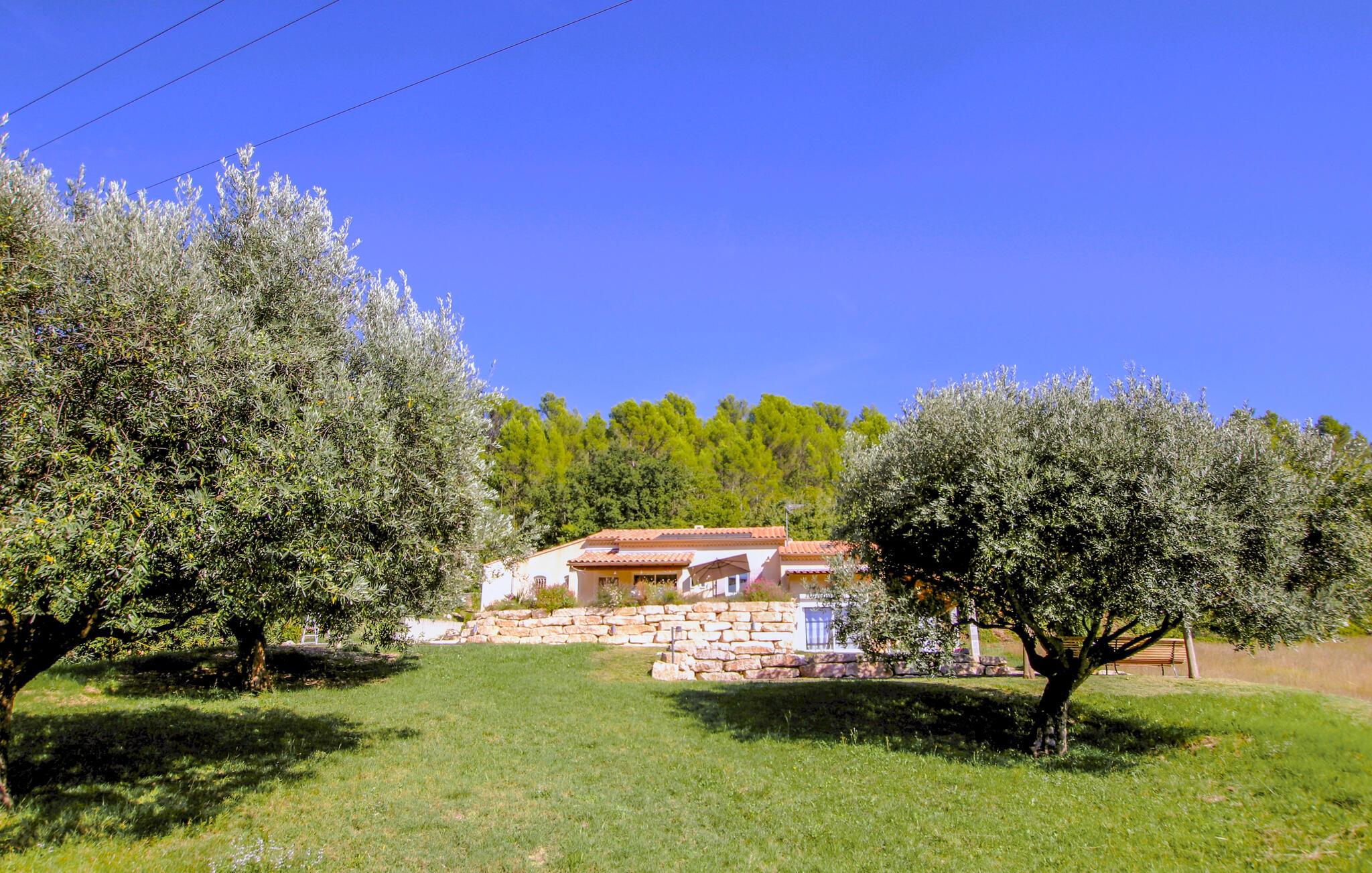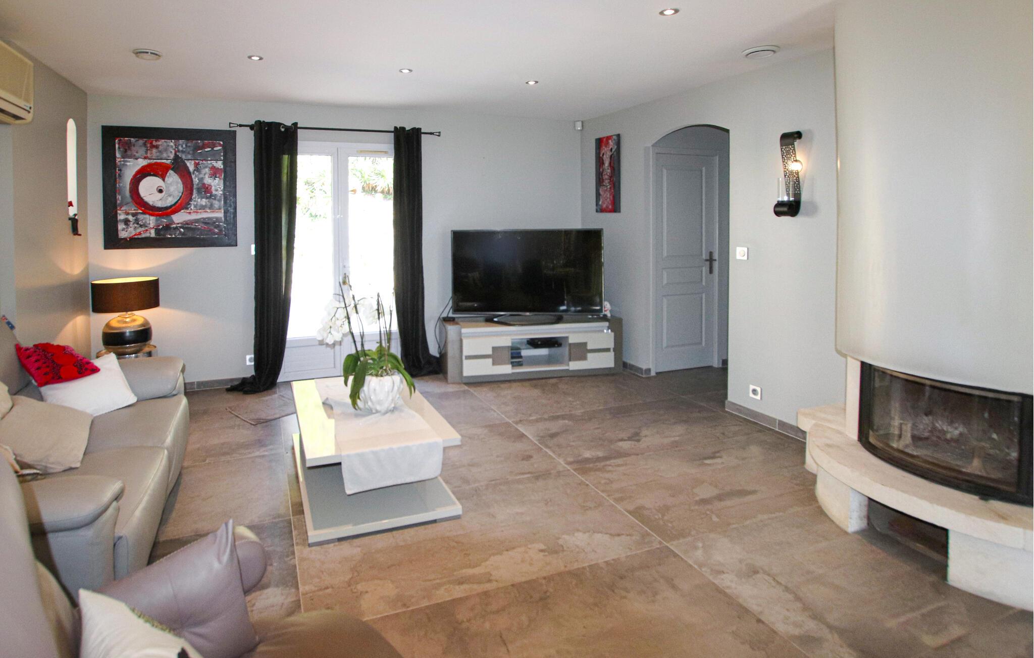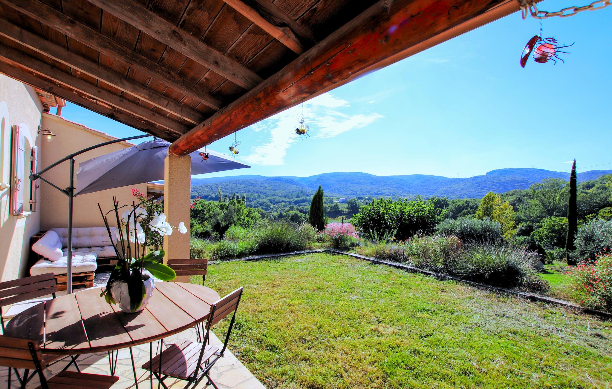 Din feriedestination er kendt for sine klatreområder, vandrestier samt sine kroer og gourmetbistroer. Nyd en moderne provencalsk villa beliggende på en stor, idyllisk grund. Husets indretning består af to hyggelige og komfortable områder lavet af materialer af høj kvalitet – ideelt til store familier eller par, der samles. Gør det behageligt i den indbydende stue med pejs. De moderne møbler er stilfulde og omhyggeligt designet.