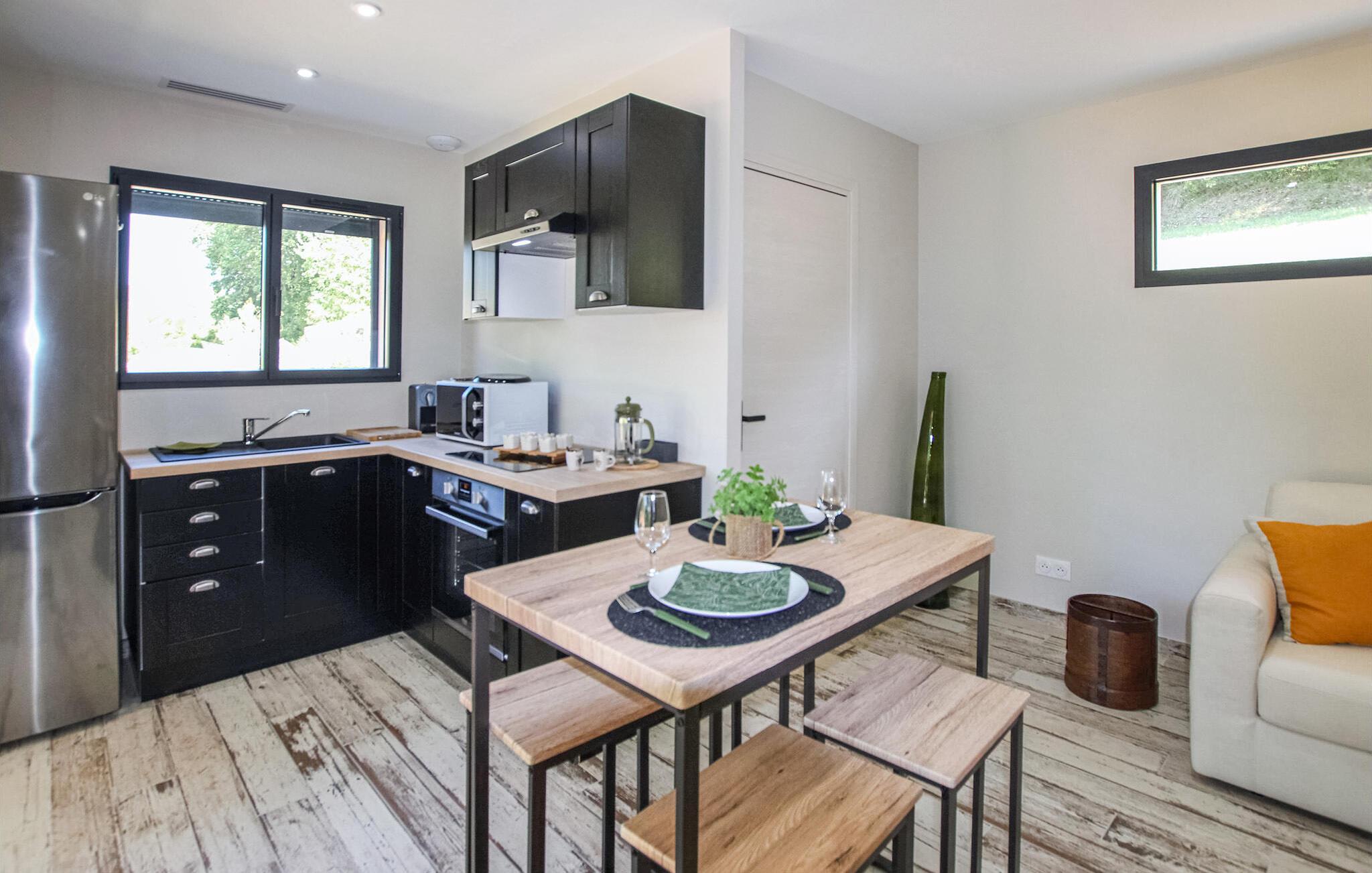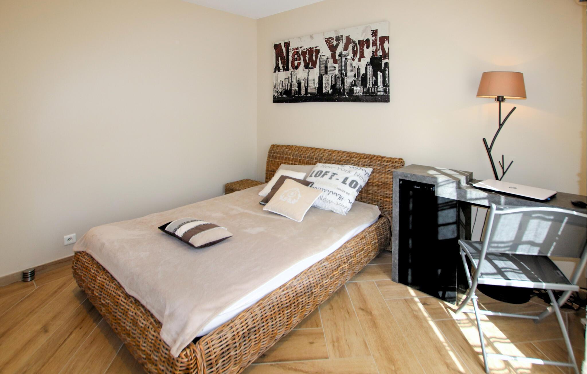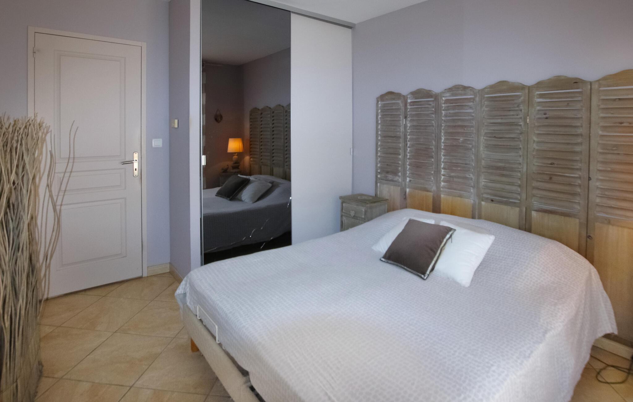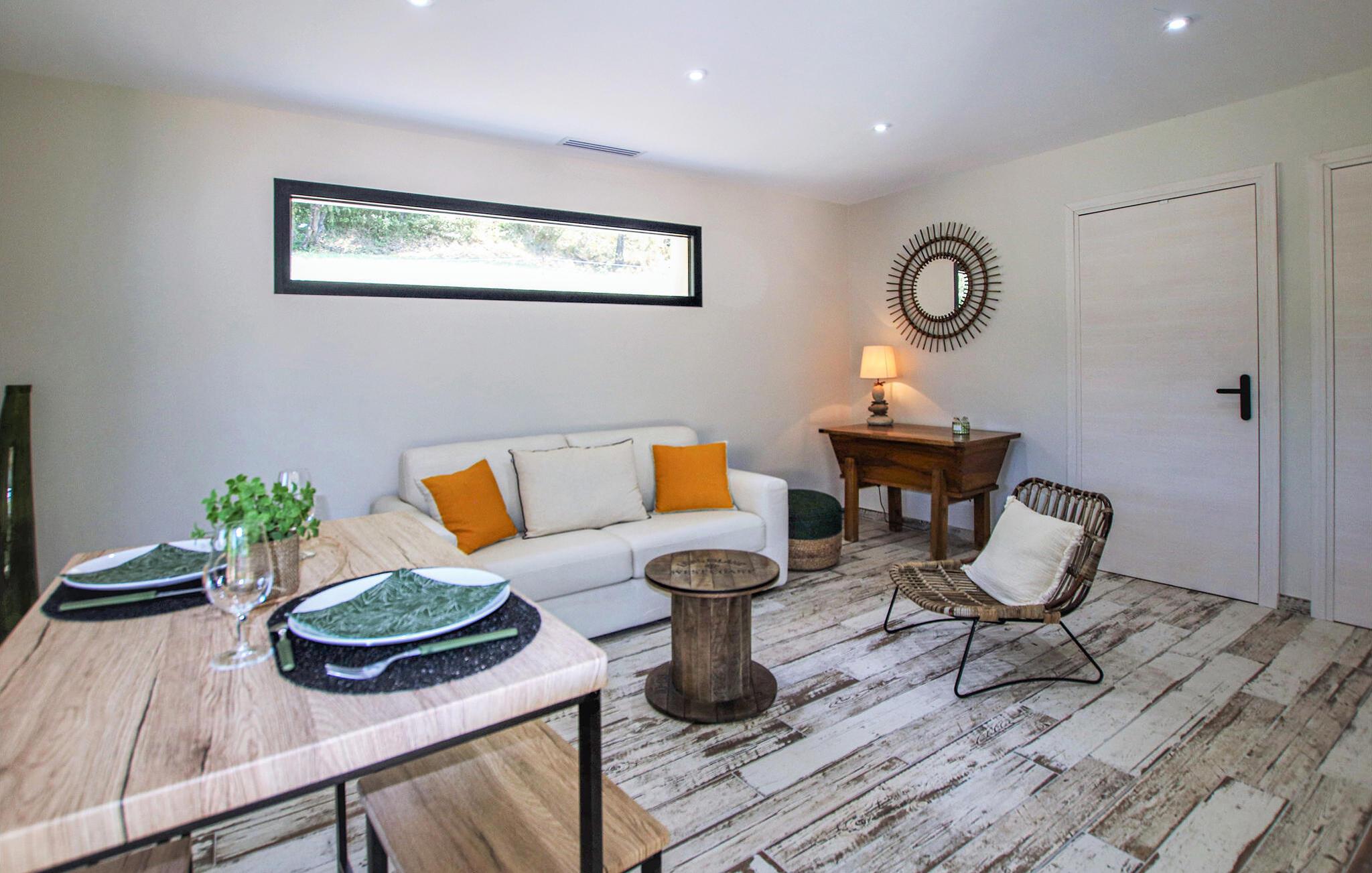Din feriedestination er kendt for sine klatreområder, vandrestier samt sine kroer og gourmetbistroer. Nyd en moderne provencalsk villa beliggende på en stor, idyllisk grund. Husets indretning består af to hyggelige og komfortable områder lavet af materialer af høj kvalitet – ideelt til store familier eller par, der samles. Gør det behageligt i den indbydende stue med pejs. De moderne møbler er stilfulde og omhyggeligt designet.
