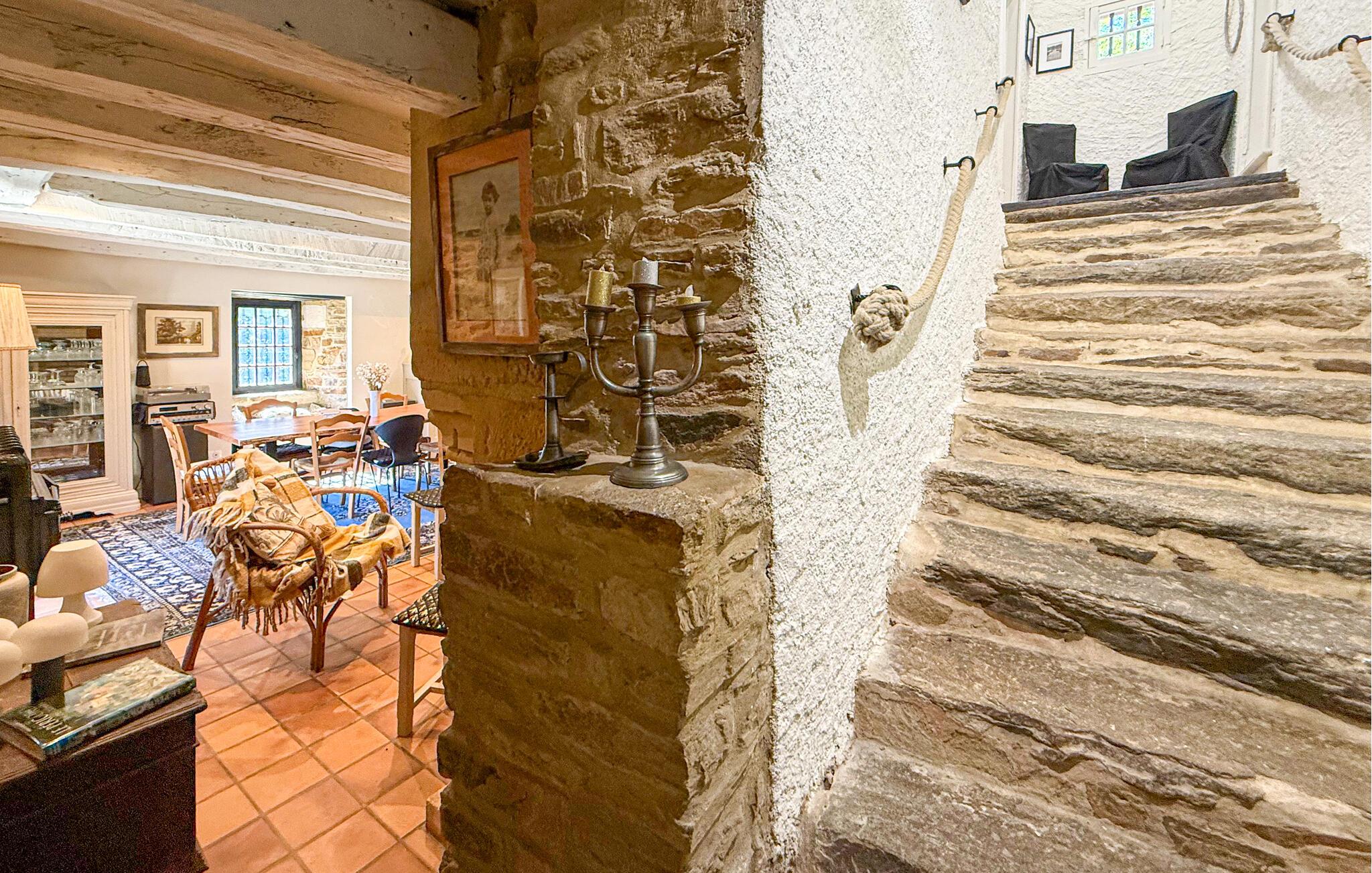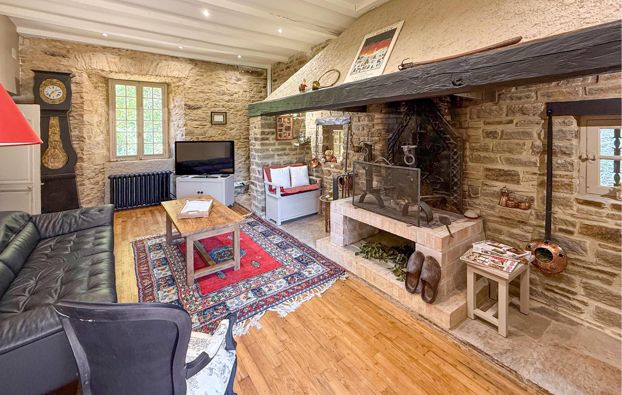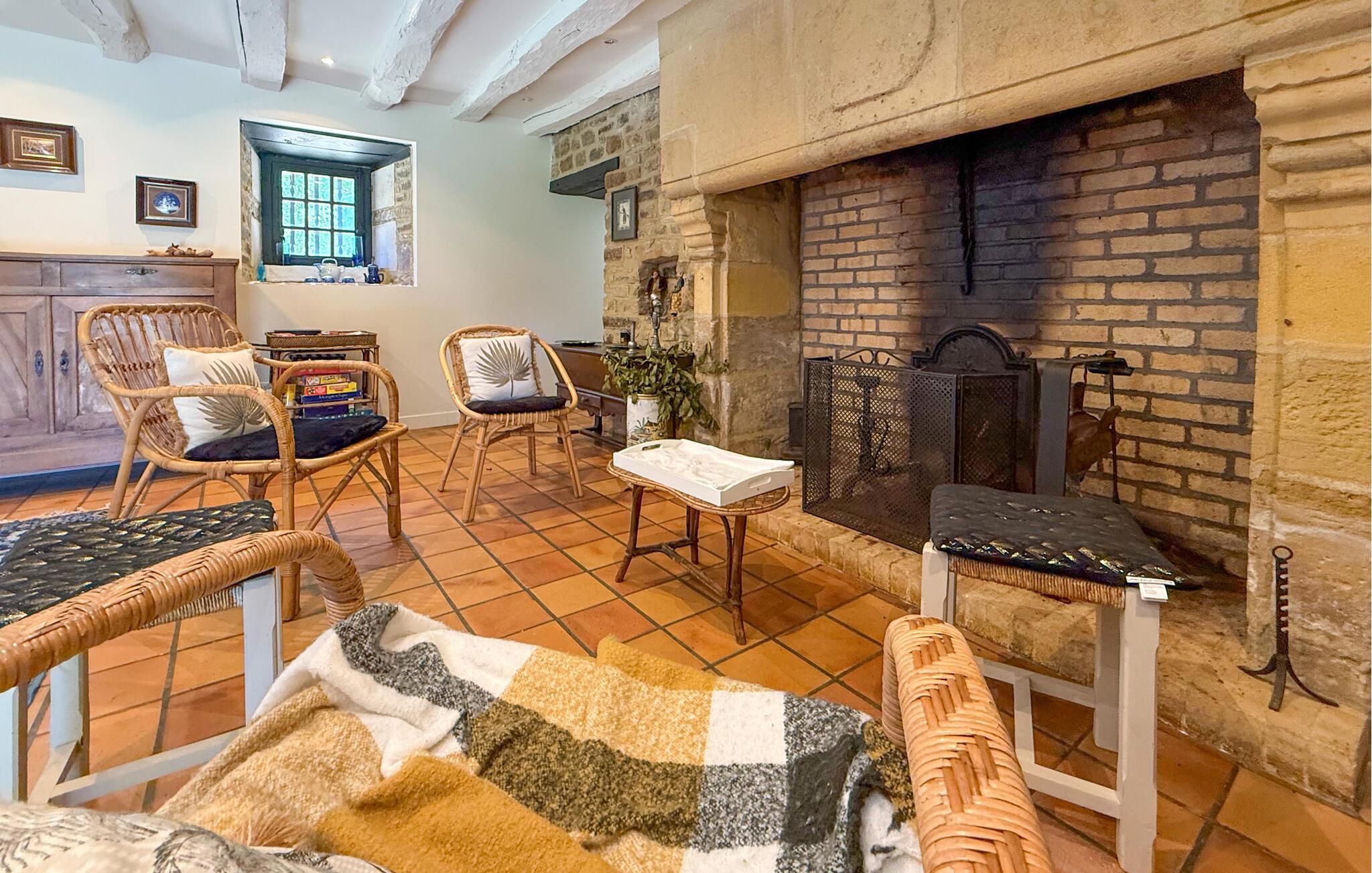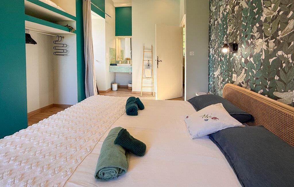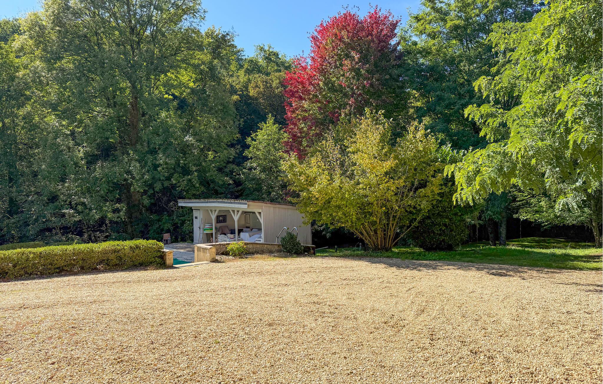 Dette landsted i Saint-Paul-la-Roche, Green Perigord Vert, har en stor privat pool (18m x 8m) beliggende i naturlige omgivelser langs floden L'isle. Ejendommen byder på et veludstyret køkken med direkte udendørs adgang og en rummelig spise-/stue med pejs i stueetagen. De komfortable værelser er placeret på første og anden sal. Udendørs byder ejendommen på en stor have med et skovområde og en ekspansiv pool omkranset af 800 m flodbredde, med vippebræt og natbelysning. Ejendommen omfatter også et overdækket poolhus med spisning og en bar med køleskab samt liggestole og en plancha til udendørs madlavning. Gæsterne kan nyde picnic ved floden ved hjælp af det medfølgende bord og liggestole. Ejendommen har flere terrasser med siddepladser og spisepladser, der tilbyder smuk udsigt og nem adgang til køkken og spiseplads. Steder at besøge under dit ophold: Brantome: Venedig i Périgord. Charmerende by med en idyllisk atmosfære, hvor man kan gå, shoppe og spise, men hvor man også kan tage på en hyggelig kanotur. Broerne, der spænder over kanalerne, fører dig til de mange terrasser, hvor du kan smage det lokale køkken. Hver fredag morgen er der et hyggeligt marked. Jumilhac-le-Grand: Denne middelalderby har et smukt slot og et stort centralt torv med terrasser. Guldmuseet arrangerer Indledning til guldvaskning i floden. Bestil til tiden. Thiviers er foie grass hovedstad. Hver lørdag er der et traditionelt bondemarked med masser af regionale produkter.