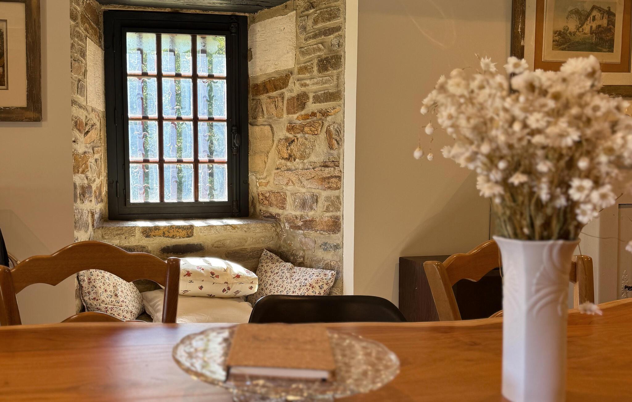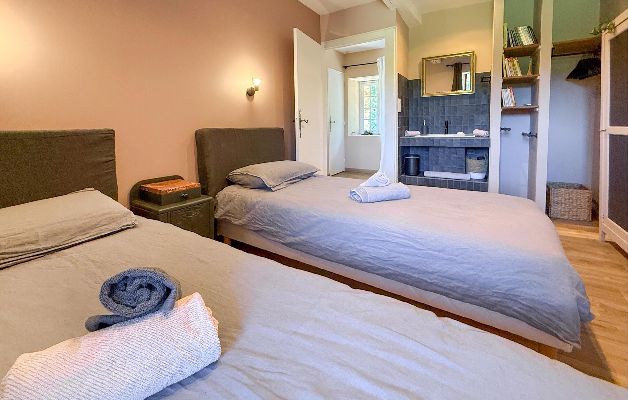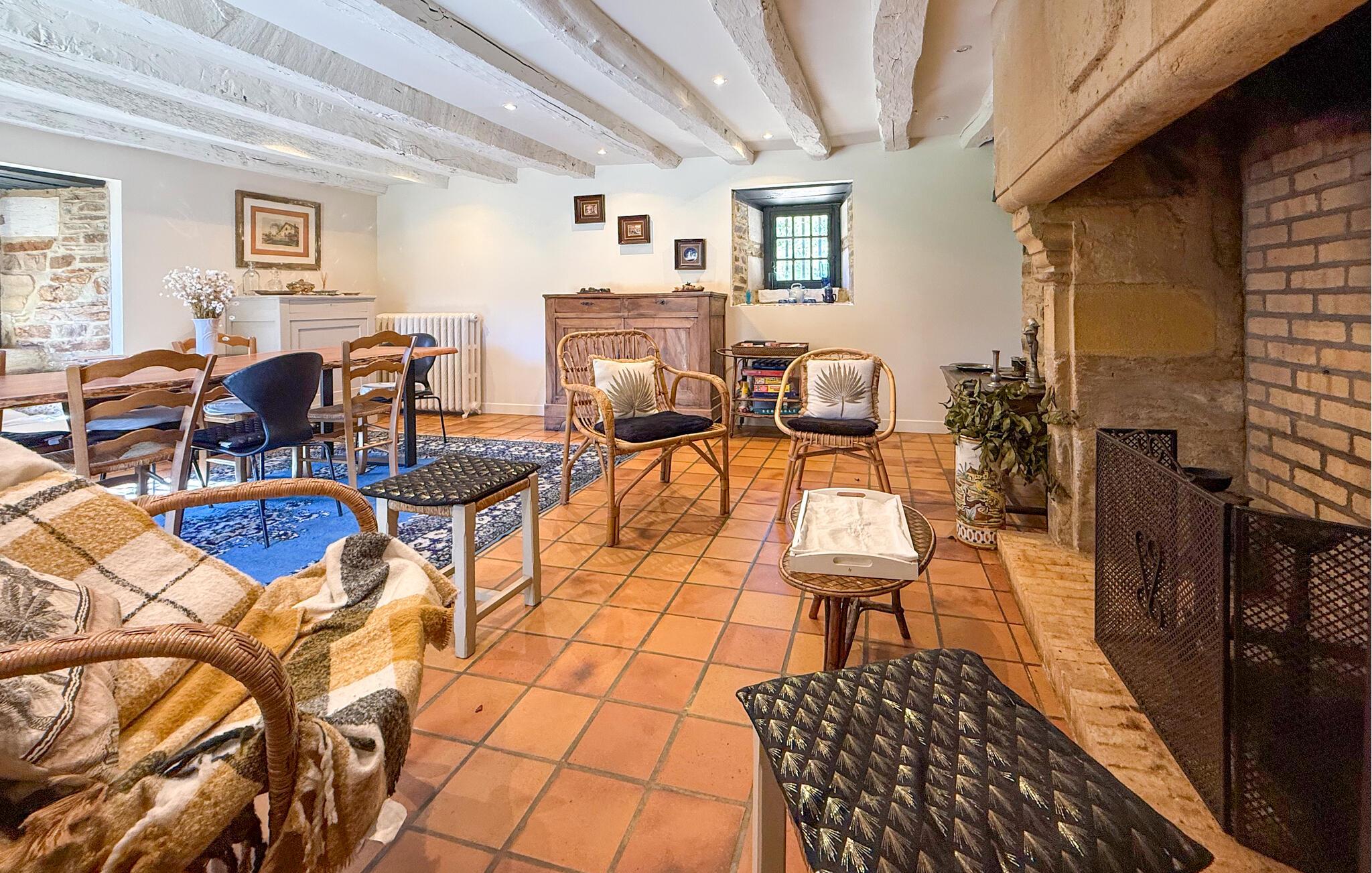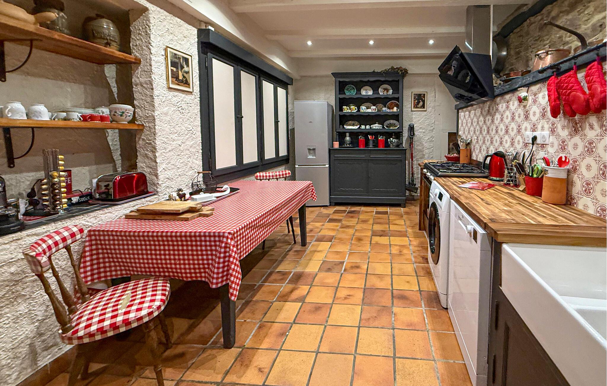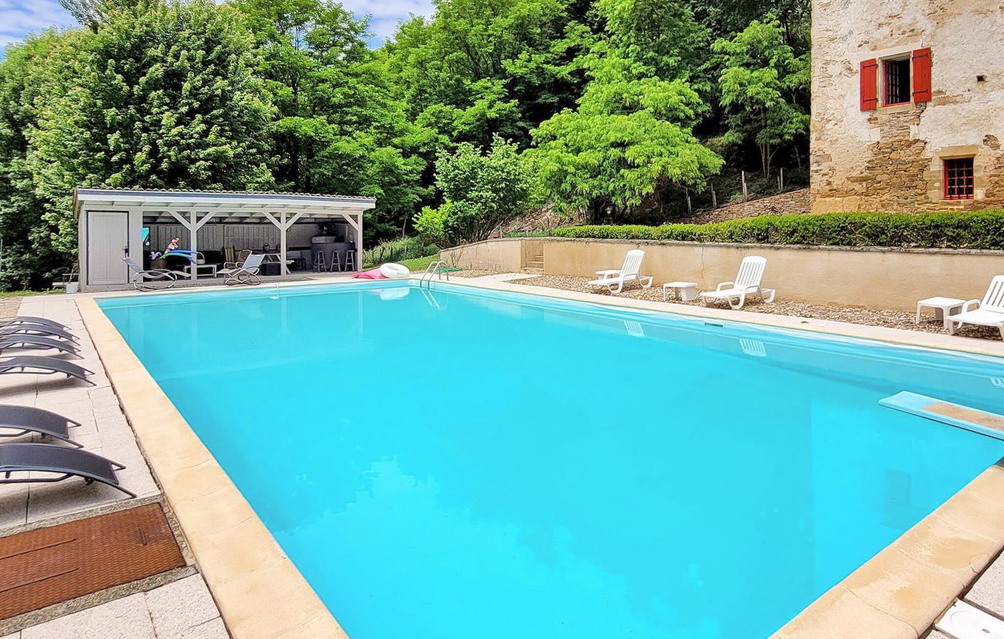 Dette landsted i Saint-Paul-la-Roche, Green Perigord Vert, har en stor privat pool (18m x 8m) beliggende i naturlige omgivelser langs floden L'isle. Ejendommen byder på et veludstyret køkken med direkte udendørs adgang og en rummelig spise-/stue med pejs i stueetagen. De komfortable værelser er placeret på første og anden sal. Udendørs byder ejendommen på en stor have med et skovområde og en ekspansiv pool omkranset af 800 m flodbredde, med vippebræt og natbelysning. Ejendommen omfatter også et overdækket poolhus med spisning og en bar med køleskab samt liggestole og en plancha til udendørs madlavning. Gæsterne kan nyde picnic ved floden ved hjælp af det medfølgende bord og liggestole. Ejendommen har flere terrasser med siddepladser og spisepladser, der tilbyder smuk udsigt og nem adgang til køkken og spiseplads. Steder at besøge under dit ophold: Brantome: Venedig i Périgord. Charmerende by med en idyllisk atmosfære, hvor man kan gå, shoppe og spise, men hvor man også kan tage på en hyggelig kanotur. Broerne, der spænder over kanalerne, fører dig til de mange terrasser, hvor du kan smage det lokale køkken. Hver fredag morgen er der et hyggeligt marked. Jumilhac-le-Grand: Denne middelalderby har et smukt slot og et stort centralt torv med terrasser. Guldmuseet arrangerer Indledning til guldvaskning i floden. Bestil til tiden. Thiviers er foie grass hovedstad. Hver lørdag er der et traditionelt bondemarked med masser af regionale produkter.
