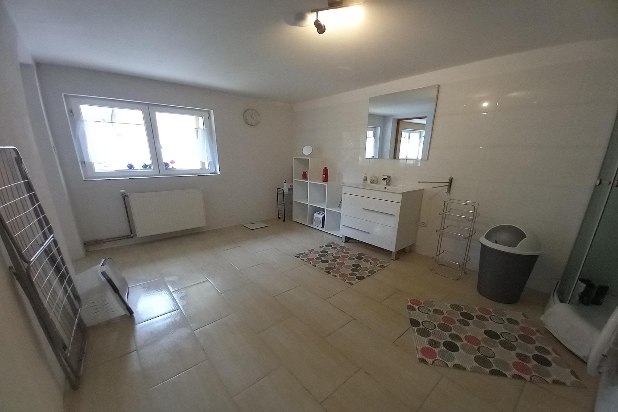 Beliggende i hjertet af naturen i Turquestein-Blancrupt, kun 7 km fra Saint-Quirin, tilbyder denne rummelige ferielejlighed på 120 m² et fredeligt tilflugtssted i regionen Alsace/Vosges/Lorraine. Beliggende på første sal i et privat hjem, det har egen indgang, indhegnet gårdhave og dedikeret parkering. Indenfor kan gæsterne nyde to lyse soveværelser, en stor stue/spisestue med et fuldt udstyret køkken og et badeværelse med bruser og vaskemaskine. En bred trappe med gelænder og en trappeværn sikrer sikkerheden for små børn. Sengelinned er til rådighed. Udendørs grænser den 65 hektar store ejendom op til skov og bjerge med to damme og en å, der er perfekt til gåture og naturleg. Familier og hunde er hjerteligt velkomne. Den 400 m² store forhave omfatter en gårdhave, mens den bageste åbner ud til et ekspansivt grønt område. Underholdning bugner med et 50 m² stort fritidsrum med billard, dart og en bar samt bordtennis og boccia på stedet. Nærliggende badesøer omfatter Saint-Quirin (7 km), Abreschviller (12 km) og Étang du Stock (Langatte, 30 km). Uanset om du vandrer, slapper af eller spiller spil med dine kære, tilbyder dette hjem en hyggelig og aktiv flugt i naturen.