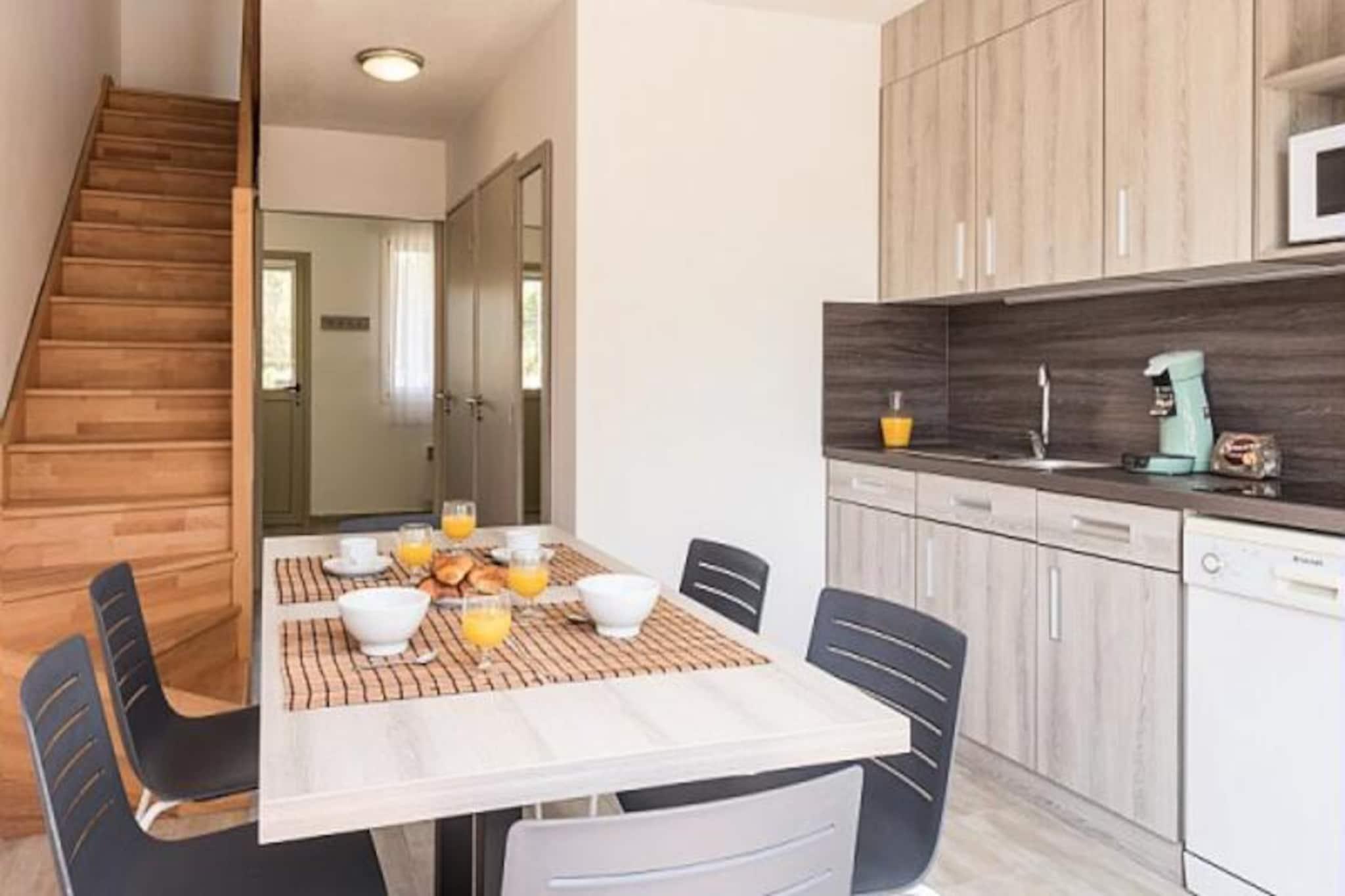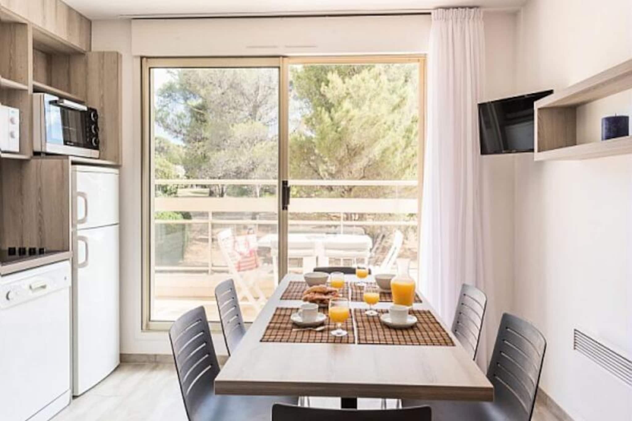 Nestled in a lush green setting, this charming holiday home offers a relaxing retreat just 300m from a small cove and 1.5 km from a sandy beach. The property is pet-friendly, allowing your furry friends to join you for an additional fee. It features a cozy living area with a sofa bed and trundle bed, as well as a separate bedroom with a comfortable double bed. The accommodation is perfect for families or small groups, offering ample space for everyone to unwind. The property is ideally located near several local attractions, including shops just 500m away, and a bakery conveniently located across from the residence. Saint-Raphaël, once a fishing village, is known for its mild climate and beautiful coastline, perfect for scenic walks or excursions. The area offers a variety of cafes and markets where you can explore the local culture and cuisine, providing plenty of opportunities to relax and enjoy the surroundings. Inside, the apartment is well-equipped with a fully functional kitchen, allowing you to prepare your favorite meals. The bathroom features a separate shower and WC for added convenience. You can also enjoy the balcony with a garden view, perfect for outdoor moments. Additional amenities include a TV, free Wi-Fi access in the residence lounge, and a refreshing outdoor pool available from April to October.