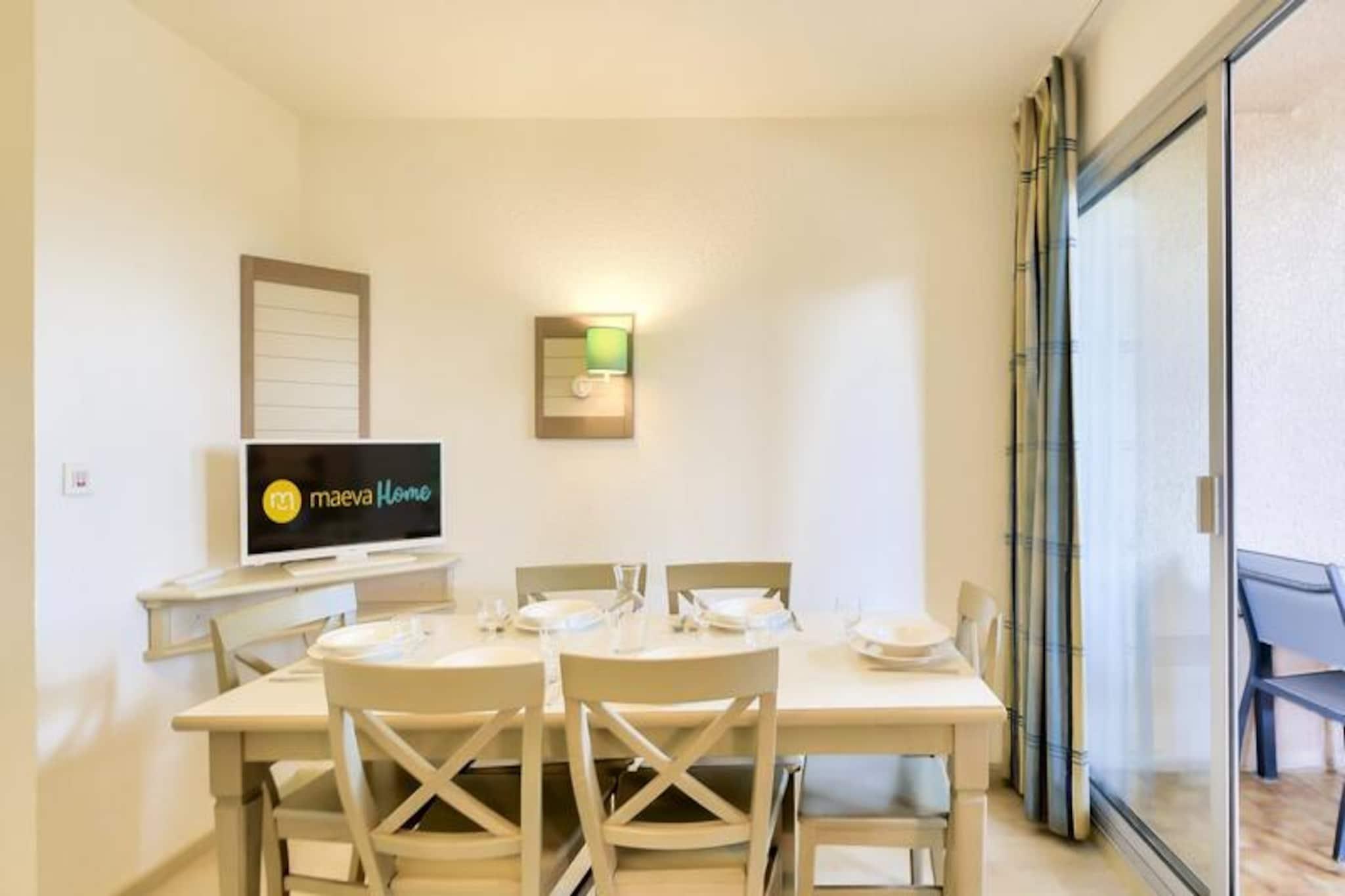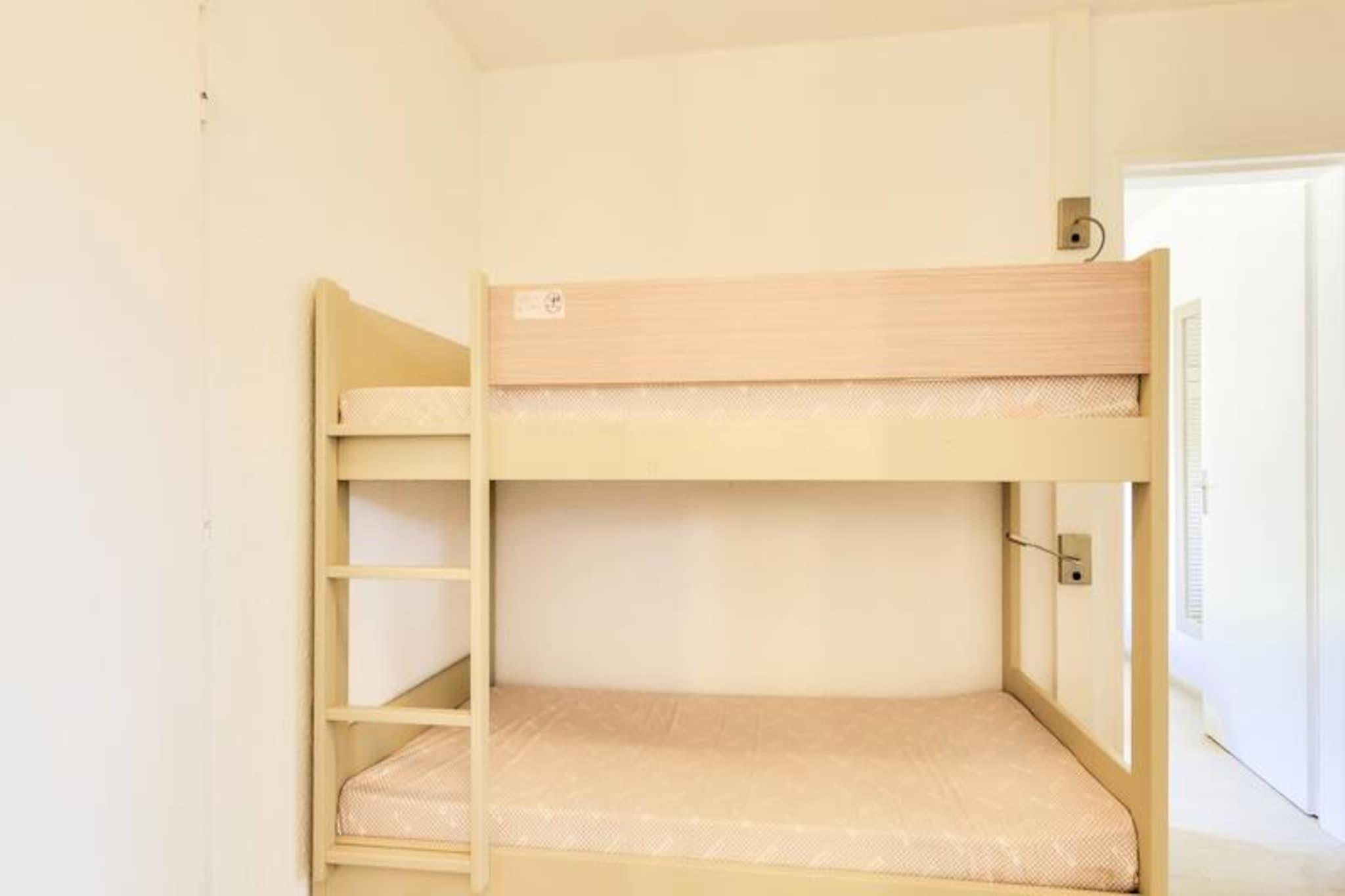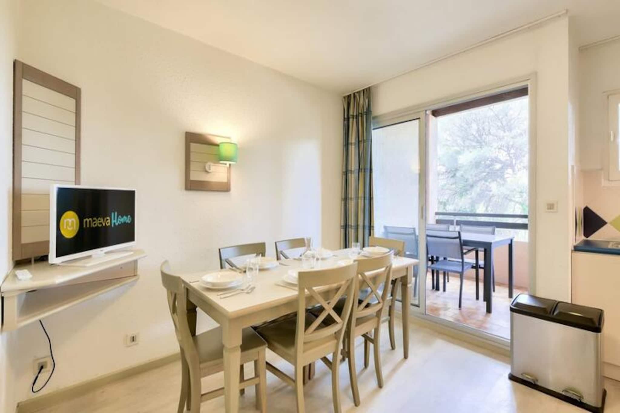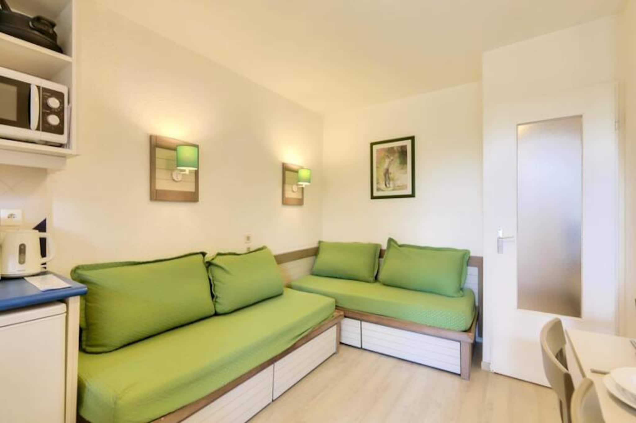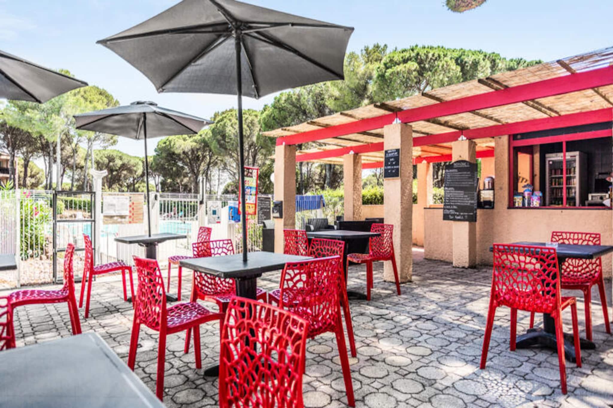 This cozy apartment in the heart of a charming village offers a relaxing stay with a double bed in the bedroom and additional single beds in the living room, accommodating up to 3 guests. The property is pet-friendly (additional fees may apply) and features a covered balcony with views of the forest. A mandatory cleaning fee applies at the end of the stay, and bed linens and towels are available at an extra charge. Free parking is provided for one vehicle, subject to availability. Located just 6 km from the historic village of Saint-Raphaël, this rental offers easy access to a variety of activities. The 18-hole Estérel golf course is just 400 meters away, and guests can enjoy six tennis courts or arcade games within the residence. The Mediterranean coastline is a short drive away, and guests can explore local spas, markets, and the scenic beauty of the area. During the summer months, a snack bar is available within the property, and a wellness area can be reserved for relaxation. The apartment includes an American-style kitchen, a bathroom with a bathtub, and a separate toilet. It is well-equipped for a comfortable stay with storage space, a hairdryer, and necessary amenities. The property features a large outdoor swimming pool, open from April to October, and additional services such as Wifi (for an extra charge) and a television. The apartment’s peaceful setting and convenient location make it ideal for a relaxing getaway.