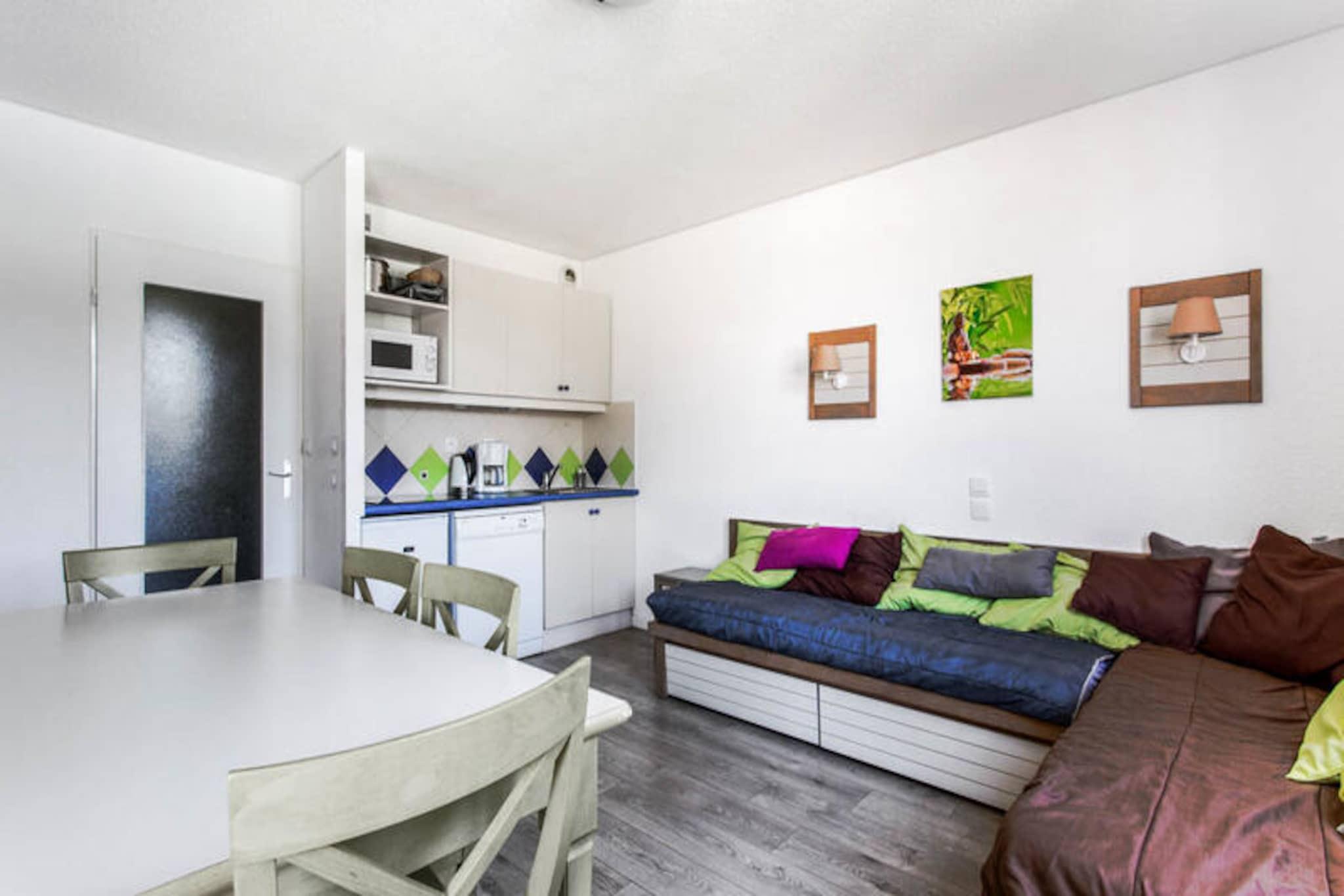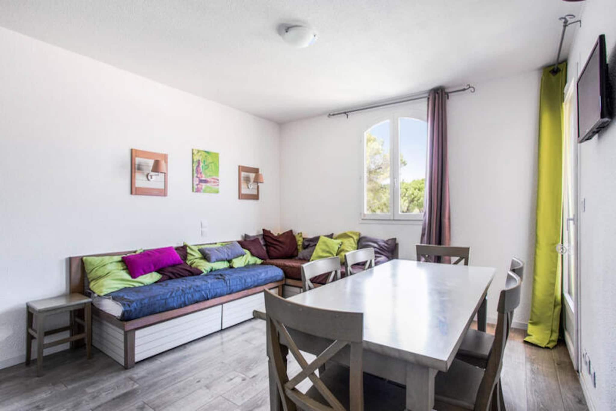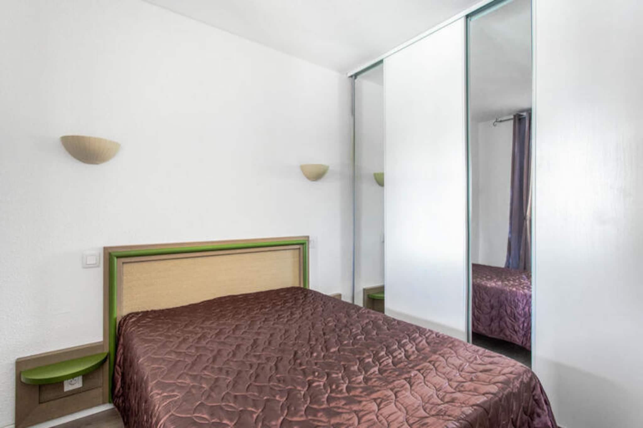 Beliggende i en fredelig landsby tilbyder denne indbydende lejlighed en afslappende ferie midt i frodige grønne områder. Perfekt til op til seks gæster, det har en hyggelig opholdsstue med to sovesofaer, et kabineområde med køjesenge og et soveværelse med en komfortabel dobbeltseng. En møbleret balkon byder på charmerende udsigt over poolen og den omkringliggende vegetation. Ejendommen er kæledyrsvenlig mod et tillægsgebyr og inkluderer gratis parkering, afhængigt af tilgængelighed. Gæsterne kan nyde en udendørs swimmingpool, børnepool og et wellness-område. Sæsonbestemte faciliteter såsom en snackbar er tilgængelige i juli og august. Lejligheden ligger 6 km fra en historisk fiskerby, tæt på pulserende markeder, lokale kurbade og fantastiske middelhavsstrande kun 15 minutter væk i bil. Den 18-hullers Estérel golfbane ligger en kort gåtur på 400 meter, mens tennisbaner og arkadespil er i nærheden. Området kan også prale af naturskønne stier til vandreture og betagende kystudsigt, der tilbyder en række aktiviteter for alle. Lejligheden har et fuldt udstyret køkken med køleskab, komfur og mikroovn, hvilket gør det nemt at tilberede måltider. Badeværelset har badekar med separat toilet for nemheds skyld. Wi-Fi, sengetøj og håndklæder er tilgængelige mod et gebyr, og obligatorisk slutrengøring er inkluderet. Uanset om du slapper af ved poolen eller udforsker de lokale attraktioner, er denne ejendom en ideel feriebase.