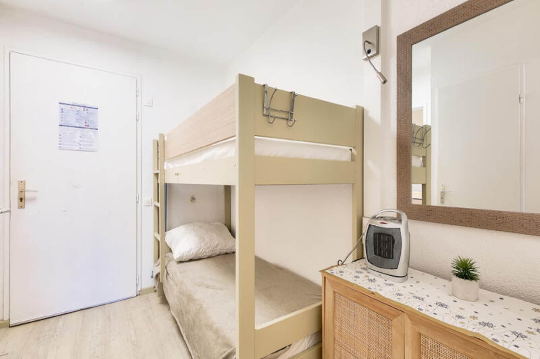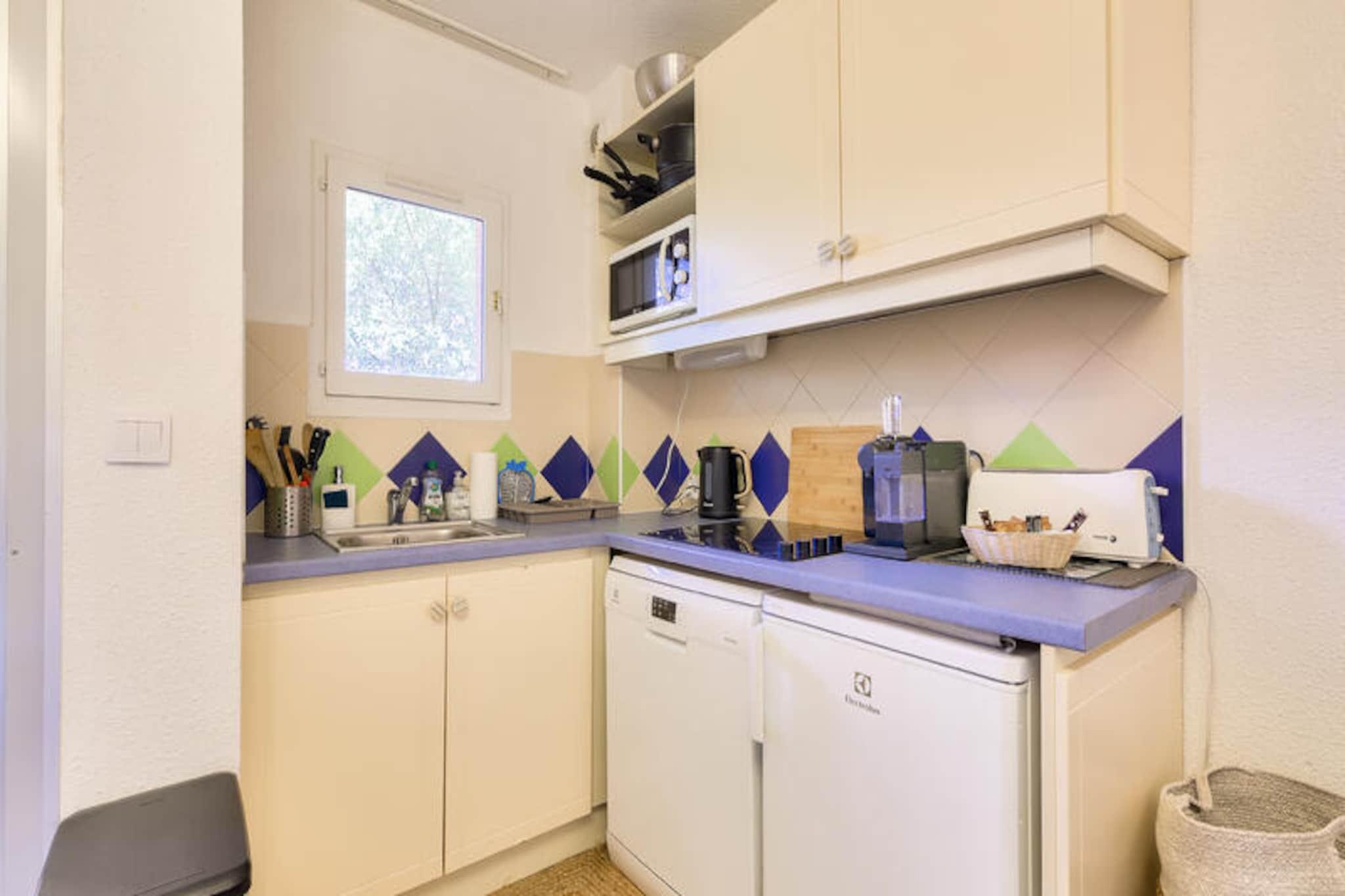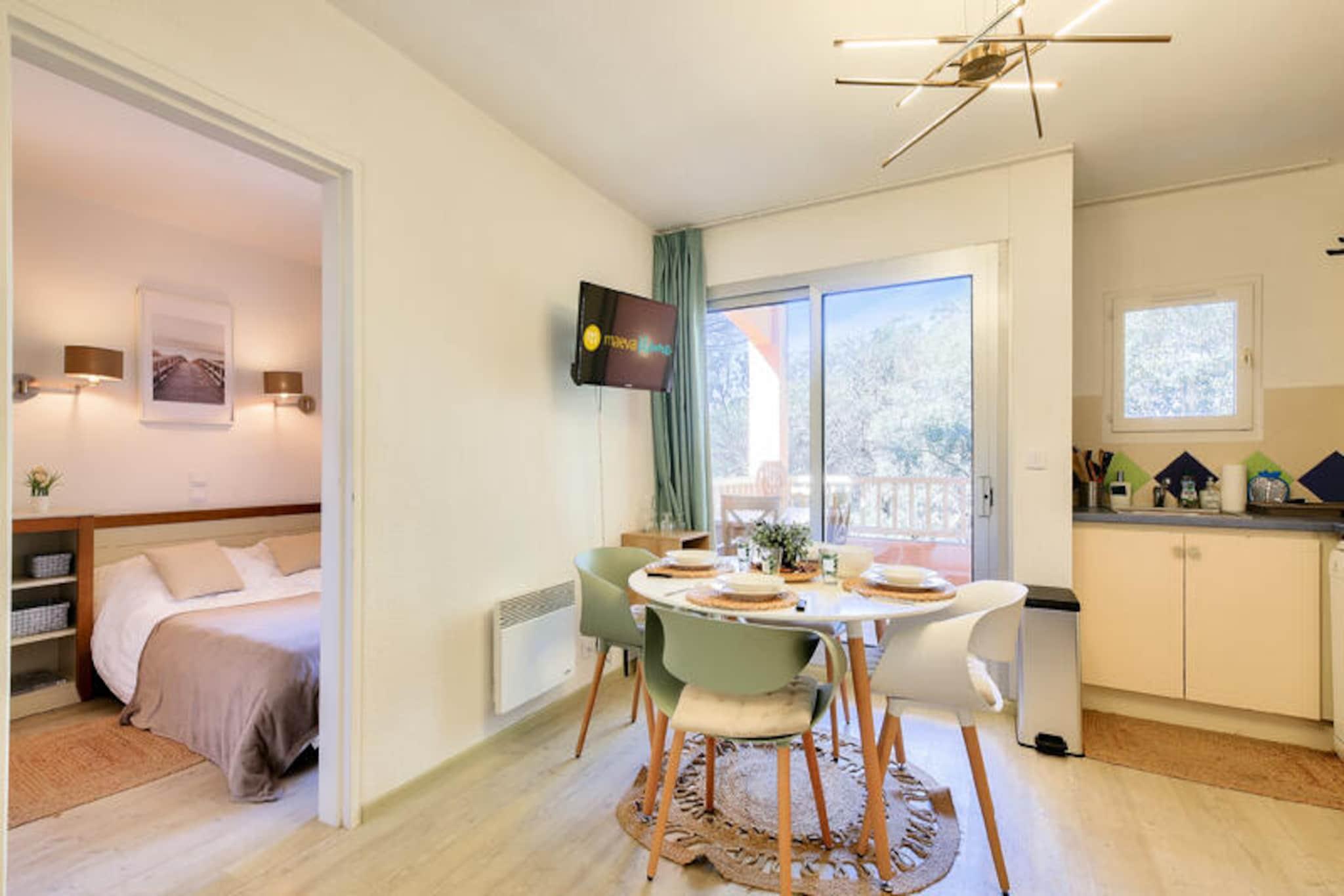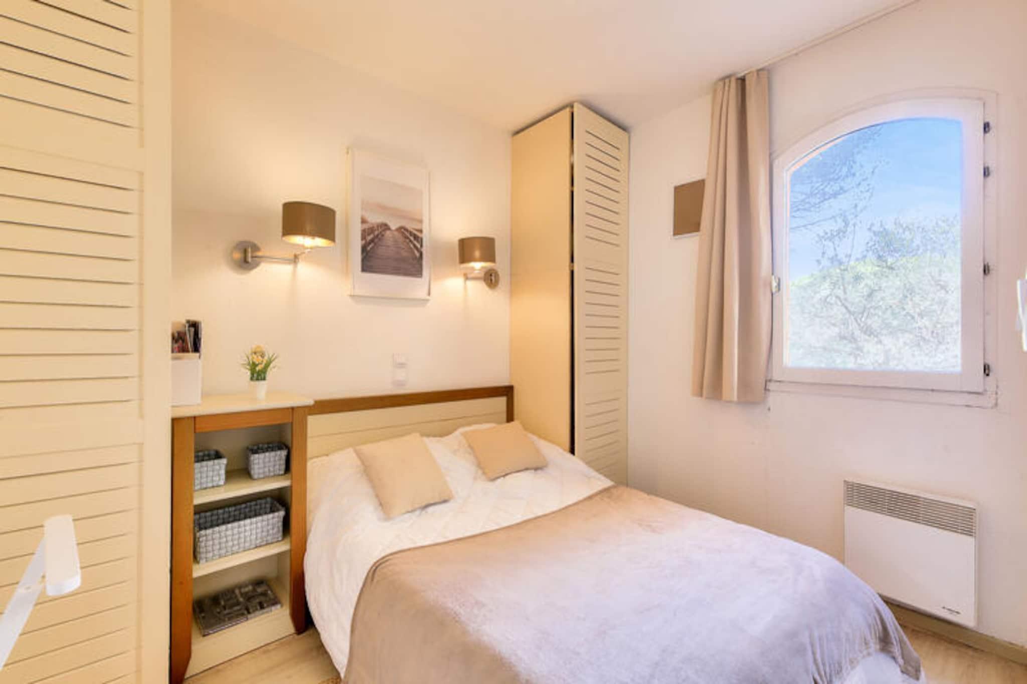 Denne charmerende lejlighed i hjertet af en venlig landsby tilbyder det perfekte tilflugtssted i Saint-Rapha?l, og byder p? en hyggelig opholdsstue med en sovesofa, et sovev?relse med dobbeltseng og et kabineomr?de med k?jesenge. Lejligheden har ogs? et badev?relse med badekar, separat toilet og et fuldt udstyret k?kken. Nyd den friske luft p? din private m?blerede terrasse med udsigt over skoven. Boligen er k?ledyrsvenlig, og der er gratis parkering p? stedet. Bem?rk venligst, at sengelinned og h?ndkl?der er tilg?ngelige mod et till?gsgebyr, og tr?dl?s internetadgang tilbydes mod et ekstra gebyr. Beliggende kun 6 km fra den gamle fiskerby, er denne lejlighed ideelt beliggende n?r en r?kke attraktioner. Udforsk den 36 kilometer lange Middelhavskyst, slap af p? n?rliggende kurbade eller bes?g markederne i Saint-Rapha?l. For golfentusiaster ligger 18-hullers Est?rel golfbane kun 400 meter v?k, sammen med seks tennisbaner. Selve landsbyen byder p? fredelige og naturlige omgivelser, mens stranden kun ligger 15 minutters k?rsel derfra. Boligen kan prale af en rummelig 400 m² swimmingpool med en b?rnepool, perfekt til en forfriskende sv?mmetur. Yderligere faciliteter omfatter et wellness-omr?de (efter reservation) og en snackbar, der er ?ben i sommerm?nederne. Boligen tilbyder ogs? en gratis udend?rs parkeringsplads for din bekvemmelighed. Slutreng?ring er obligatorisk, og der skal betales en turistskat p? stedet.