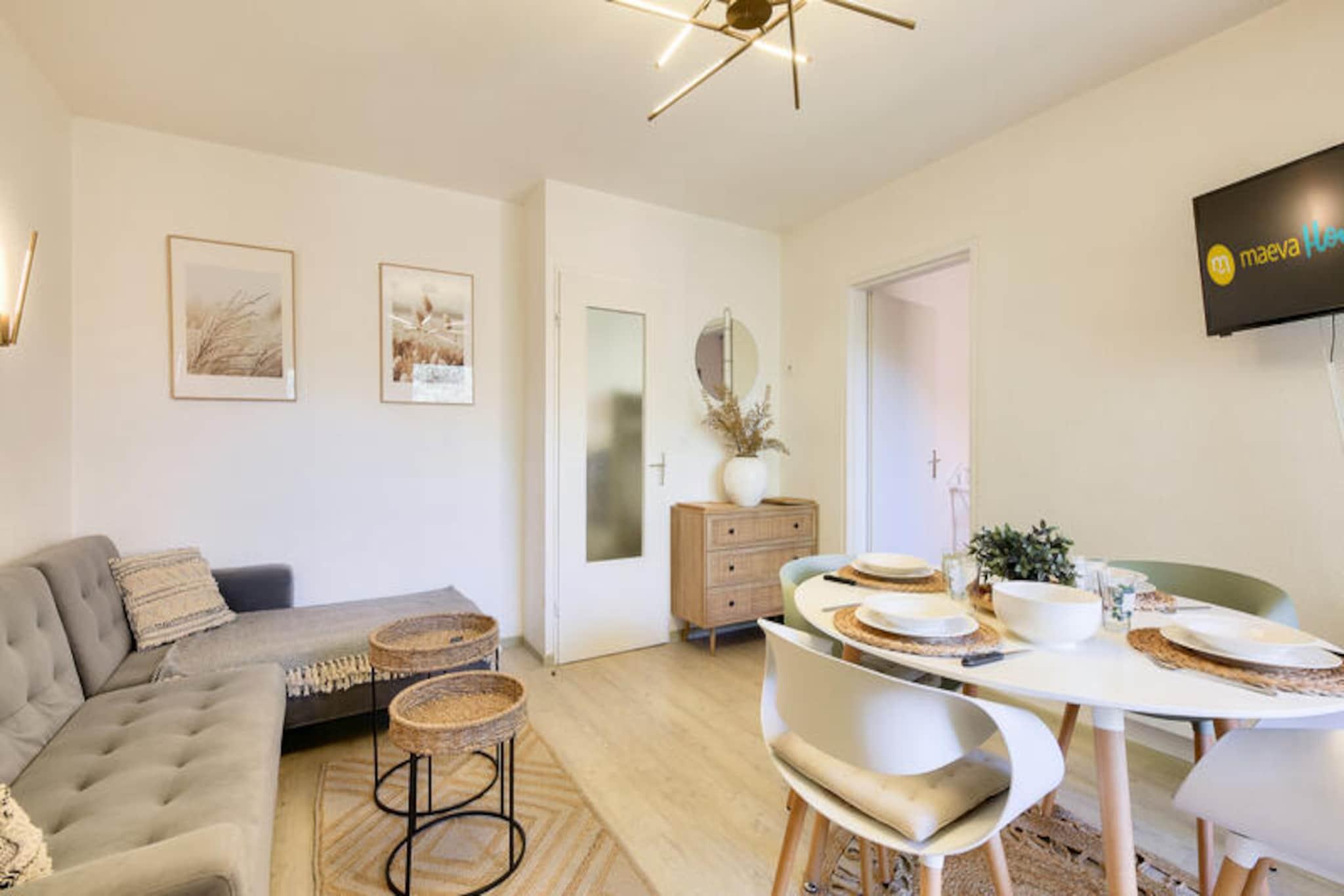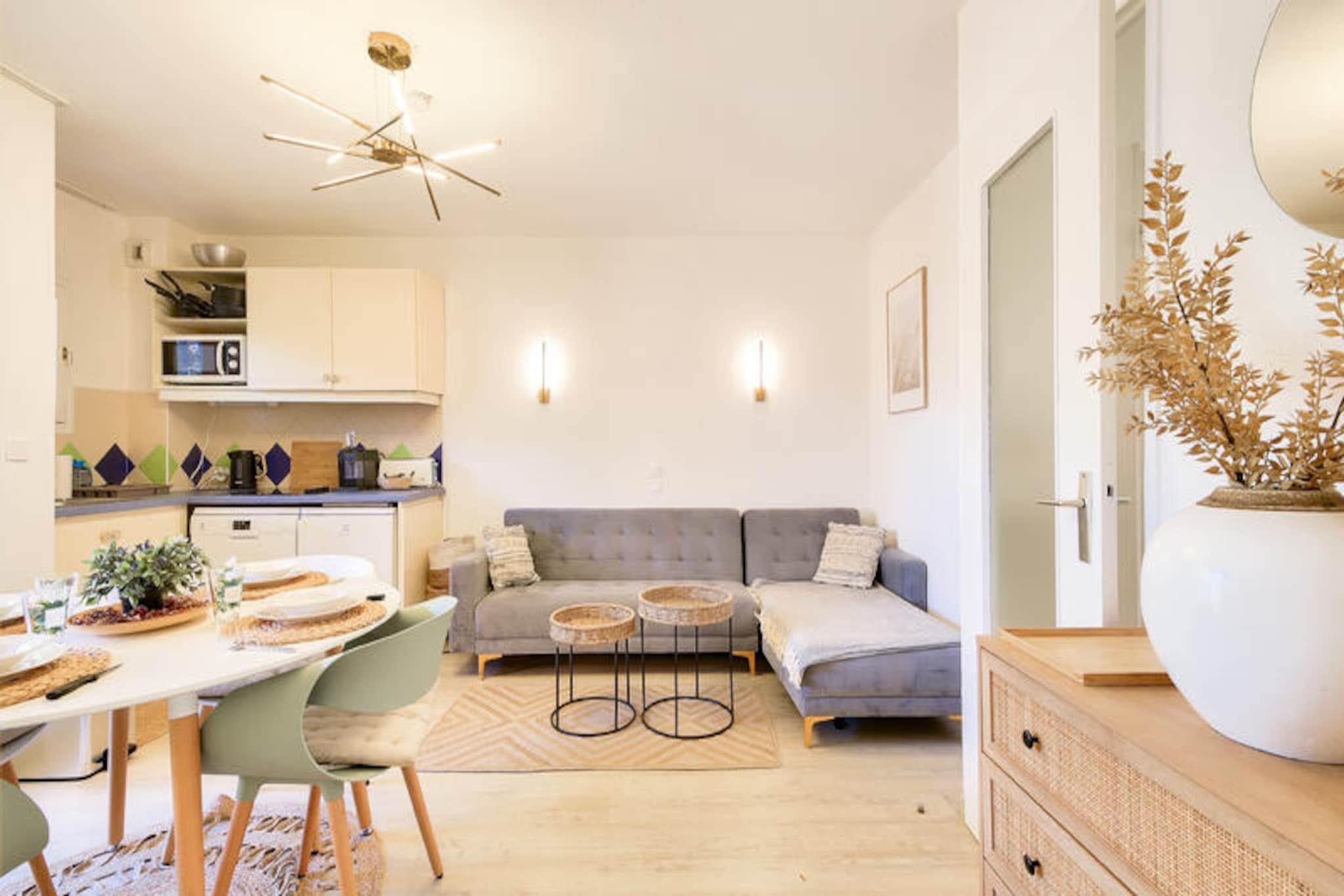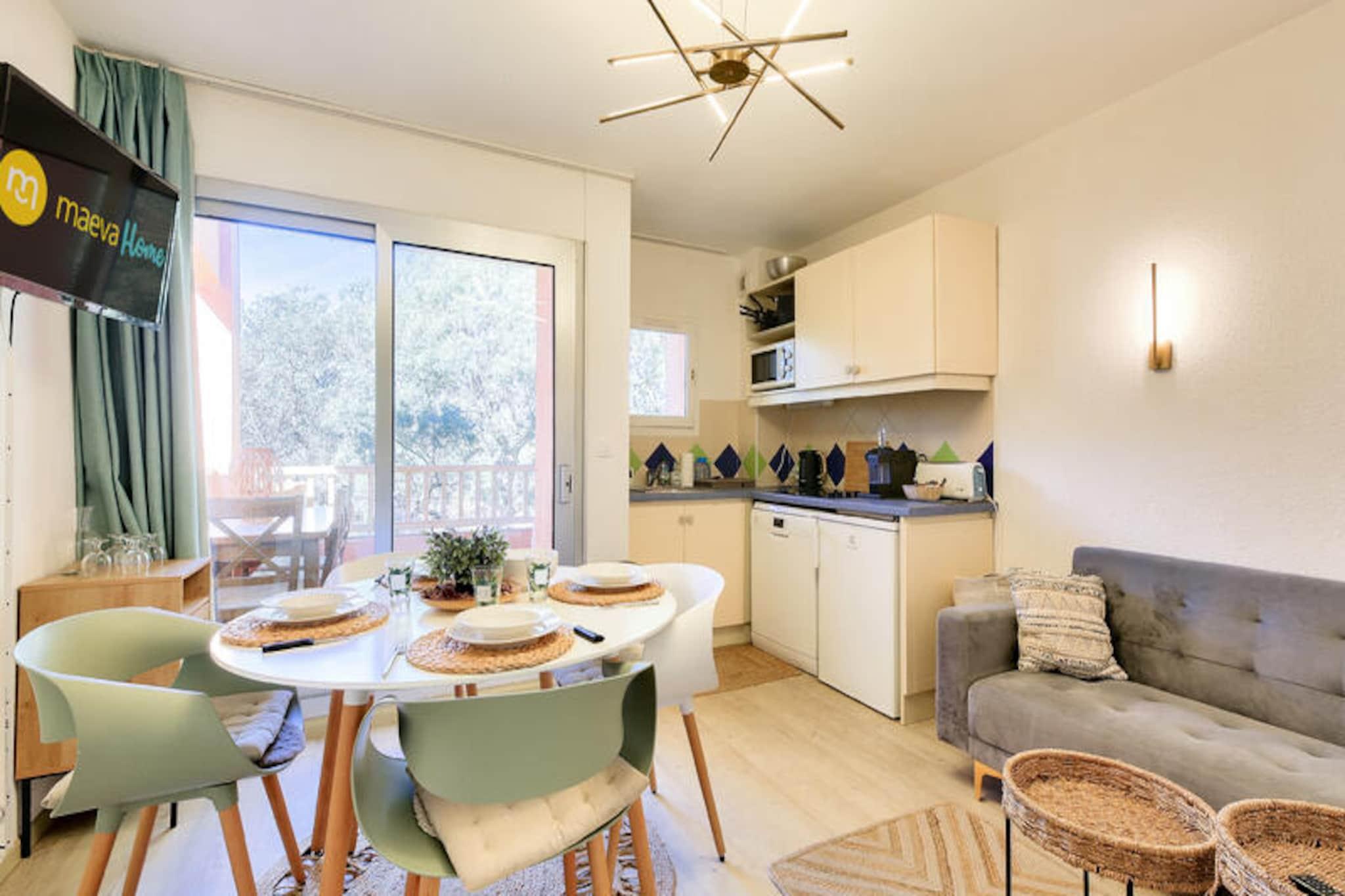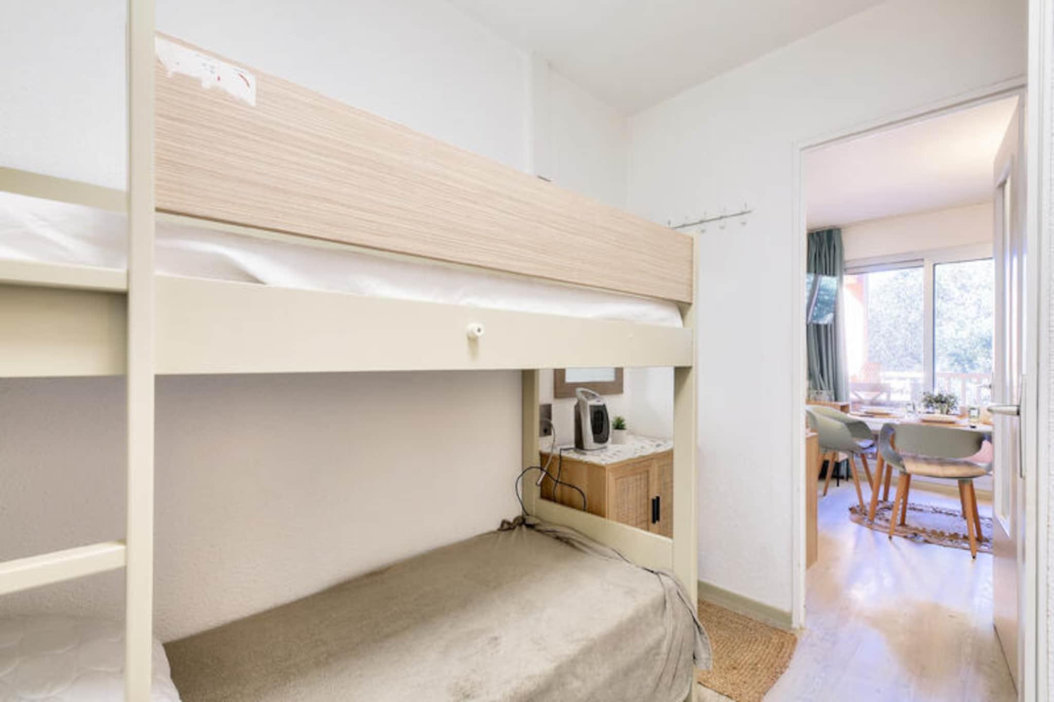 Denne charmerende lejlighed i hjertet af en venlig landsby tilbyder det perfekte tilflugtssted i Saint-Rapha?l, og byder p? en hyggelig opholdsstue med en sovesofa, et sovev?relse med dobbeltseng og et kabineomr?de med k?jesenge. Lejligheden har ogs? et badev?relse med badekar, separat toilet og et fuldt udstyret k?kken. Nyd den friske luft p? din private m?blerede terrasse med udsigt over skoven. Boligen er k?ledyrsvenlig, og der er gratis parkering p? stedet. Bem?rk venligst, at sengelinned og h?ndkl?der er tilg?ngelige mod et till?gsgebyr, og tr?dl?s internetadgang tilbydes mod et ekstra gebyr. Beliggende kun 6 km fra den gamle fiskerby, er denne lejlighed ideelt beliggende n?r en r?kke attraktioner. Udforsk den 36 kilometer lange Middelhavskyst, slap af p? n?rliggende kurbade eller bes?g markederne i Saint-Rapha?l. For golfentusiaster ligger 18-hullers Est?rel golfbane kun 400 meter v?k, sammen med seks tennisbaner. Selve landsbyen byder p? fredelige og naturlige omgivelser, mens stranden kun ligger 15 minutters k?rsel derfra. Boligen kan prale af en rummelig 400 m² swimmingpool med en b?rnepool, perfekt til en forfriskende sv?mmetur. Yderligere faciliteter omfatter et wellness-omr?de (efter reservation) og en snackbar, der er ?ben i sommerm?nederne. Boligen tilbyder ogs? en gratis udend?rs parkeringsplads for din bekvemmelighed. Slutreng?ring er obligatorisk, og der skal betales en turistskat p? stedet.