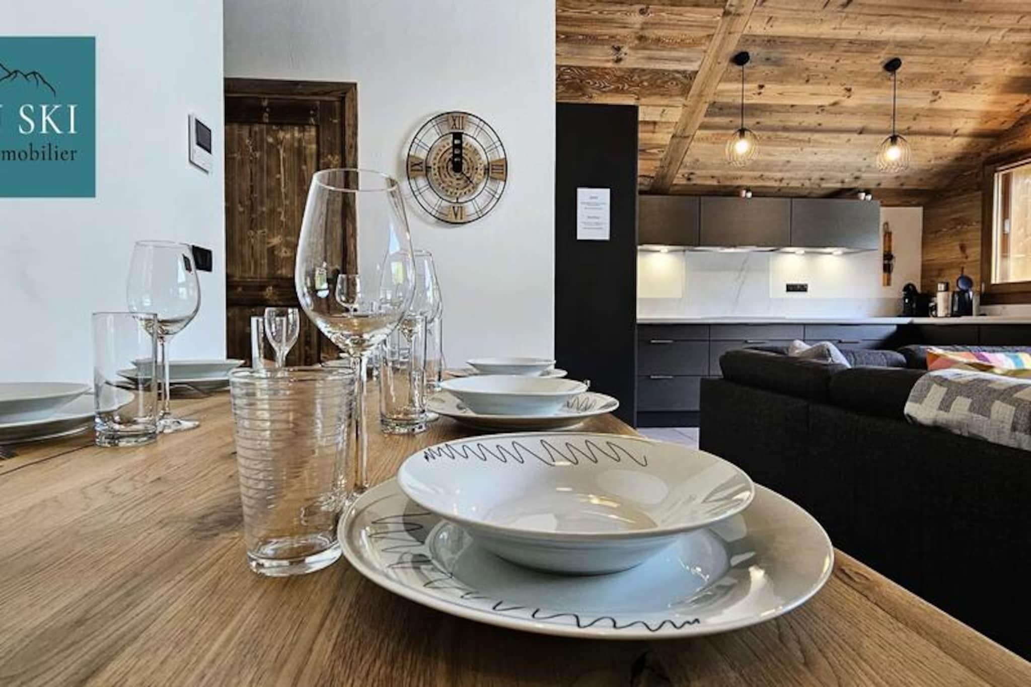 This luxurious duplex apartment offers four beautifully furnished bedrooms, comfortably accommodating up to 8 guests. The master bedroom features a TV, a private shower room, and a WC for added privacy. Two additional bedrooms come with double beds and TVs, while the fourth bedroom has a bunk bed, perfect for families. The apartment is pet-friendly, allowing you to bring your furry friends for an additional fee. For added convenience, a ski locker with a boot dryer and a secure, covered parking space are included. Ideally located in the heart of the village, this apartment provides easy access to a variety of local attractions. Just 300 meters away, you’ll find the tourist office, the snow front, ski schools, and shops, making it the perfect base for a skiing adventure. The LES SYBELLES ski area is easily reachable, offering ample opportunities for winter sports enthusiasts. The charming village is walkable, allowing you to explore its cafes, restaurants, and markets with ease. The apartment is equipped with modern amenities to ensure a comfortable stay. The kitchen is fully equipped with a dishwasher, large fridge, oven, pod coffee maker, kettle, and toaster, making it easy to prepare meals for a group. The spacious living room features a dining area, a lounge area with a connected TV, and a south-facing balcony with stunning views. For additional comfort, the apartment includes a shower room, separate toilet, and a washing machine and dryer. Optional services like sheets, towels, and Wi-Fi are available for an extra fee.