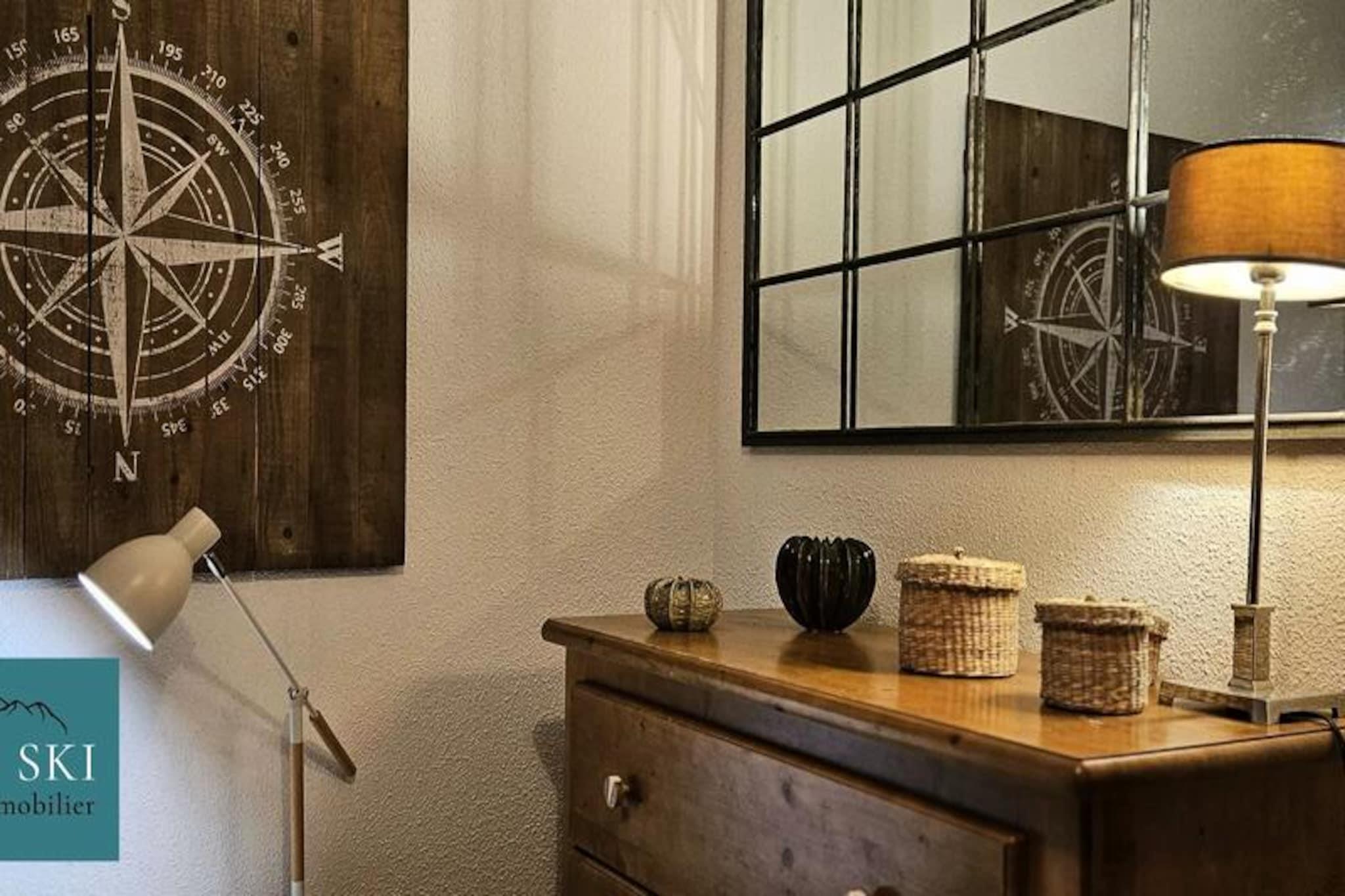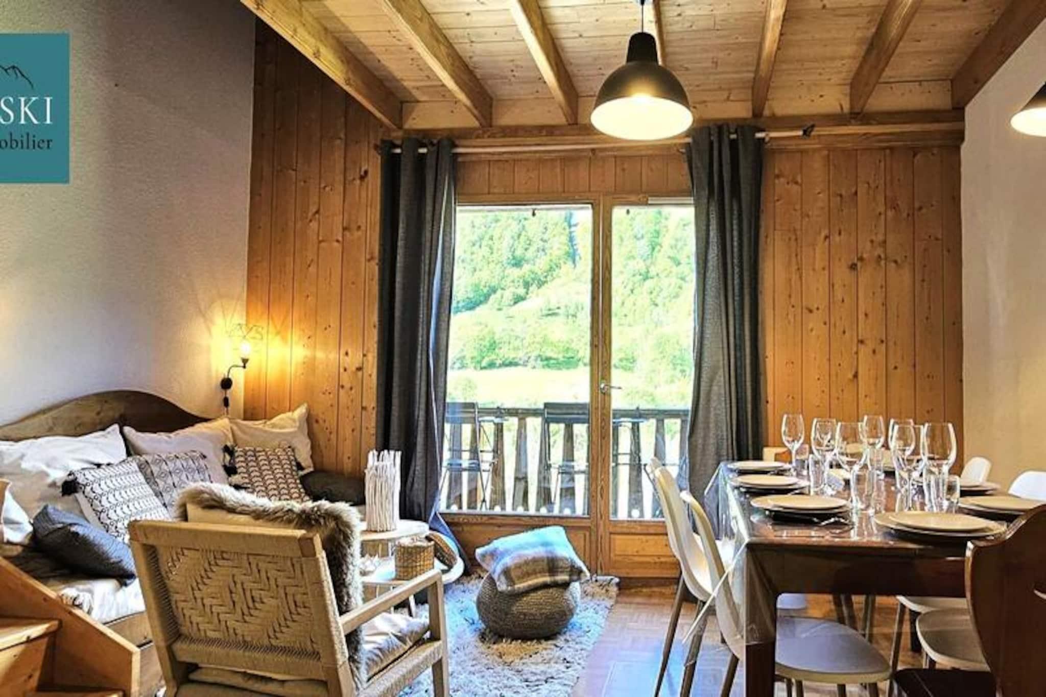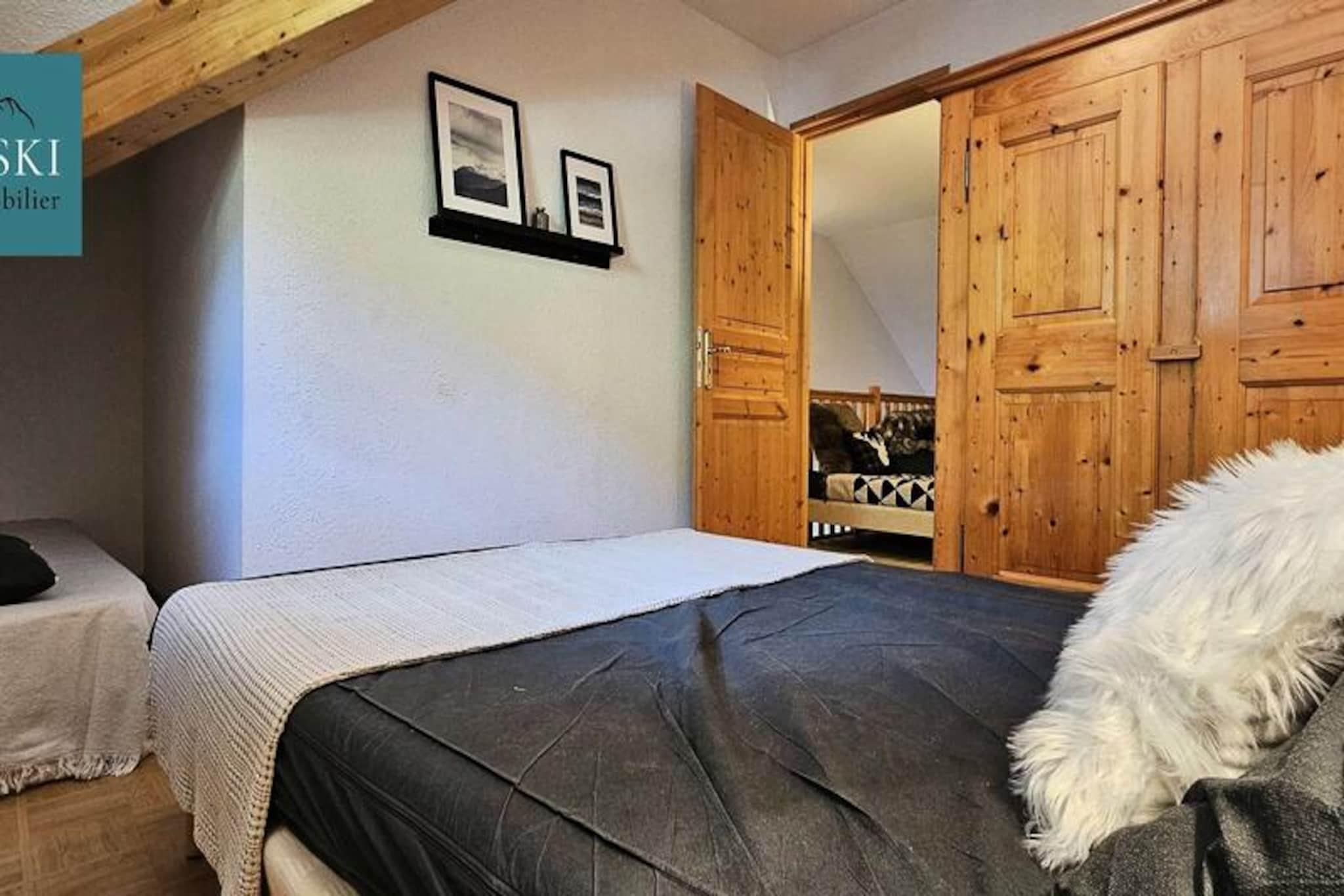 Denne hyggelige duplex lejlighed på cirka 65 m² tilbyder komfortabel indkvartering for op til 8 gæster. Beliggende i et fredeligt område ved foden af ??bjergene, det har et soveværelse med en dobbeltseng (160x190 cm) og en rummelig stue med køkken og opholdsstue. Lejligheden har også balkon med naturskøn udsigt over pisterne og Aiguilles d'Arves. Boligen tilbyder en opvarmet indendørs swimmingpool, gratis, som gæsterne kan nyde i den åbne sæson. Ejendommen er bekvemt beliggende kun 10 minutters gang fra pisterne, og en skibutik og restaurant ligger kun 200 meter derfra. For ekstra bekvemmelighed er en gratis shuttleservice tilgængelig hvert 20. minut, hvilket giver nem adgang til pisterne og andre lokale attraktioner. Området er roligt og tilbyder en afslappende atmosfære, samtidig med at det er tæt på byens faciliteter. Lejligheden har et veludstyret køkken med opvaskemaskine, køleskab, miniovn og kaffemaskine. Ovenpå er der en mezzanin med to enkeltsenge og en sovesofa samt badeværelse og toilet. Yderligere faciliteter omfatter et skiskab, og lejligheden har adgang til fælles vaskeri. Sengelinned, håndklæder og Wi-Fi er tilgængelige mod et ekstra gebyr, og kæledyr er ikke tilladt.