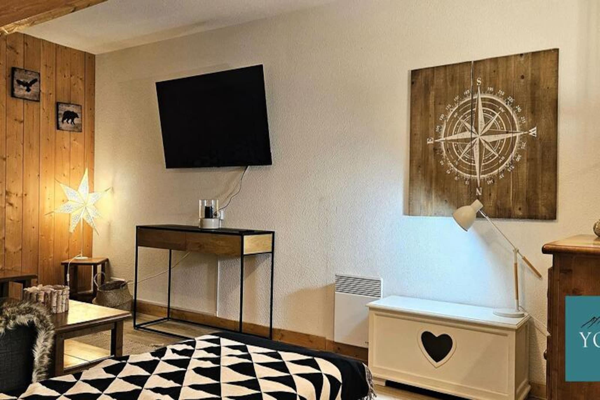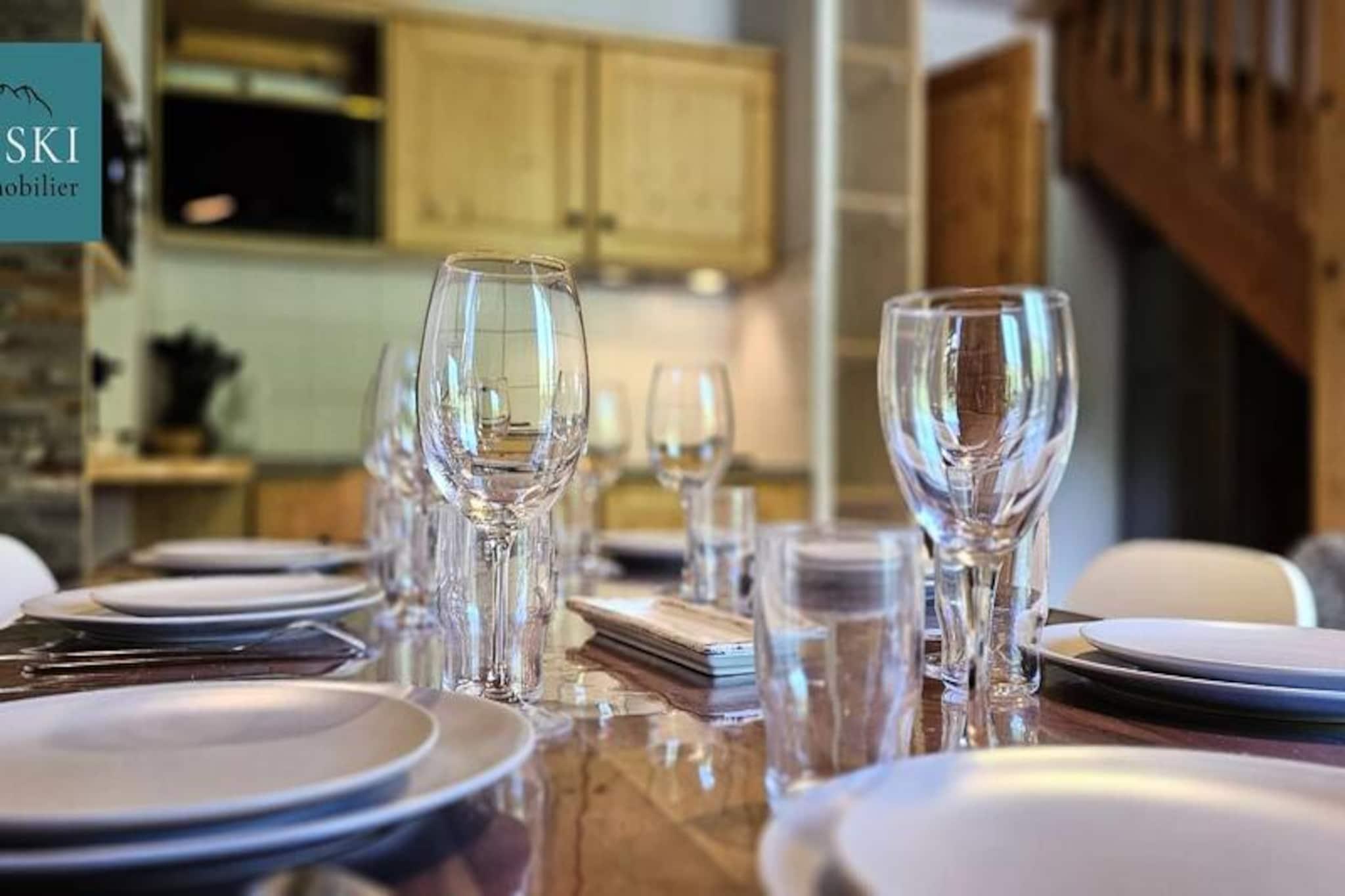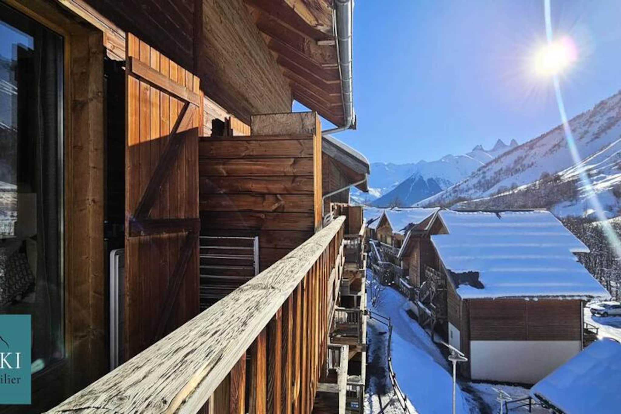 Denne hyggelige duplex lejlighed på cirka 65 m² tilbyder komfortabel indkvartering for op til 8 gæster. Beliggende i et fredeligt område ved foden af ??bjergene, det har et soveværelse med en dobbeltseng (160x190 cm) og en rummelig stue med køkken og opholdsstue. Lejligheden har også balkon med naturskøn udsigt over pisterne og Aiguilles d'Arves. Boligen tilbyder en opvarmet indendørs swimmingpool, gratis, som gæsterne kan nyde i den åbne sæson. Ejendommen er bekvemt beliggende kun 10 minutters gang fra pisterne, og en skibutik og restaurant ligger kun 200 meter derfra. For ekstra bekvemmelighed er en gratis shuttleservice tilgængelig hvert 20. minut, hvilket giver nem adgang til pisterne og andre lokale attraktioner. Området er roligt og tilbyder en afslappende atmosfære, samtidig med at det er tæt på byens faciliteter. Lejligheden har et veludstyret køkken med opvaskemaskine, køleskab, miniovn og kaffemaskine. Ovenpå er der en mezzanin med to enkeltsenge og en sovesofa samt badeværelse og toilet. Yderligere faciliteter omfatter et skiskab, og lejligheden har adgang til fælles vaskeri. Sengelinned, håndklæder og Wi-Fi er tilgængelige mod et ekstra gebyr, og kæledyr er ikke tilladt.