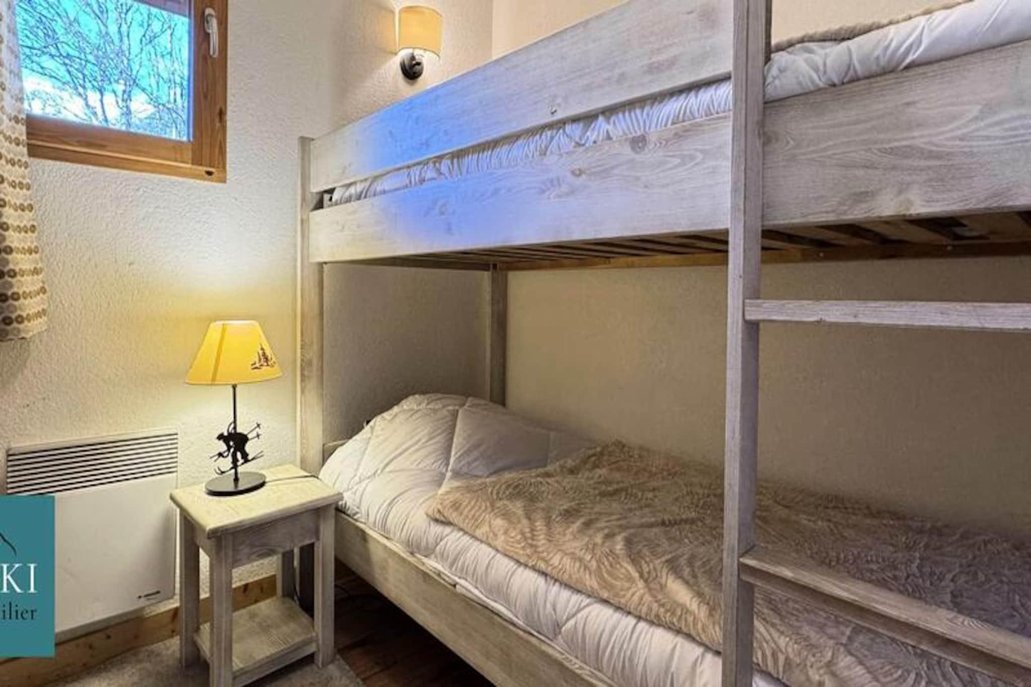 Denne rummelige duplex er det perfekte tilflugtssted for familie eller venner, der ønsker at nyde en bjergferie i St. Sorlin d'Arves. Lejligheden er designet til komfortabelt at rumme op til 8 personer, og tilbyder 4 hyggelige soveværelser og en fredelig beliggenhed tæt på skilifterne og kælkebakken. Indretningen omfatter en entré, et badeværelse, et separat toilet, et soveværelse med køjesenge og et soveværelse med dobbeltseng i stueetagen. Opholdsområdet har et fuldt udstyret køkken, en opholdsstue og en balkon med en fantastisk udsigt over bjergene. Ovenpå fuldender yderligere to soveværelser med dobbeltsenge og et brusebad med toilet. Ideelt beliggende nær kirken St. Sorlin d'Arves og ved foden af ??Col de la Croix de Fer, er denne duplex i LES SYBELLES-skiområdet. Du kan nemt få adgang til pisterne til fods eller drage fordel af den gratis shuttle-service. Om sommeren kan du nyde boligens udendørs swimmingpool, som er tilgængelig fra den 7. juli til den 25. august. Boligen tilbyder gratis parkering, og et skiskab er tilgængeligt til opbevaring af dit udstyr. Det moderne køkken er fuldt udstyret med køleskab, ovn, elektrisk filterkaffemaskine, elkedel, opvaskemaskine, raclettegrill og alt det nødvendige service til 8 personer. Bemærk venligst, at sengetøj og håndklæder er valgfrie og ekstra, sammen med slutrengøring og Wi-Fi-forbindelse. Små kæledyr er velkomne mod tillæg, men de skal holdes i snor og må ikke sidde på møbler eller senge.