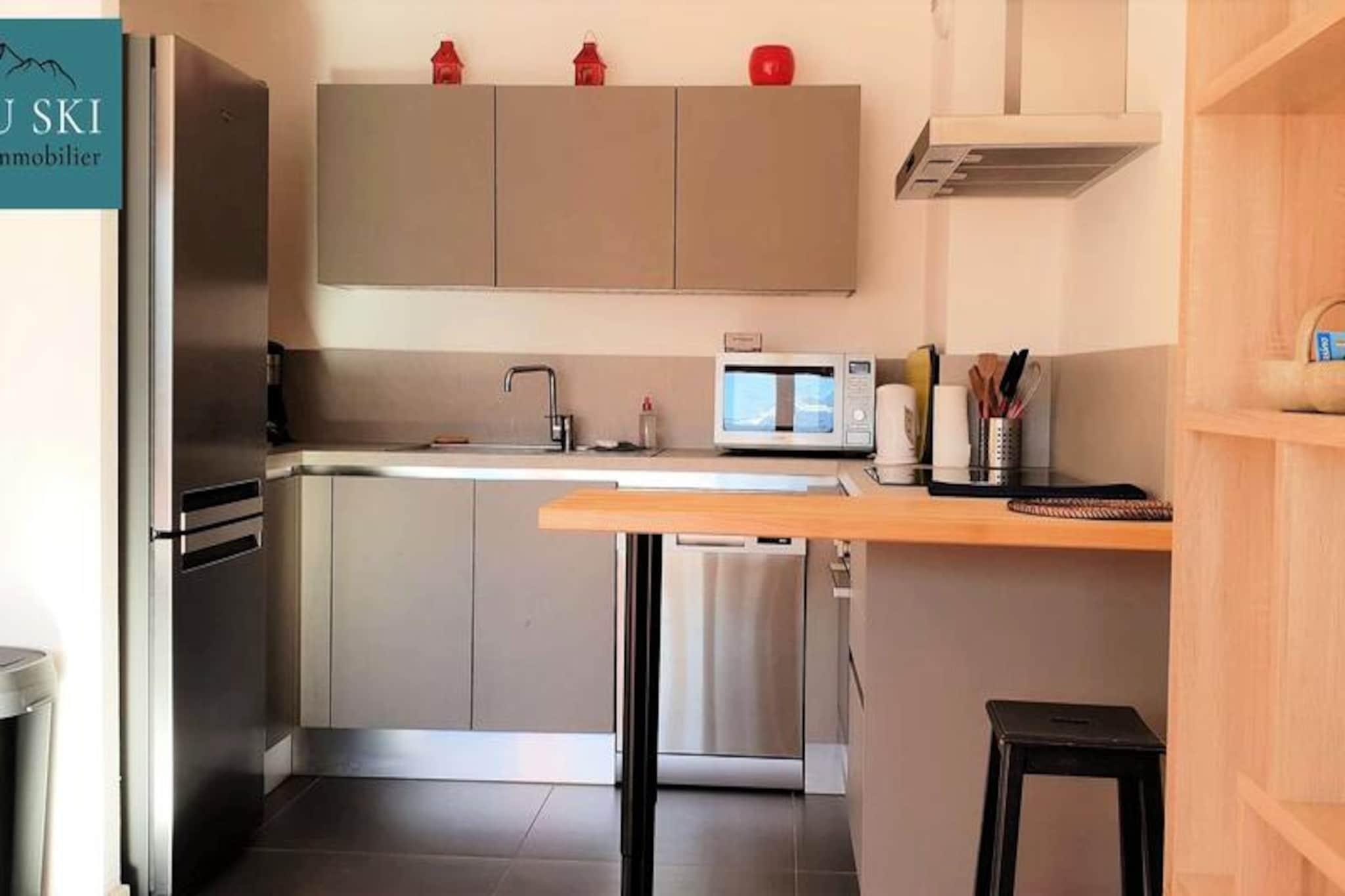 I hjertet af det maleriske Saint-Sorlin-d'Arves inviterer dette charmerende chalet dig til at opleve magien i de franske alper med stil og komfort. Kun 350 meter fra landsbyens centrum, butikker, skiløjper og skiskole tilbyder det den perfekte blanding af bekvemmelighed og ro. Forestil dig at vågne op til en betagende udsigt over bjergene fra din private balkon, den friske alpeluft, der forfrisker dine sanser, og løftet om eventyr, der venter lige uden for din dør. Uanset om du er her for at stå på ski, vandre eller bare slappe af, sætter dette chalet scenen for uforglemmelige øjeblikke med familie eller venner. \n\nTræd indenfor og oplev et varmt og indbydende rum designet til afslapning og samvær. Indgangen har et praktisk skiopbevaringsområde, mens stueetagen kan prale af et hyggeligt soveværelse med en blød dobbeltseng, et moderne brusebad med toilet og vaskemaskine. Første sal er hjemmets hjerte med en rummelig stue med en pilleovn til hyggelige aftener, en spiseplads perfekt til fælles måltider og et fuldt udstyret åbent køkken. Balkonen med dens fantastiske bjergudsigt er det ideelle sted til morgenkaffe eller aftenstjernekiggeri. Ovenpå finder du to ekstra soveværelser, en sovealkove med køjesenge og et veludstyret badeværelse.\n\nSaint-Sorlin-d'Arves er et paradis for friluftsentusiaster. Om vinteren lokker pisterne i skiområdet Les Sybelles og tilbyder uendelige muligheder for skiløb og snowboarding. I de varmere måneder forvandles regionen til et paradis for vandrere og cyklister med stier, der snor sig gennem frodige enge og barske tinder. Selve landsbyen er fyldt med charme med traditionel savoyard-arkitektur, lokale butikker og hyggelige restauranter, der serverer regionale specialiteter.\n\nVælg denne hytte til din næste alpine ferie, og fordyb dig i de franske alpers skønhed og ro. Med sin uovertrufne beliggenhed, gennemtænkte faciliteter og indbydende atmosfære lover den en ferie fyldt med glæde, eventyr og varige minder.