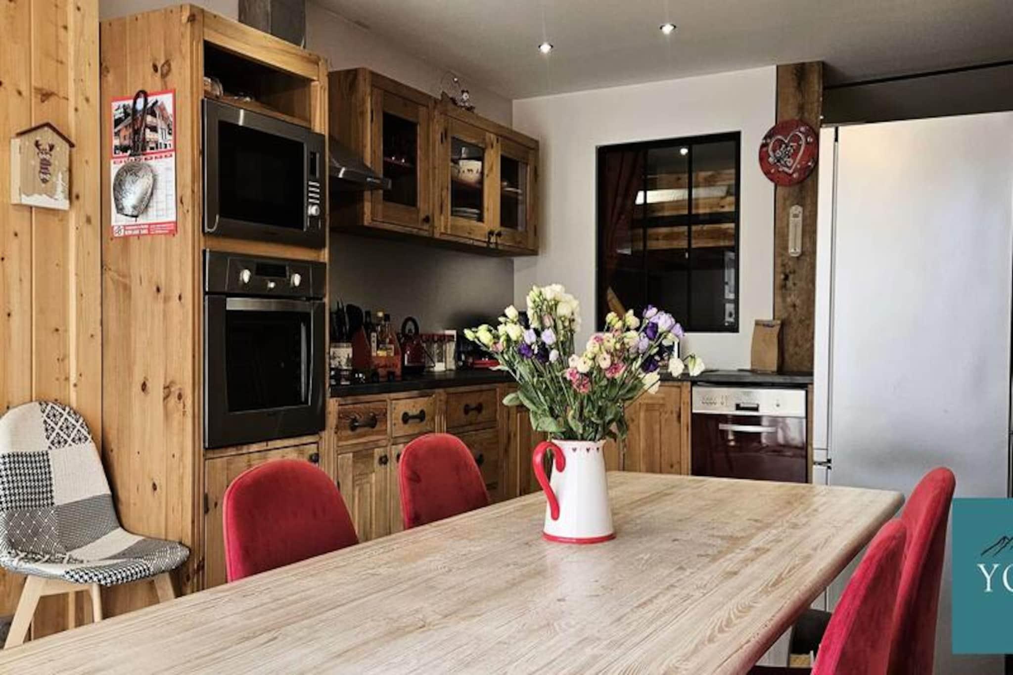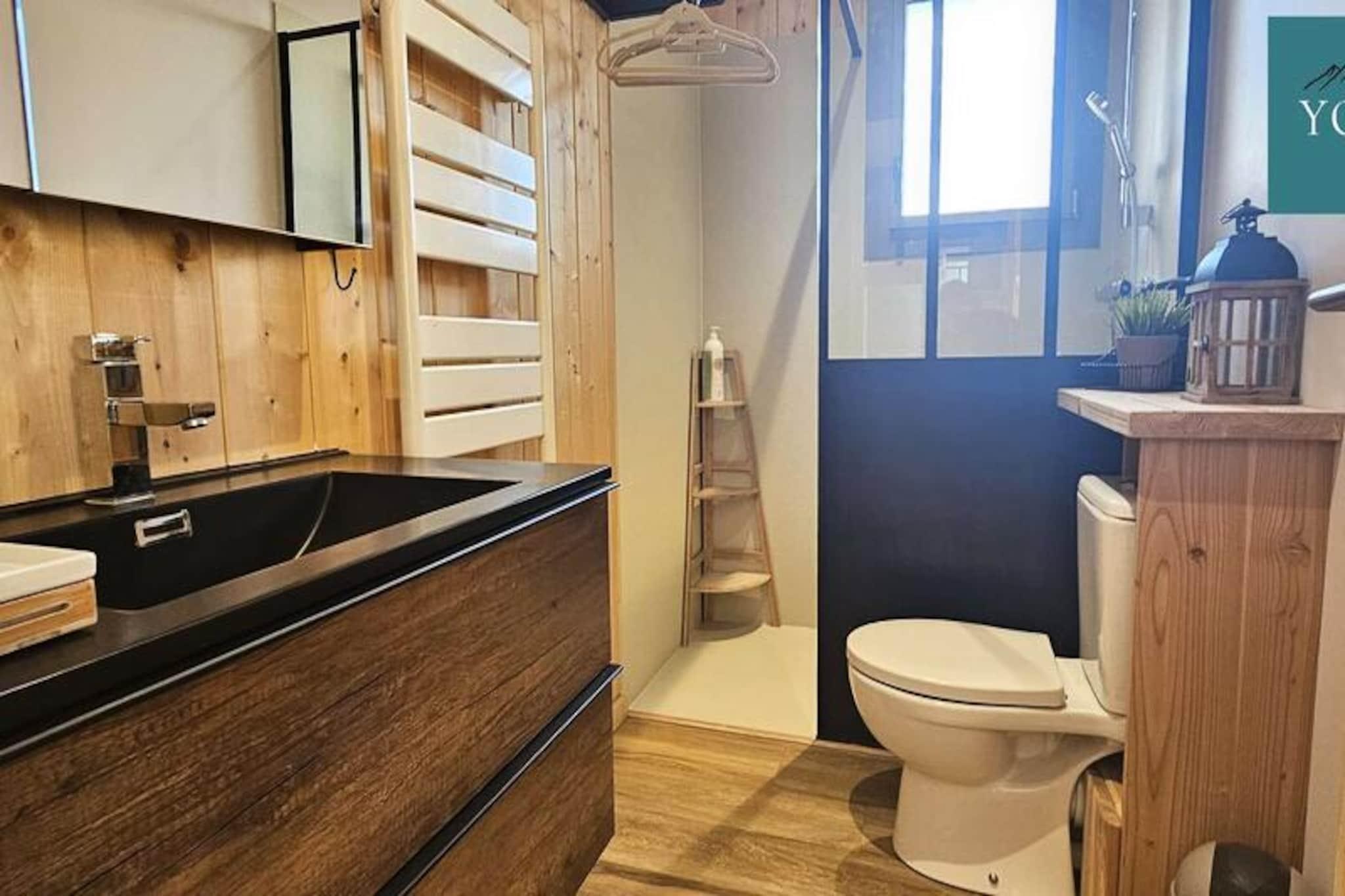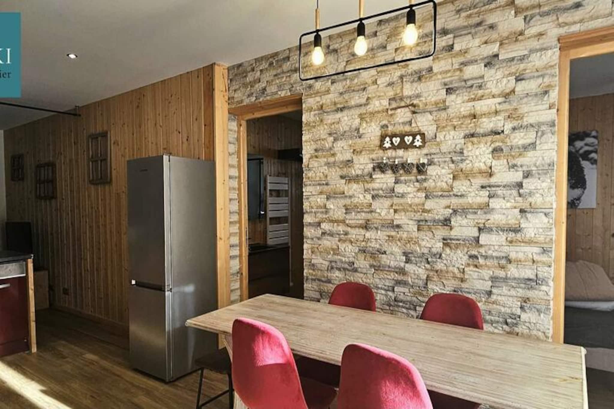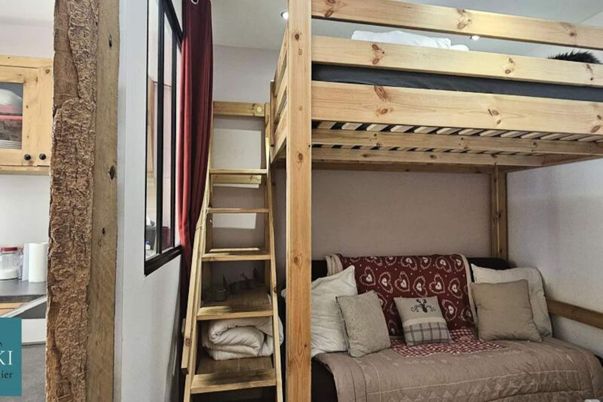 Ved indgangen til en malerisk alpelandsby tilbyder denne hyggelige lejlighed med et soveværelse et autentisk bjergparadis med moderne bekvemmeligheder. Beliggende i stueetagen af ??en traditionel hytte, blander ejendommen rustik charme med gennemtænkt design for at skabe et indbydende sted til din ferie. Uanset om du besøger om sommeren eller vinteren, gør de rolige omgivelser og den bekvemme beliggenhed det til en ideel base for at udforske regionens naturlige skønhed og kulturelle skatte. \n\nIndenfor har lejligheden en varm og indbydende opholdsstue komplet med et fuldt udstyret køkken, spiseplads og en komfortabel lounge. Stuen indeholder en 140x190 cm sovesofa og en hems i samme størrelse, perfekt til et barn. Det separate soveværelse kan prale af en blød 160x200 cm dobbeltseng, der sikrer afslappende nætter efter dage fyldt med eventyr. Et moderne brusebad med toilet bidrager til bekvemmeligheden, mens køkkenet er udstyret med alt nødvendigt, herunder køleskab, ovn, kaffemaskine, elkedel, brødrister og service til seks gæster. Udenfor finder du en privat parkeringsplads og et separat skirum, hvilket gør det nemt at skifte fra hyggelige morgener til aktive dage på pisterne. Kæledyr er velkomne efter anmodning, hvilket bidrager til den familievenlige atmosfære. \n\nLejligheden ligger lige neden for landsbyens ostemejeri, en kort 600 meter lang gåtur fra vigtige faciliteter såsom et bageri, en restaurant og en sportsbutik. I turistsæsonen tager en gratis shuttle-service dig hurtigt til landsbyens centrum og skiløjperne på bare fem minutter, hvilket sikrer ubesværet adgang til områdets attraktioner. Uanset om du nyder lokale delikatesser, udforsker naturskønne stier eller snowboarder, placerer denne charmerende chaletlejlighed dig i hjertet af det hele. \n\nMed sin blanding af komfort, bekvemmelighed og alpin charme lover denne ejendom en uforglemmelig ferie for par, familier eller små grupper, der søger den perfekte bjergflugt.