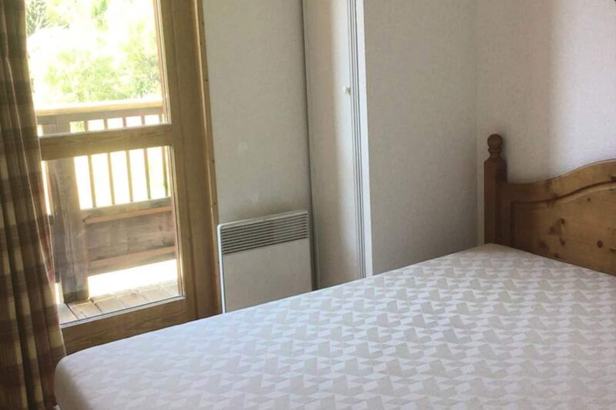 I hjertet af de maleriske franske alper tilbyder denne charmerende lejlighed på 40 m² i residensen 'Les Chalets de la Porte des Saisons' et hyggeligt tilflugtssted for op til seks gæster. Omgivet af betagende udsigt over bjergene og alpin ro er det den perfekte base for en mindeværdig ferie, uanset om du søger spændende vintereventyr eller fredelige sommerferier. Residensen udstråler en varm og indbydende atmosfære, ideel til familier eller venner, der ønsker at fordybe sig i Alpernes skønhed. \n\nLejligheden har et gennemtænkt design med en komfortabel stue og et fuldt udstyret tekøkken, perfekt til at tilberede måltider efter en dag med udforskning. Et hyggeligt soveværelse med dobbeltseng og et andet soveværelse giver en afslappende soveplads, mens det separate badeværelse og toilet sikrer bekvemmelighed for alle gæster. Gå ud på balkonen for at nyde den friske bjergluft og beundre de fantastiske omgivelser. Yderligere faciliteter inkluderer et skiskab til vintersportsentusiaster og et gratis tv til underholdning. Slutrengøring er inkluderet, hvilket sikrer en problemfri afrejse. \n\nOm vinteren stopper en gratis shuttlebus lige foran residensen, hvilket giver nem adgang til feriestedet og de nærliggende pister. Området forvandles til et pulserende centrum for skiløb, snowboarding og afterskiing. I sommermånederne bliver regionen et paradis for vandrere, cyklister og naturelskere med stier, der snor sig gennem frodige alpine enge og skove. Mens swimmingpoolen, saunaen og spaen er lukket uden for resortets åbningstider, kompenserer den naturlige skønhed og udendørsaktiviteterne mere end rigeligt. \n\nUanset om du kører ned ad snedækkede pister eller nyder roen på alpine stier, tilbyder denne lejlighed den perfekte blanding af komfort og bekvemmelighed. Skab uforglemmelige minder i dette idylliske bjergparadis, hvor hver årstid bringer sin egen unikke charme.