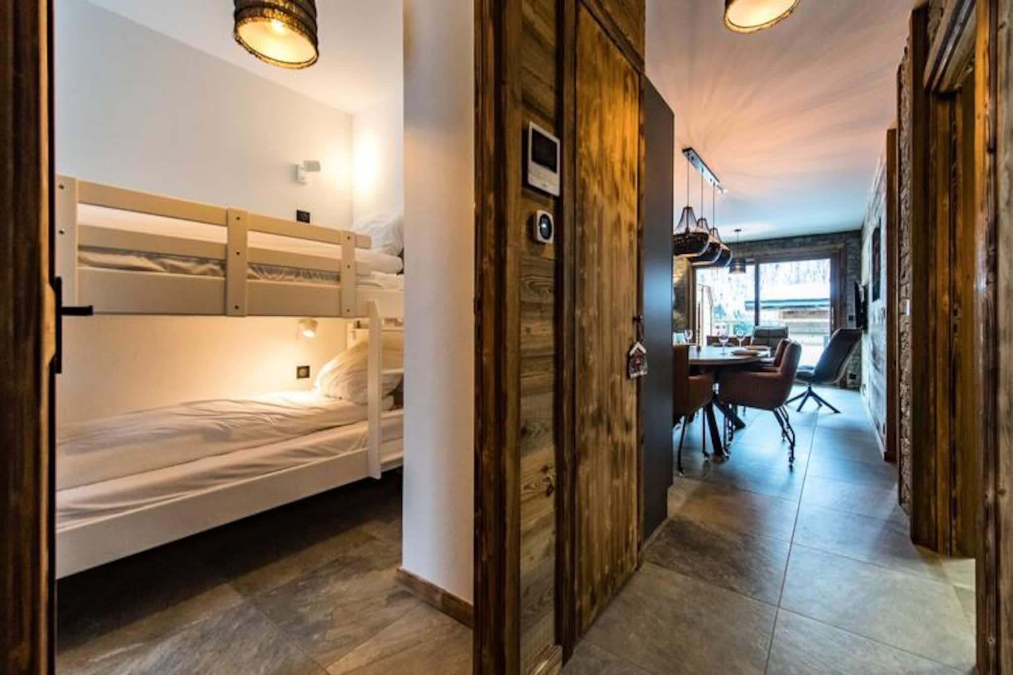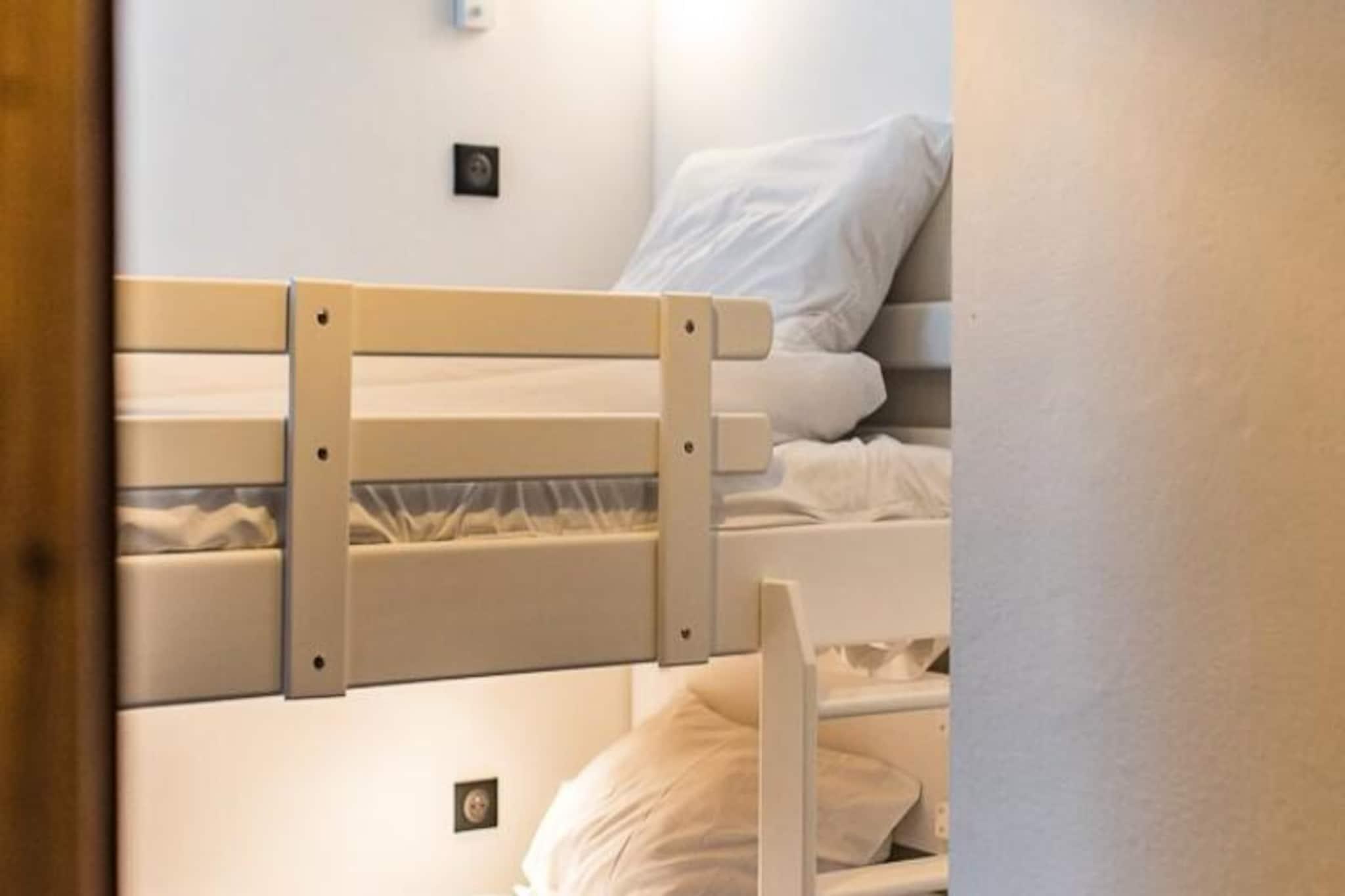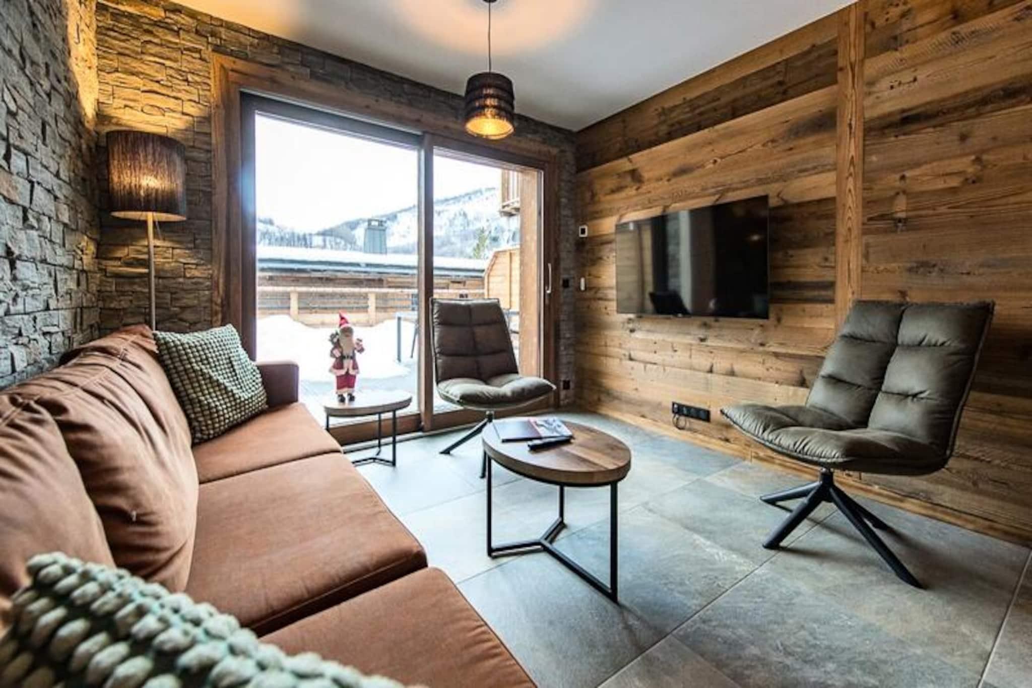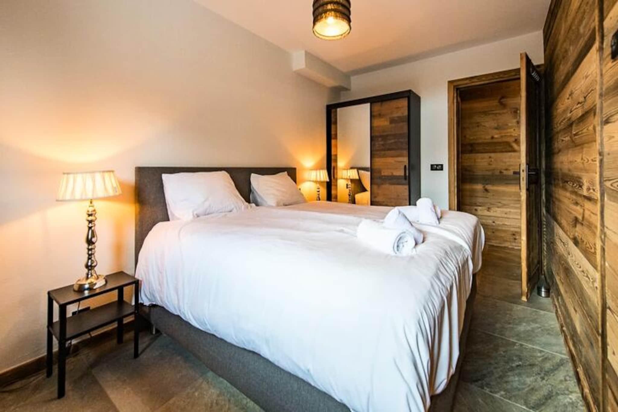 I det maleriske hjerte af Plan du Moulin tilbyder denne fantastiske lejlighed en perfekt blanding af moderne komfort og alpin charme, kun 300 meter fra begynderpisterne og 400 meter fra Plan du Moulin Express-stoleliften. Forestil dig at vågne op til den friske bjergluft, træde ud på din private 36 m² sydvendte terrasse og nyde den betagende udsigt over de omkringliggende tinder badet i sollys. Denne lejlighed med to sider er et paradis for dem, der søger både ro og eventyr i de franske alper. Træd indenfor og oplev et smukt designet opholdsrum med varm indretning og møbler af høj kvalitet. Stuen, komplet med en hyggelig tv-stue og spiseplads, åbner ud til terrassen, hvilket skaber en problemfri inde-udendørs forbindelse. Det fuldt udstyrede køkken inviterer dig til at tilberede solide måltider efter en dag på pisterne. Lejligheden har to rummelige soveværelser med kingsize-senge, en sovealkove med en køjeseng (perfekt til børn over seks år) og et moderne badeværelse med dobbelt håndvask og bruser. Gennemtænkte detaljer som et skiskab med støvletørrer, to indendørs parkeringspladser og opredte senge ved ankomst sikrer et stressfrit ophold. Ud over lejligheden tilbyder landsbyen Plan du Moulin en charmerende alpin atmosfære med nem adgang til skilifter, lokale butikker og restauranter. Uanset om du står på ski om vinteren eller udforsker bjergstierne om sommeren, placerer denne beliggenhed dig i hjertet af begivenhederne. Derudover er din ferieplanlægning ubesværet med nedsatte priser på liftkort og leje af udstyr gennem Altitude 1750. Denne lejlighed er mere end bare et sted at bo – det er en port til uforglemmelige øjeblikke med familie og venner. Book nu, og lad magien i de franske alper skabe minder, der vil vare hele livet.
