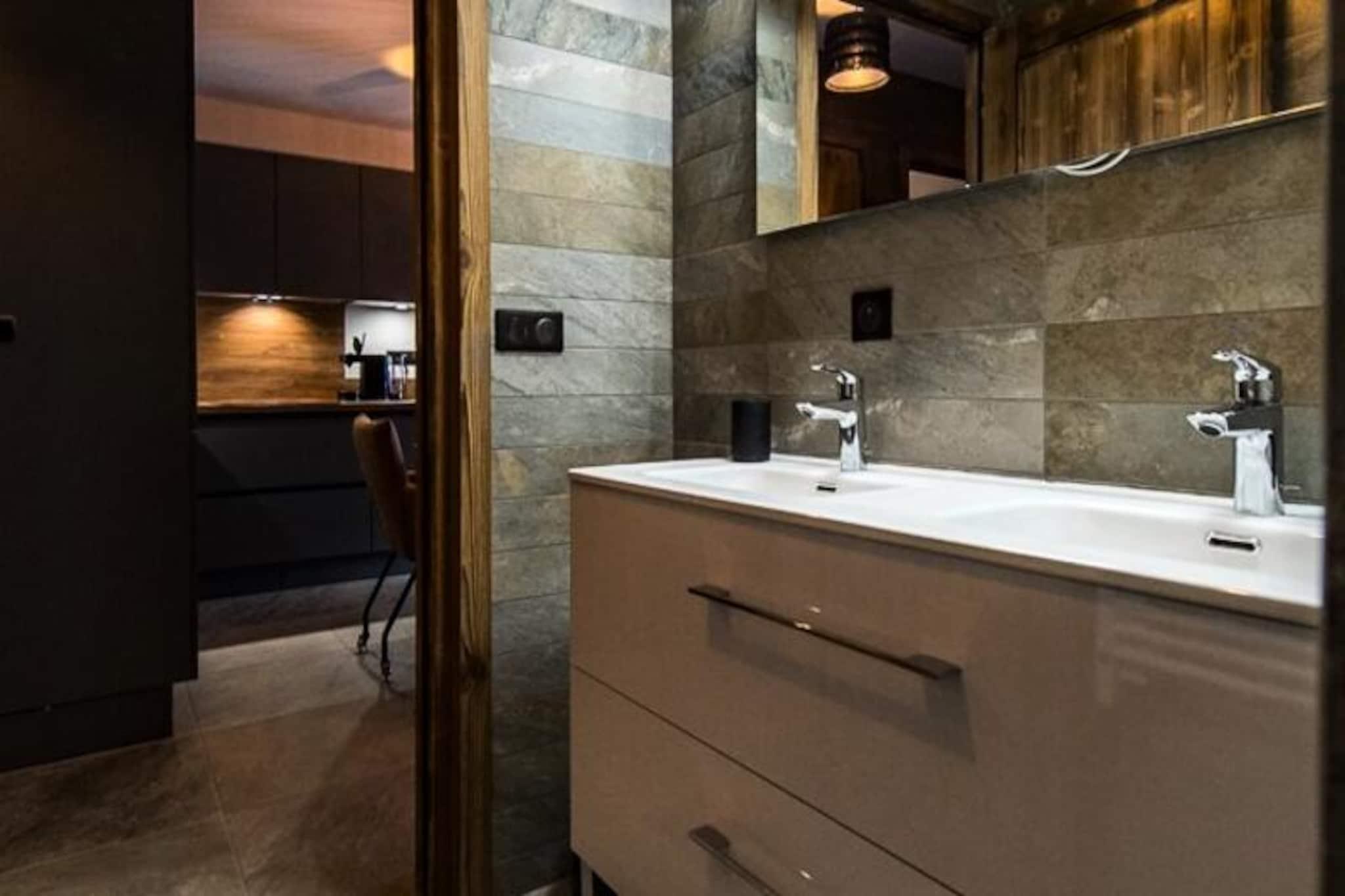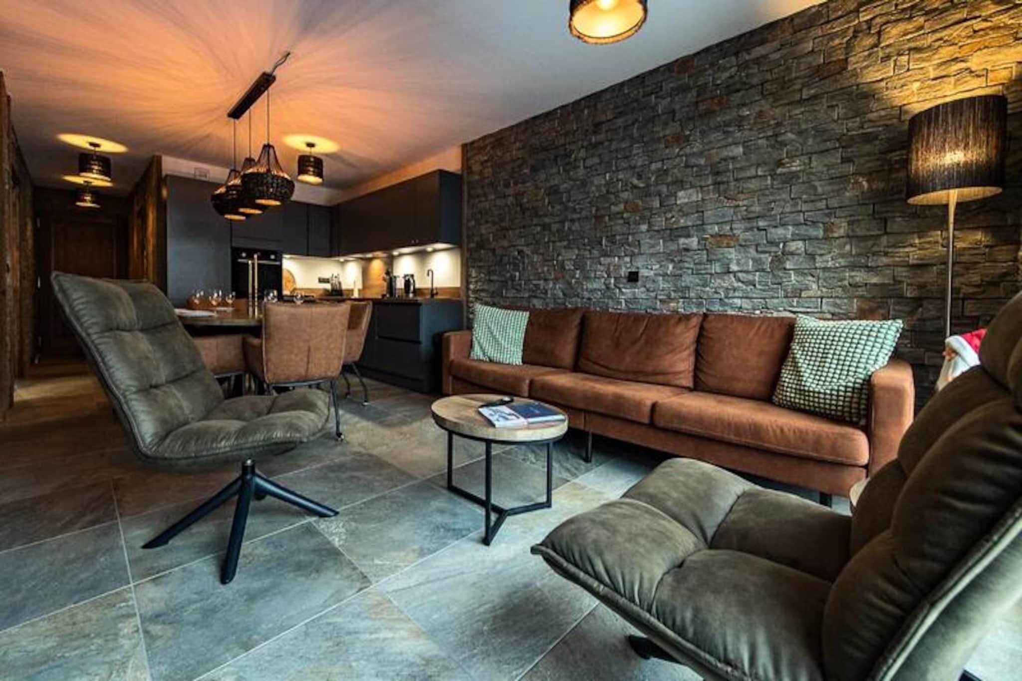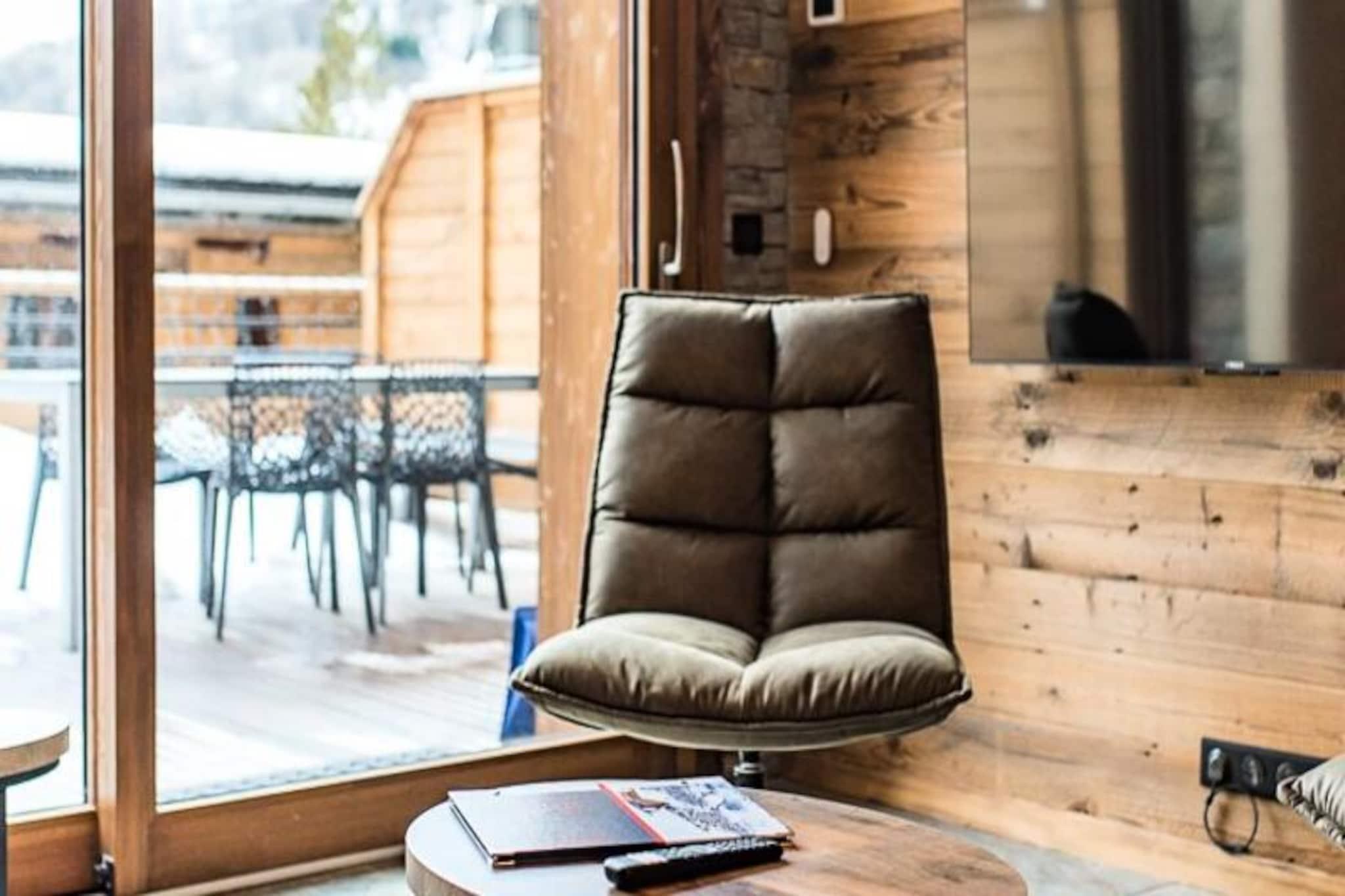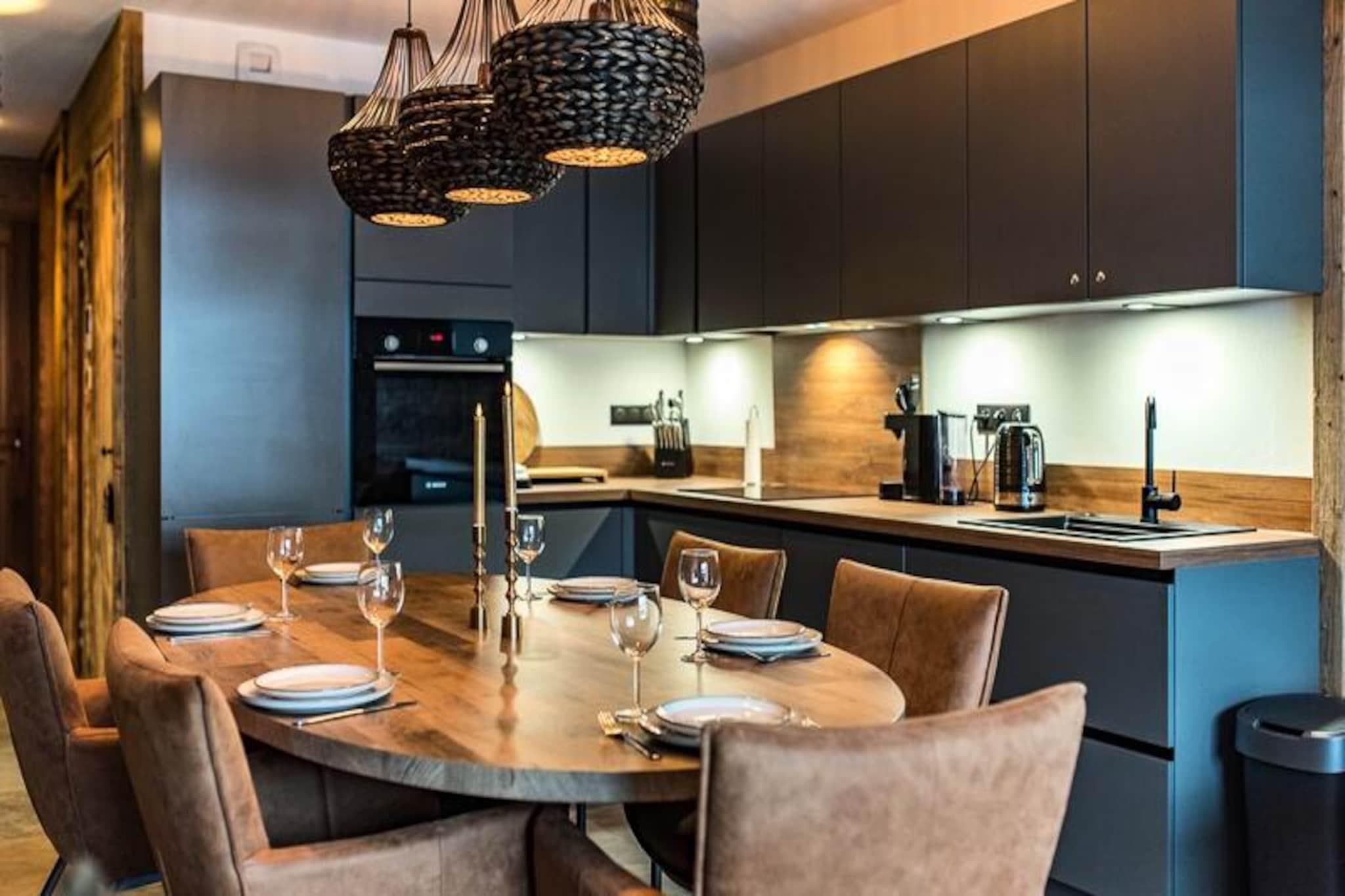I det maleriske hjerte af Plan du Moulin tilbyder denne fantastiske lejlighed en perfekt blanding af moderne komfort og alpin charme, kun 300 meter fra begynderpisterne og 400 meter fra Plan du Moulin Express-stoleliften. Forestil dig at vågne op til den friske bjergluft, træde ud på din private 36 m² sydvendte terrasse og nyde den betagende udsigt over de omkringliggende tinder badet i sollys. Denne lejlighed med to sider er et paradis for dem, der søger både ro og eventyr i de franske alper. Træd indenfor og oplev et smukt designet opholdsrum med varm indretning og møbler af høj kvalitet. Stuen, komplet med en hyggelig tv-stue og spiseplads, åbner ud til terrassen, hvilket skaber en problemfri inde-udendørs forbindelse. Det fuldt udstyrede køkken inviterer dig til at tilberede solide måltider efter en dag på pisterne. Lejligheden har to rummelige soveværelser med kingsize-senge, en sovealkove med en køjeseng (perfekt til børn over seks år) og et moderne badeværelse med dobbelt håndvask og bruser. Gennemtænkte detaljer som et skiskab med støvletørrer, to indendørs parkeringspladser og opredte senge ved ankomst sikrer et stressfrit ophold. Ud over lejligheden tilbyder landsbyen Plan du Moulin en charmerende alpin atmosfære med nem adgang til skilifter, lokale butikker og restauranter. Uanset om du står på ski om vinteren eller udforsker bjergstierne om sommeren, placerer denne beliggenhed dig i hjertet af begivenhederne. Derudover er din ferieplanlægning ubesværet med nedsatte priser på liftkort og leje af udstyr gennem Altitude 1750. Denne lejlighed er mere end bare et sted at bo – det er en port til uforglemmelige øjeblikke med familie og venner. Book nu, og lad magien i de franske alper skabe minder, der vil vare hele livet.