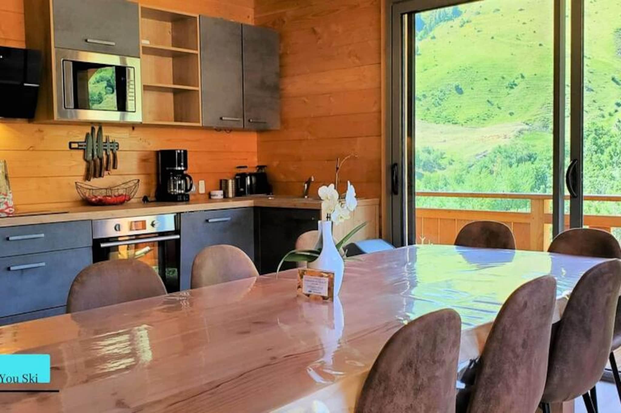 Denne elegante duplex hytte tilbyder et roligt tilflugtssted med en fantastisk udsigt over Aiguilles d'Arves. Det omfatter fem soveomr?der: to sovev?relser med dobbeltsenge (et med en-suite brusebad og balkon), en mezzanin med fleksible sengemuligheder og et v?relse med k?jeseng. Den lyse opholdsstue har et fuldt udstyret k?kken, spiseplads og opholdsstue med tv. Udenfor kan du slappe af p? den m?blerede terrasse med en gasgrill og nyde petanquebanen. Sm? k?ledyr er tilladt mod et gebyr, forudsat at de er i snor og holdes v?k fra senge og sofaer. Beliggende ved landsbyens indgang n?r ostemejeriet, er hytten bekvemt placeret for nem adgang til lokale faciliteter. En gratis shuttle k?rer i turists?sonerne og tager dig til pisterne eller landsbyens centrum p? f? minutter. Butikker, herunder et bageri, restaurant og sportsbutik, ligger kun 600 meter v?k. Udforsk natursk?nne stier, nyd n?rliggende lokale markeder, eller fork?l dig selv med regionale retter p? charmerende spisesteder. Det moderne k?kken omfatter en opvaskemaskine, stort k?leskab, ovn, kaffemaskiner og raclette- og fondues?t, der kan rumme op til 11 g?ster. Faciliteterne inkluderer to parkeringspladser, et skiskab og slutreng?ring. Sengelinned og h?ndkl?der kan lejes. Mezzaniner anbefales ikke til sm? b?rn eller ?ldre voksne. En privat sauna (3 timer om dagen) tilf?jer et strejf af luksus til denne hyggelige alpine flugt.