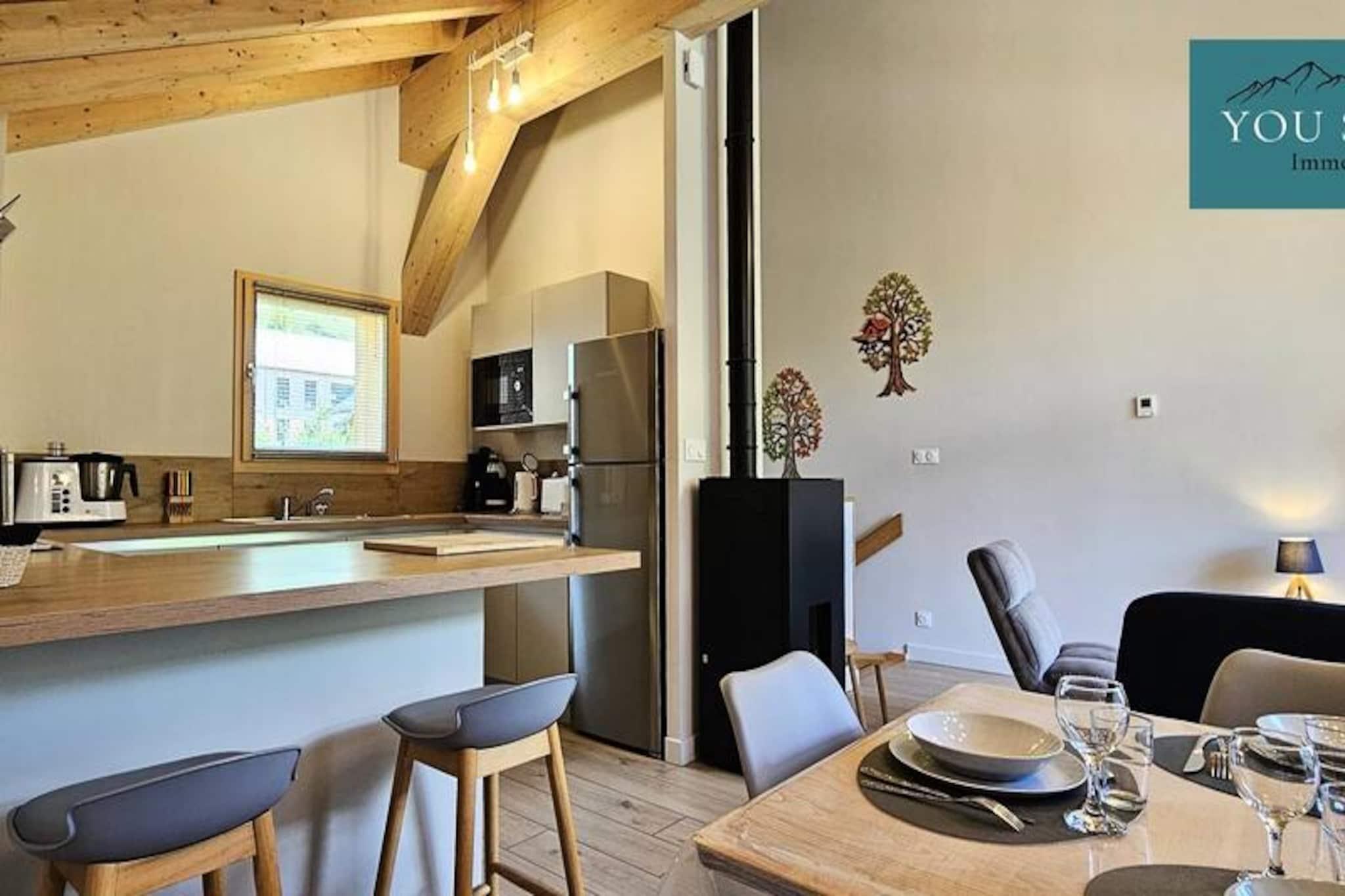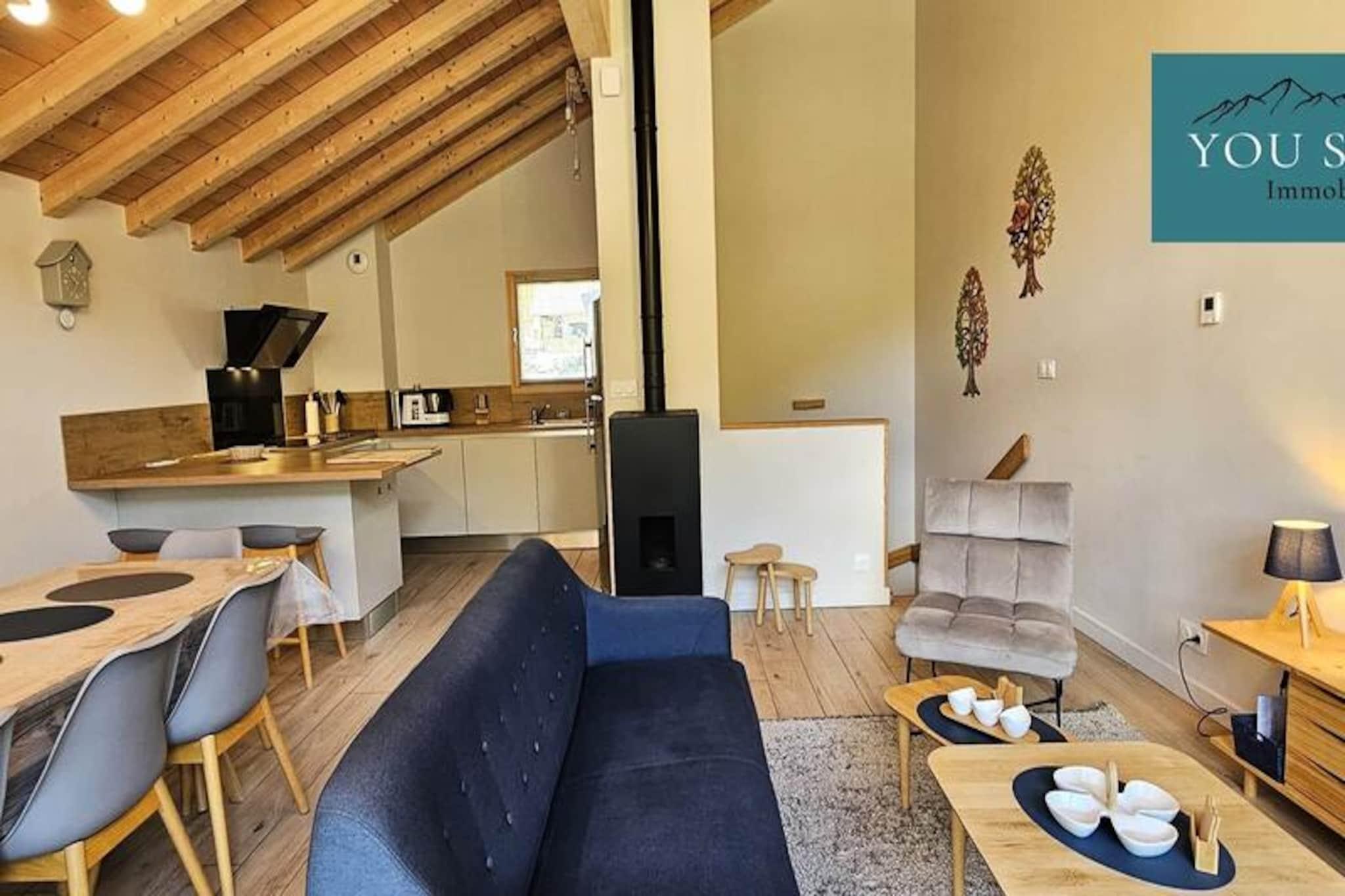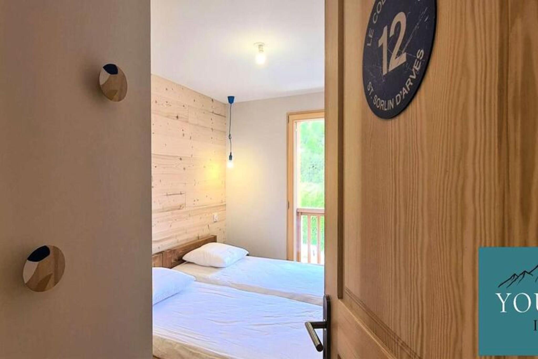 Denne fantastiske, nye 100m² triplex chalet kan komfortabelt rumme op til otte gæster. Den har fire soveværelser: to med dobbeltsenge (160x200 cm) og to med to enkeltsenge (90x190 cm). To parkeringspladser, Wi-Fi og et skiskab er inkluderet gratis. Sengelinned og håndklæder er valgfrie og tilgængelige mod et ekstra gebyr. Kæledyr er ikke tilladt. Beliggende nær skråningerne og butikkerne i Saint Sorlin d'Arves (5 minutters gang), tilbyder dette feriehus en eftertragtet beliggenhed for familieferier i bjergene. Dens omgivelser i en nyere bolig giver både nærhed til landsbyen og skråninger og rolige omgivelser med uhindret udsigt. Denne hytte har en indgang med opbevaringsrum, to badeværelser, to toiletter, en opholdsstue med pillefyr, en stue med et tv og en stor balkon med udsigt over bjergene. Det åbne køkken er udstyret med vaskemaskine, tørretumbler, opvaskemaskine, stort køleskab, ovn, filter- og pod-kaffemaskiner, kedel, brødrister, raclette- og fonduemaskiner, et Monsieur Cuisine-apparat og komplet service til otte gæster. Denne velindrettede hytte tilbyder en komfortabel og bekvem base for en bjergferie.