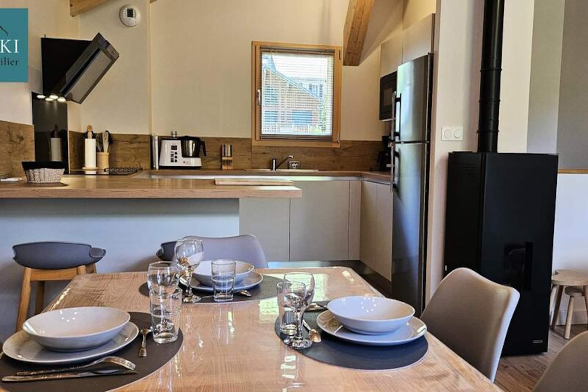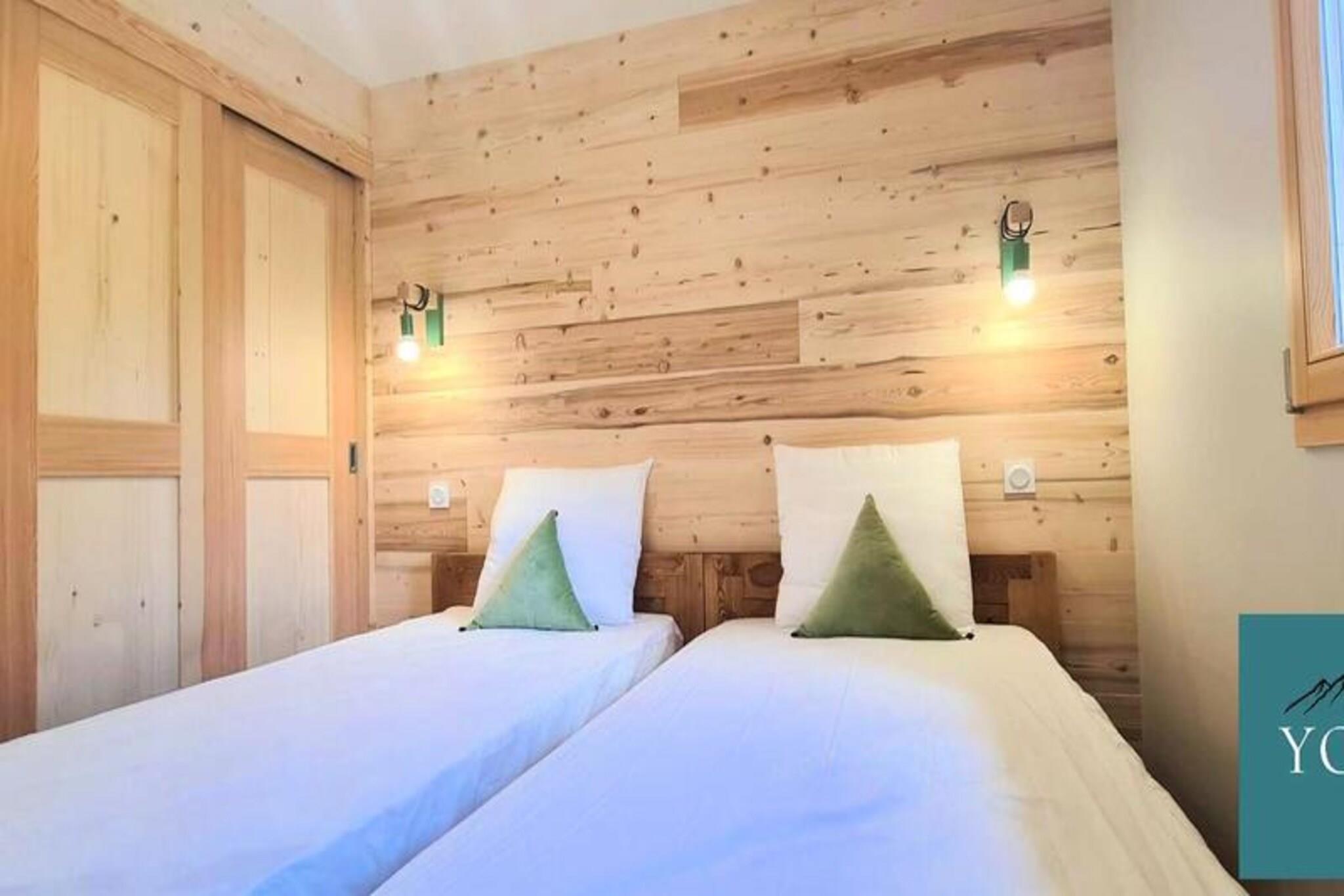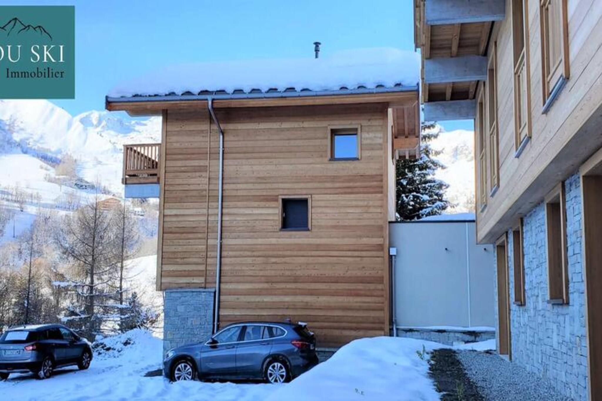Denne fantastiske, nye 100m² triplex chalet kan komfortabelt rumme op til otte gæster. Den har fire soveværelser: to med dobbeltsenge (160x200 cm) og to med to enkeltsenge (90x190 cm). To parkeringspladser, Wi-Fi og et skiskab er inkluderet gratis. Sengelinned og håndklæder er valgfrie og tilgængelige mod et ekstra gebyr. Kæledyr er ikke tilladt. Beliggende nær skråningerne og butikkerne i Saint Sorlin d'Arves (5 minutters gang), tilbyder dette feriehus en eftertragtet beliggenhed for familieferier i bjergene. Dens omgivelser i en nyere bolig giver både nærhed til landsbyen og skråninger og rolige omgivelser med uhindret udsigt. Denne hytte har en indgang med opbevaringsrum, to badeværelser, to toiletter, en opholdsstue med pillefyr, en stue med et tv og en stor balkon med udsigt over bjergene. Det åbne køkken er udstyret med vaskemaskine, tørretumbler, opvaskemaskine, stort køleskab, ovn, filter- og pod-kaffemaskiner, kedel, brødrister, raclette- og fonduemaskiner, et Monsieur Cuisine-apparat og komplet service til otte gæster. Denne velindrettede hytte tilbyder en komfortabel og bekvem base for en bjergferie.
