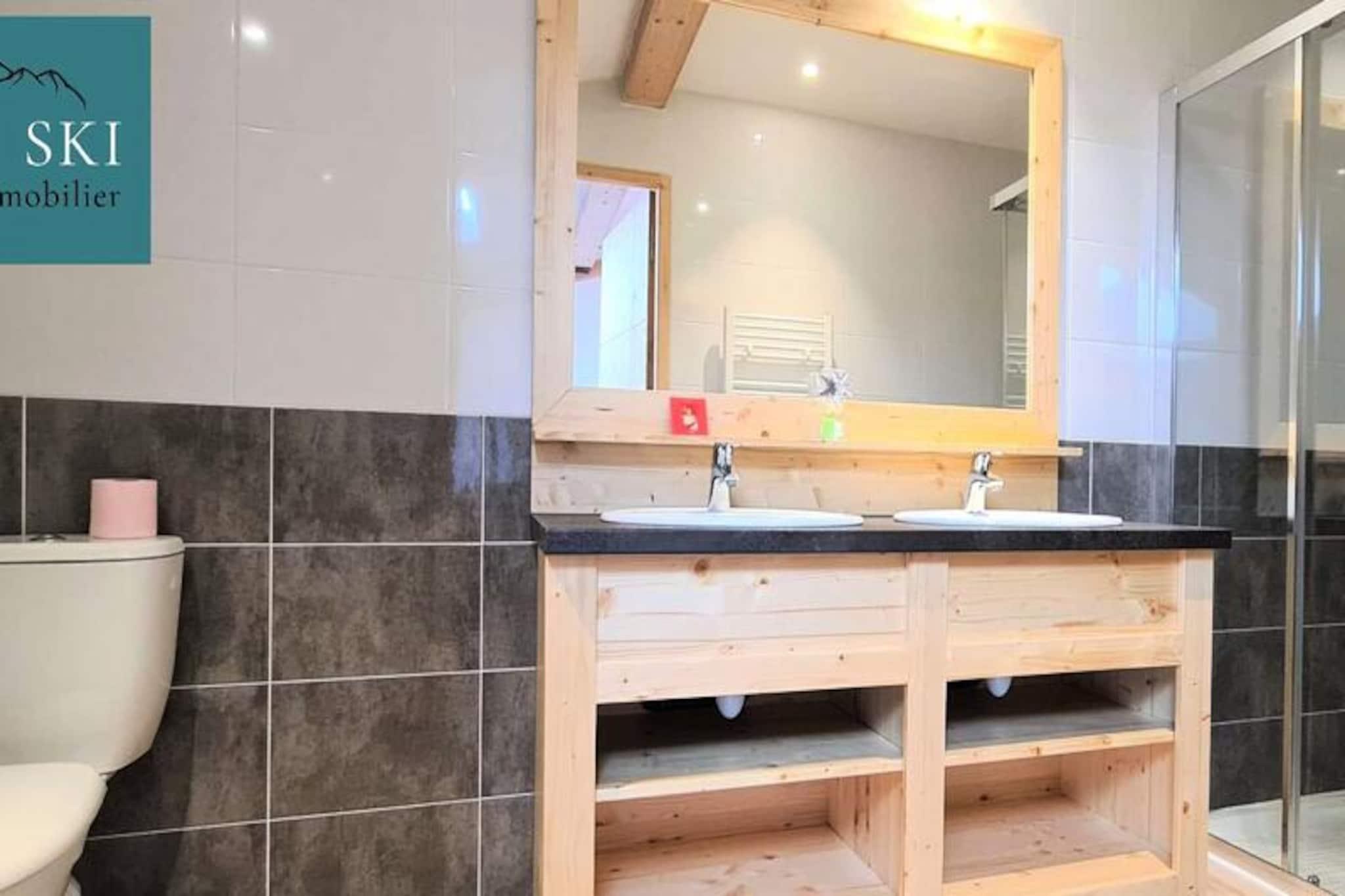 Denne rummelige lejlighed på 120 m² er perfekt til familieferier og tilbyder 4 velindrettede soveværelser. Det første soveværelse har en dobbeltseng, med et tilstødende toilet og brusebad. Det andet soveværelse har en enkeltseng og en dobbeltseng samt eget brusebad og toilet. Børneværelset har en enkeltseng og en køjeseng med et nærliggende toilet. Det store soveværelse har en stor dobbeltseng og privat adgang til badeværelse med vaskemaskine og tørretumbler. Lejligheden er ikke kæledyrsvenlig. Denne lejlighed ligger kun 150 meter fra pisterne og tilbyder en ideel beliggenhed for skientusiaster med butikker og en skiskole i nærheden. Boligen ligger i et fredeligt område, væk fra byens stress og jag, men alligevel tæt nok på til at nyde de lokale faciliteter. Gæsterne kan nyde en betagende udsigt over pisterne, bjergene og landsbyen fra den store balkon. Lejligheden har et moderne køkken, fuldt udstyret med opvaskemaskine, køleskab, ovn, kaffemaskine og alle de nødvendige retter til op til 10 personer. Der er også et opholdsområde med tv og Wi-Fi til afslapning efter en dag på pisterne. Tre parkeringspladser og et skiskab er til rådighed for din bekvemmelighed. Valgfrie tjenester, såsom sengelinned og håndklæder, kan arrangeres mod et ekstra gebyr.
