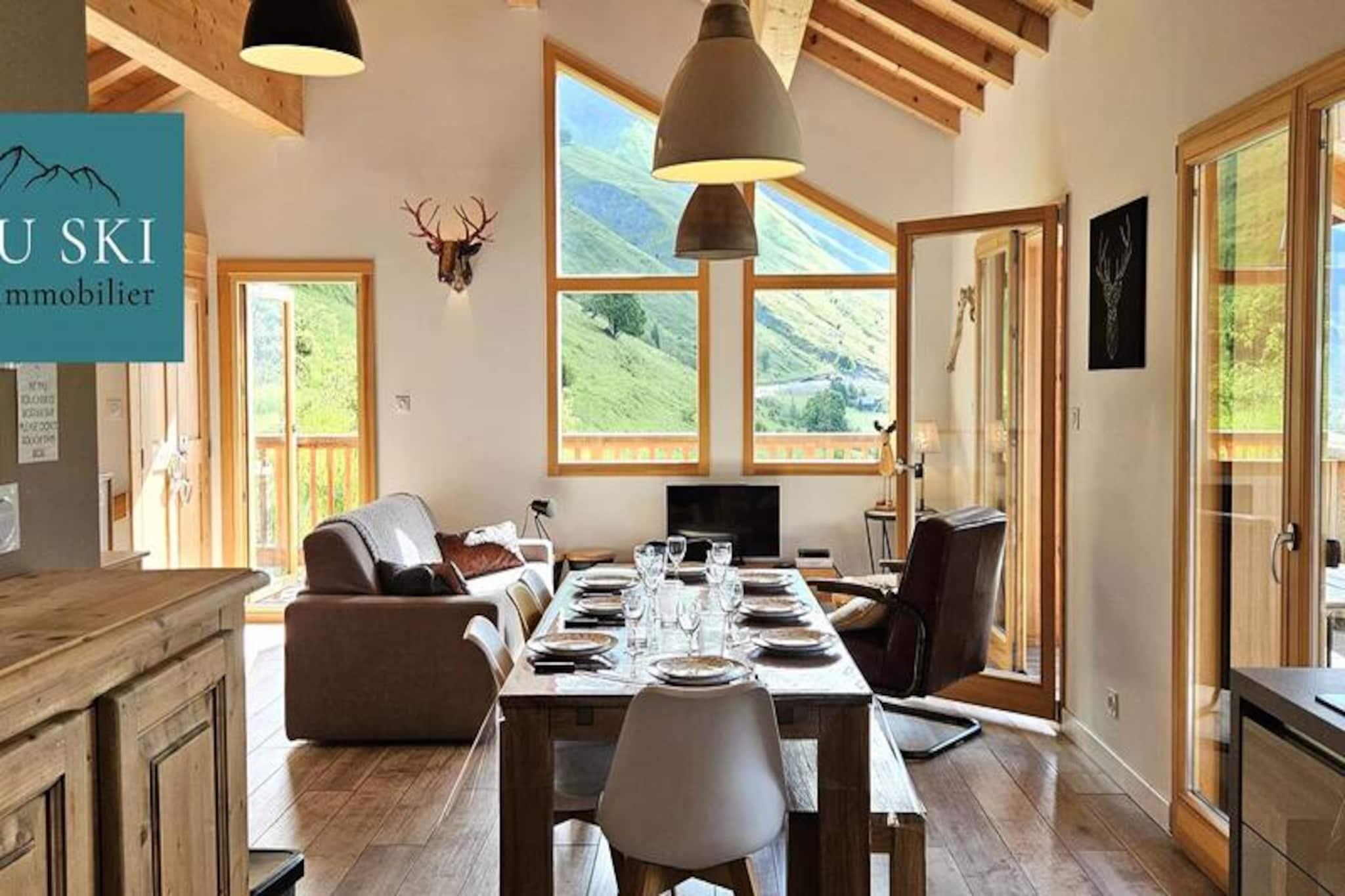 Denne rummelige hytte kan komfortabelt rumme op til otte g?ster og tilbyder tre sovev?relser: et med dobbeltseng, et med to enkeltsenge og et andet med 90 cm k?jesenge. Et separat soveomr?de tilf?jer ekstra fleksibilitet. Hytten indeholder ogs? to badev?relser og et toilet. K?ledyr er ikke tilladt. Med moderne bekvemmeligheder som gratis Wi-Fi, et tv, to skiskabe og elektriske skot?rrere samt to parkeringspladser er denne ejendom perfekt til en skiferie. Hytten er ideelt beliggende i Saint Sorlin d'Arves, kun 400 meter fra pisterne, skiskolen og butikkerne, hvilket giver nem adgang til resortet. Udforsk n?rliggende caf?er, restauranter og butikker, og nyd en betagende udsigt over de omkringliggende bjerge. Omr?det byder p? vintersportsaktiviteter og natursk?nne vandre- eller cykelstier til sjov ?ret rundt. Det moderne k?kken er fuldt udstyret med opvaskemaskine, stort k?leskab, ovn, kaffemaskiner (filter og pod), elkedel, br?drister og raclette- og fonduemaskiner. For nemheds skyld er der vaskemaskine og t?rretumbler. Opholdsstuen har pillefyr, elektriske rulleskodder og balkon med en fantastisk udsigt.