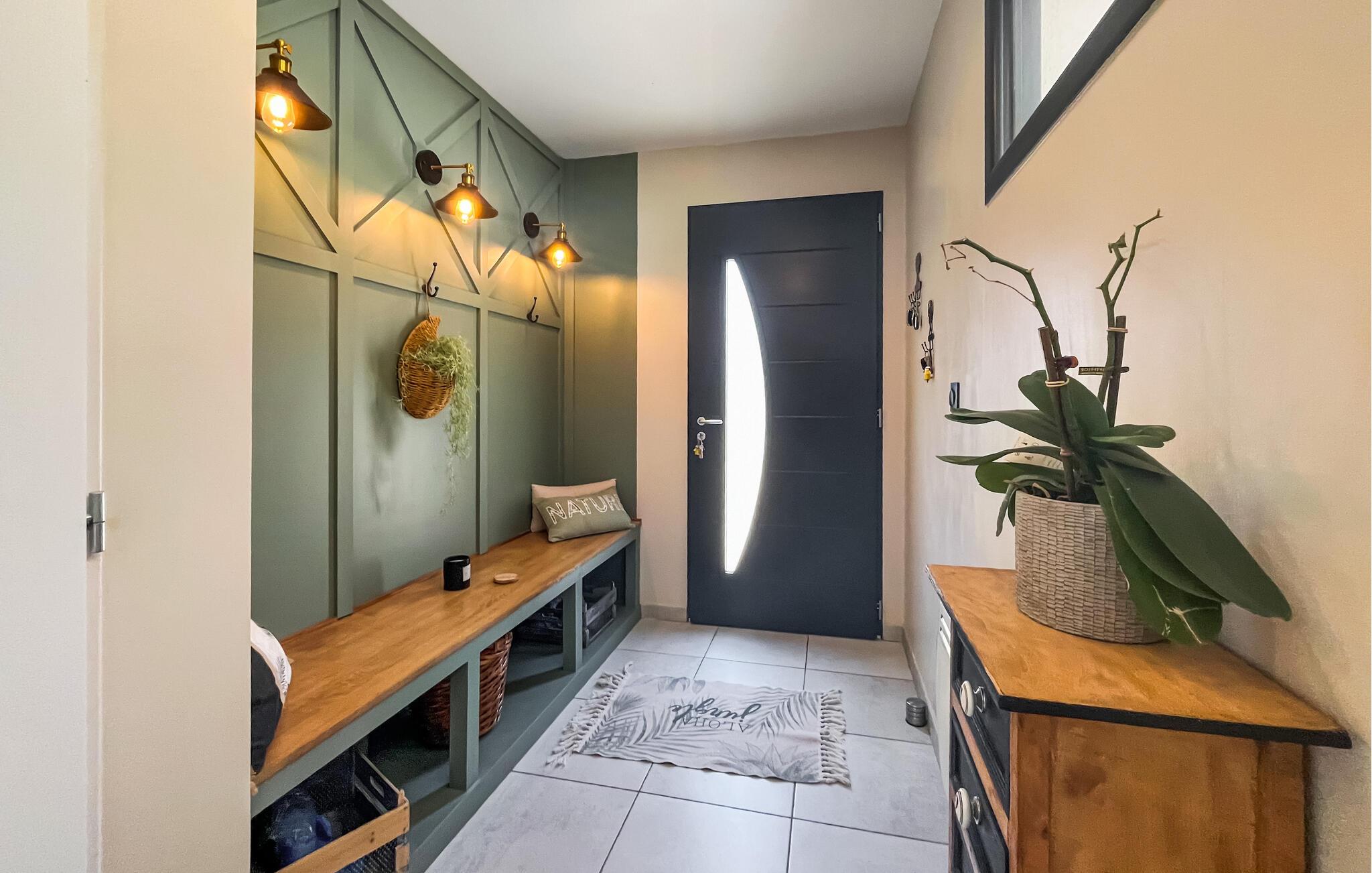 Velkommen til dette rummelige og smagfulde feriehus. Her kan I slappe af på en forhøjet beliggenhed og opleve magiske solopgange og solnedgange midt i det maleriske landskab. Tilbered kulinariske lækkerier og nyd jeres måltider i den åbne opholdsstue. Gør det behageligt i den rummelige sofa med et brætspil eller fordyb jer i en spændende bog på jeres yndlingssted.