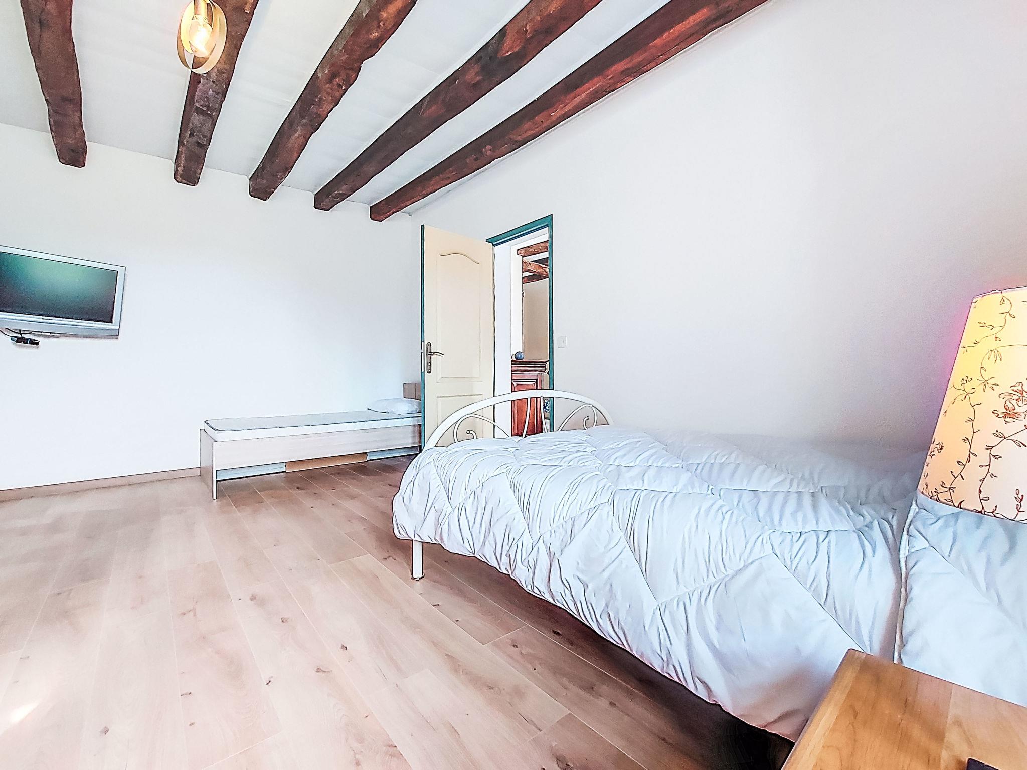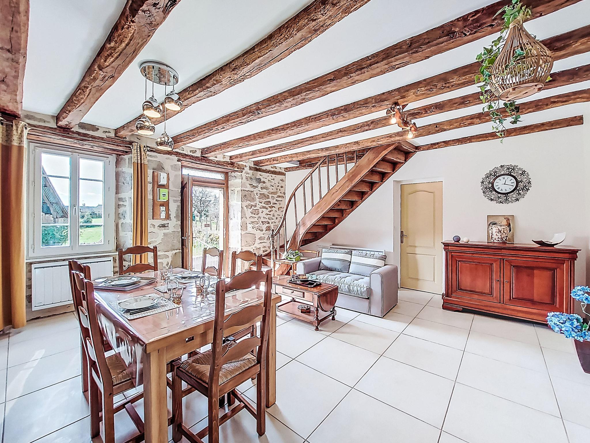 "Gîte Saint Sauveur", 2-room house 50 m2. Comfortable and rustic furnishings: living/dining room with open-hearth fireplace (only for decoration), dining table and TV (flat screen). 1 large room with 1 bed (90 cm, length 190 cm), 1 french bed (140 cm, length 190 cm), TV. Kitchen (oven, dishwasher, 3 induction hot plates, toaster, kettle, microwave, freezer, electric coffee machine). Shower, sep. WC. Electric heating. Facilities: washing machine. Please note: maximum 2 pets/ dogs allowed. Smoke alarm. Offer by a private individual according to Art. 155, IV of CGI.