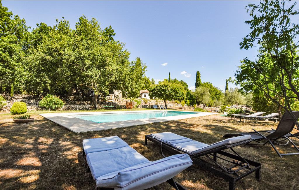 Her er en dejlig pool til afkøling. Efter det storslåede panorama over landsbyen med udsigt over de skovklædte bakker og Massif des Maures og Estérel-bjergene.