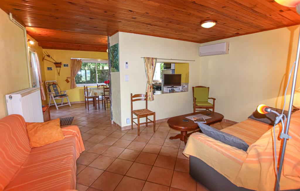 Interiøret skaber en venlig atmosfære med varme farver og trælofter. Nyd måltiderne i det praktiske køkken med spisebord og udsigt over haven. Tilbring tid sammen i opholdsstuen, som er udstyret med siddepladser, og tilbring aftenerne med at slappe af.
