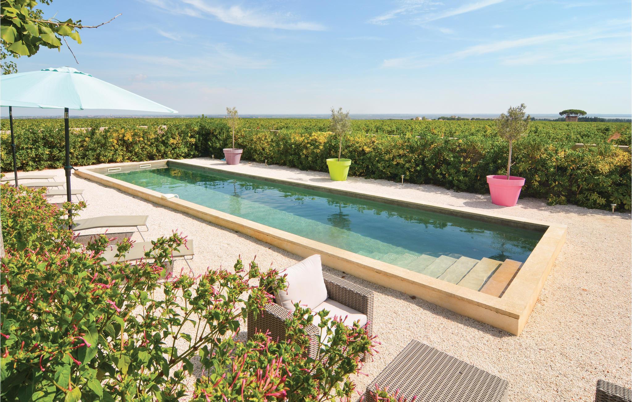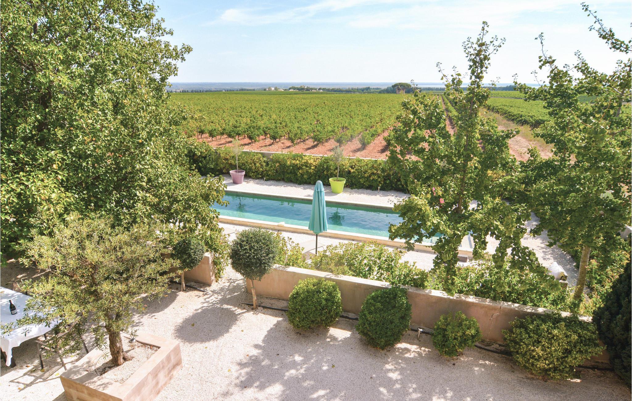 Nær vinslottet Château Vessière ligger dette superbe landhus, der på trods af en omhyggelig renovering alligevel udstråler tidligere tiders charme. Det er raffineret indrettet med god kvalitet, her er bl.a. et langstrakt svømmebassin samt en indendørs whirlpool. Tag en slentretur til markedet i landsbyen Saint-Gilles i de tidlige morgentimer og senere på dagen kan I vælge en af de mange vandrestier der gennemkrydser det skønne vinområde. I bor blot en halv time fra de spændende byer Nîmes og Arles samt Camargue og Etang de Scamandre med mange søer. Også byer og pittoreske landsbyer som Beaucaire, Aigues-Mortes, Saintes-Maries-de-la-Mer, Les Baux-des-Provence og Avignon ligger i en omkreds på under 50 km. I burde også se Pont du Gard mindst én gang i livet. Ejeren arrangerer vinsmagninger, hvor I kan lære distriktet endnu bedre at kende i autentiske rammer. Der er et ekstra brusebad ved siden af whirlpoolen. En petanquebane sørger for afveksling. På en eller to dage om efteråret foregår der vinhøst på naboens grund.