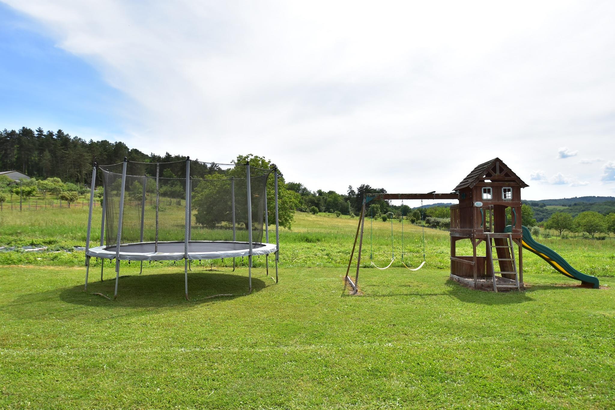 Stueetage: (Stue(Fjernsyn(parabol, antenne, Internationale TV-kanaler), kakkelovn(træ)), åbent køkken(komfur, mikrobølgeovn, opvaskemaskine , køle-fryseskab), soveværelse(dobbeltseng), badeværelse(badekar, bruser, håndvask), kaffemaskine, toilet, vaskemaskine) På 1. etage: (soveværelse(køjeseng), soveværelse(2x enkeltseng, barneseng), badeværelse(bruser, håndvask), toilet) terrasse, solstole, grill, trampolin, liggestole, swimmingpool(deles med ejer, termotæppe til swimmingpool, 8 x 4 m., opened from 1/2 Apr upto and including Oct), legeredskaber, bordtennisbord, loungemøbler, Pladegrill