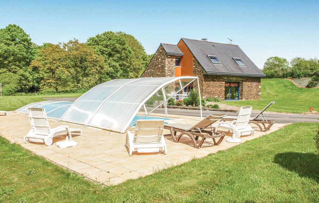 Ejendommen står på en stor grøn grund, hvor der er blomster og træer. Den opvarmede pool er handicapvenlig og er overdækket. Det har beliggenhed 4 km fra søen Bosméléac, hvor I kan dyrke mange former for vandsport og en sandstrand.