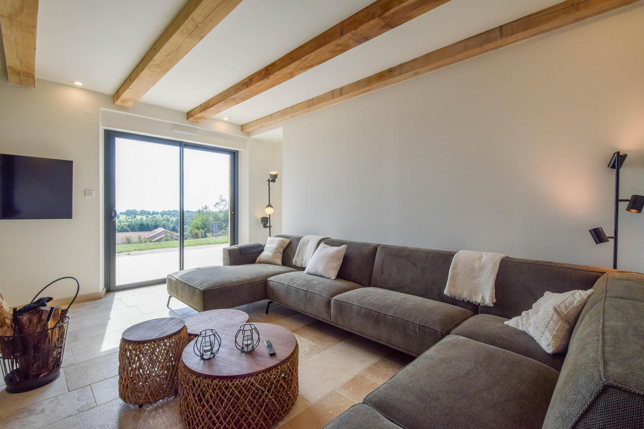 Stueetage: (Stue(Fjernsyn(parabol, Hollandske TV-kanaler, Internationale TV-kanaler), pejs), spisestue(spisebord(8 personer)), åbent køkken(komfur(Komfur med fire kogeplader, gas), ovn, mikrobølgeovn, opvaskemaskine , køle-fryseskab), Soveværelse med badeværelse(dobbeltseng, bruser, håndvask, toilet), Soveværelse med badeværelse(dobbeltseng, bruser, håndvask, toilet)) På 1. etage: (Soveværelse med badeværelse(dobbeltseng, bruser, håndvask, toilet), Soveværelse med badeværelse(dobbeltseng, bruser, håndvask, toilet), tørretumbler, vaskemaskine) kaffemaskine, badekar eller bruser, varme(elektrisk, træ), terrasse(deles med andre gæster), have(privat), havemøbler, solstole, grill(trækul), parkering, trampolin(deles med andre gæster), swimmingpool(privat, opvarmet, indhegnet, opened from May upto and including Sep), tennisbane(deles med andre gæster), petanquebane(deles med andre gæster), legeredskaber(deles med andre gæster), barneseng(på anmodning), barnestol(på anmodning)