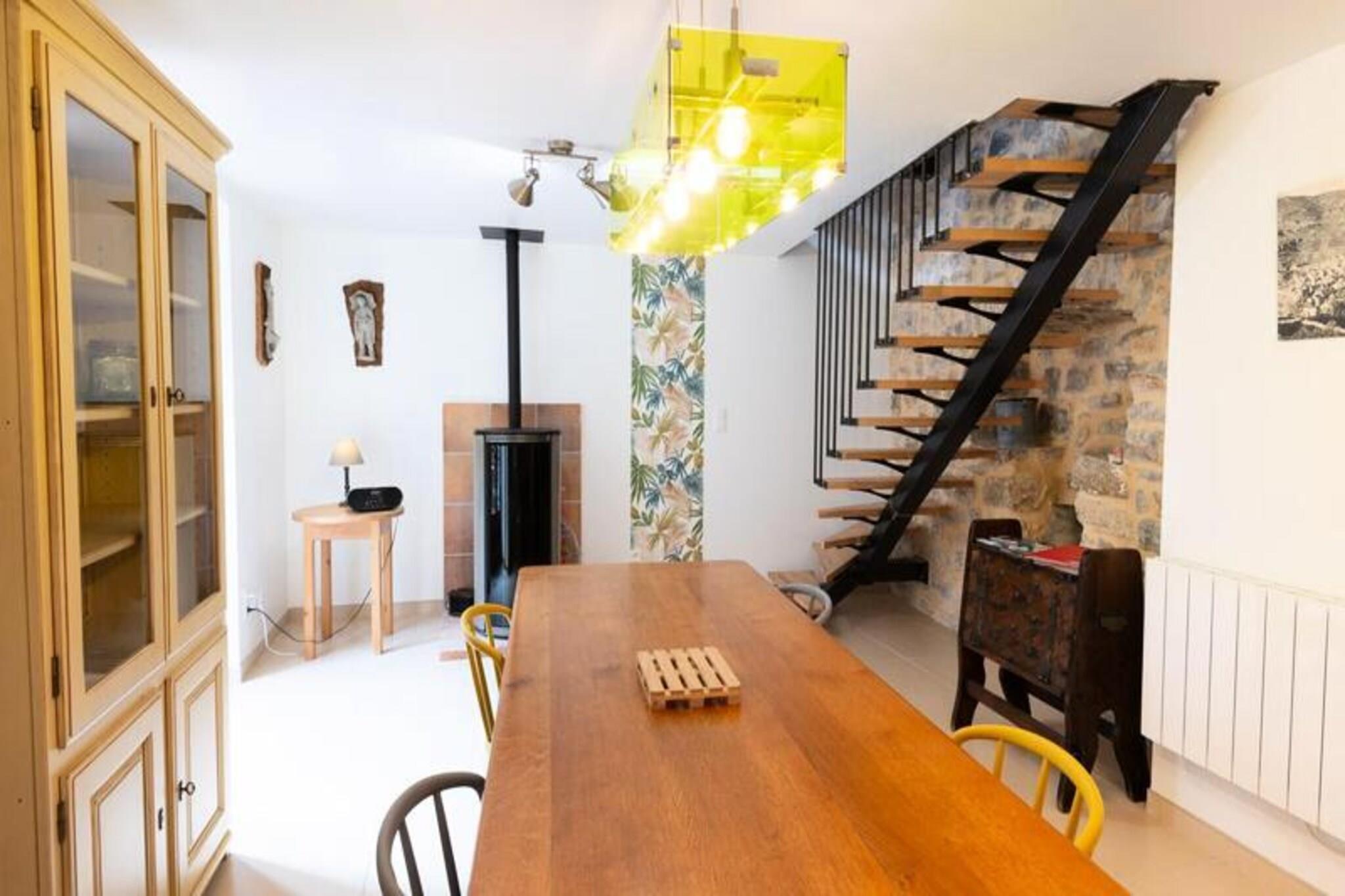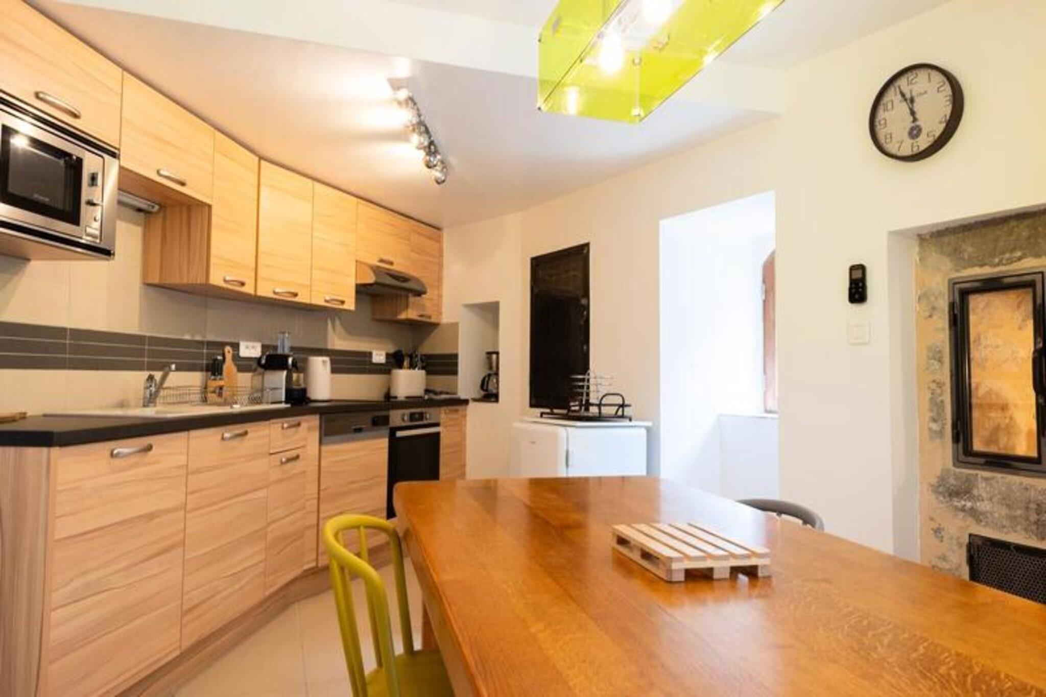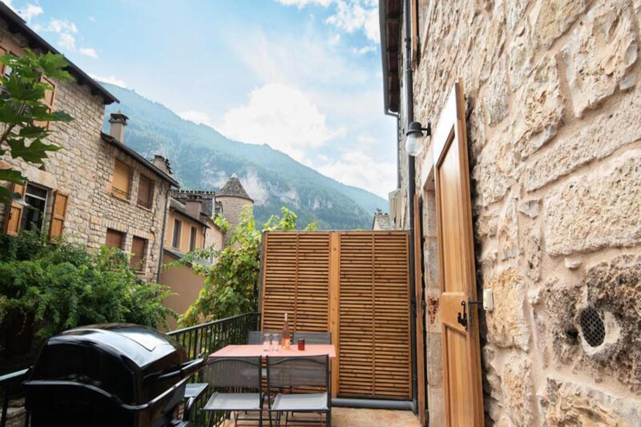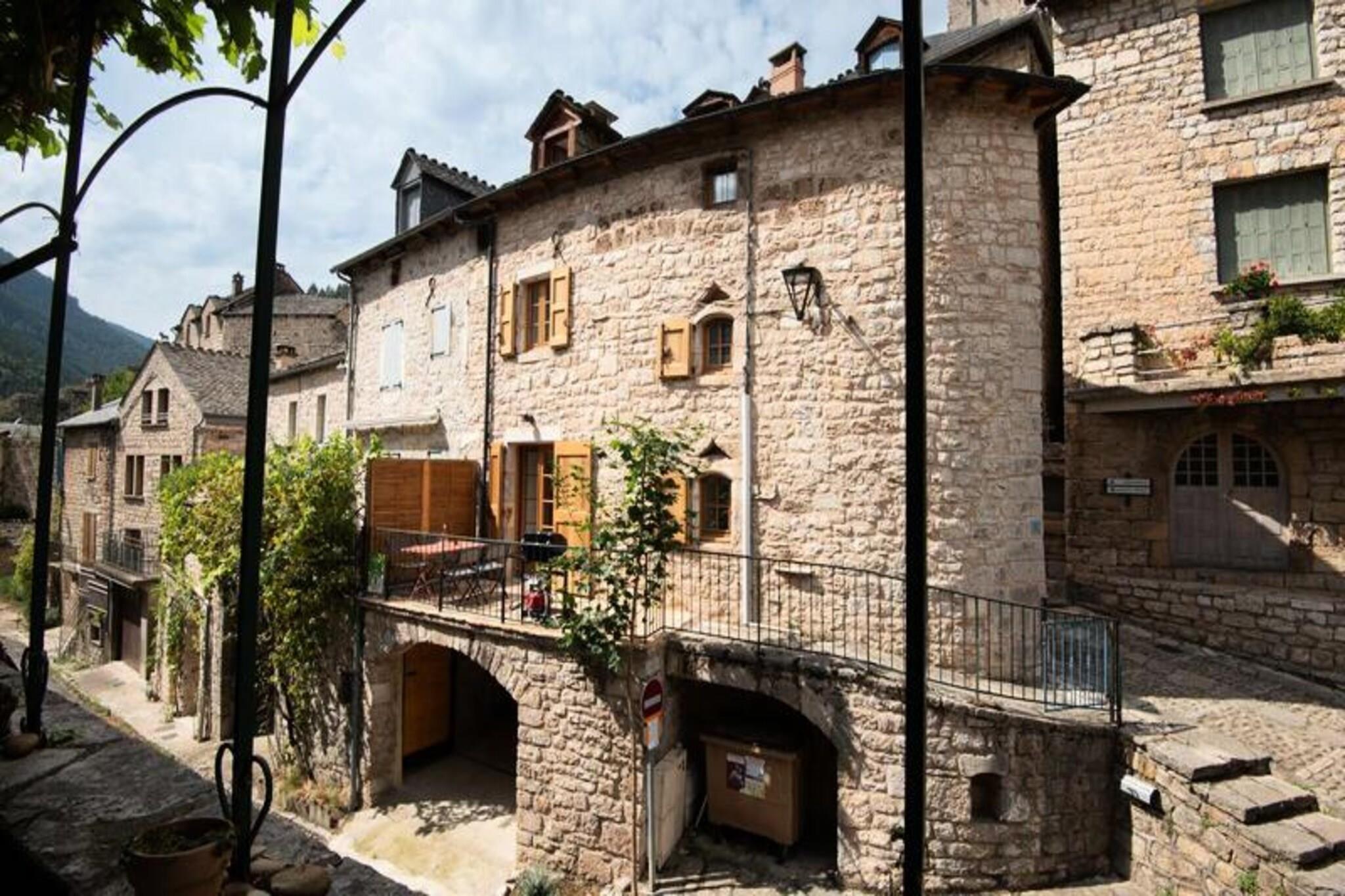 La Proue du Serre Gîte ligger i La Proue du Serre. i hjertet af Gorges du Tarn i den typiske landsby Sainte-Enimie, en charmerende fredet middelalderlandsby. blandt de smukkeste landsbyer i Frankrig. Du vil nyde at vandre i gaderne og opdage dens arv og historie. Du finder på 1. sal køkkenafdelingen (pillefyr) med adgang til køkkenet. terrassen. På 2. sal, loungeområdet med tv og en sofa. cabriolet, badeværelset med toilet. Og på 3. sal de to soveværelser med hver en 140*190 dobbeltseng. Prisen inkluderer: Varme, lagner, badeværelse og linned. Prisen inkluderer ikke: Slutrengøring (60 EURO). Depositum (i euro) - 400 Parkering - i nærheden Slutrengøring - ekstra Sengetøj - inkluderet Håndklæder - inkluderet