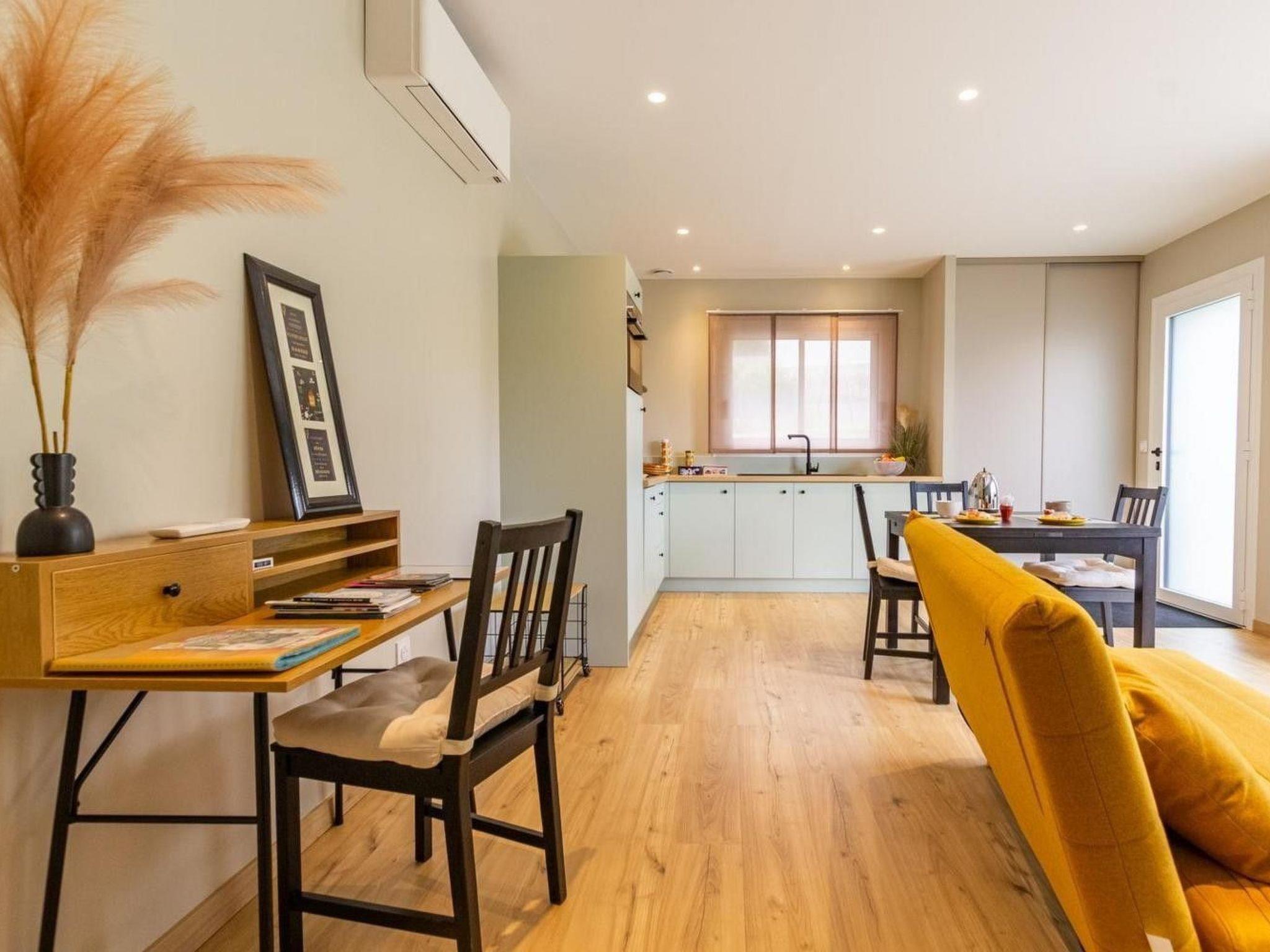 The kitchen is fully equipped with induction hob, pod coffee maker, toaster, mini-oven, microwave, electric kettle and dishwasher. There's also a raclette grill for the winter and a plancha grill for the summer.