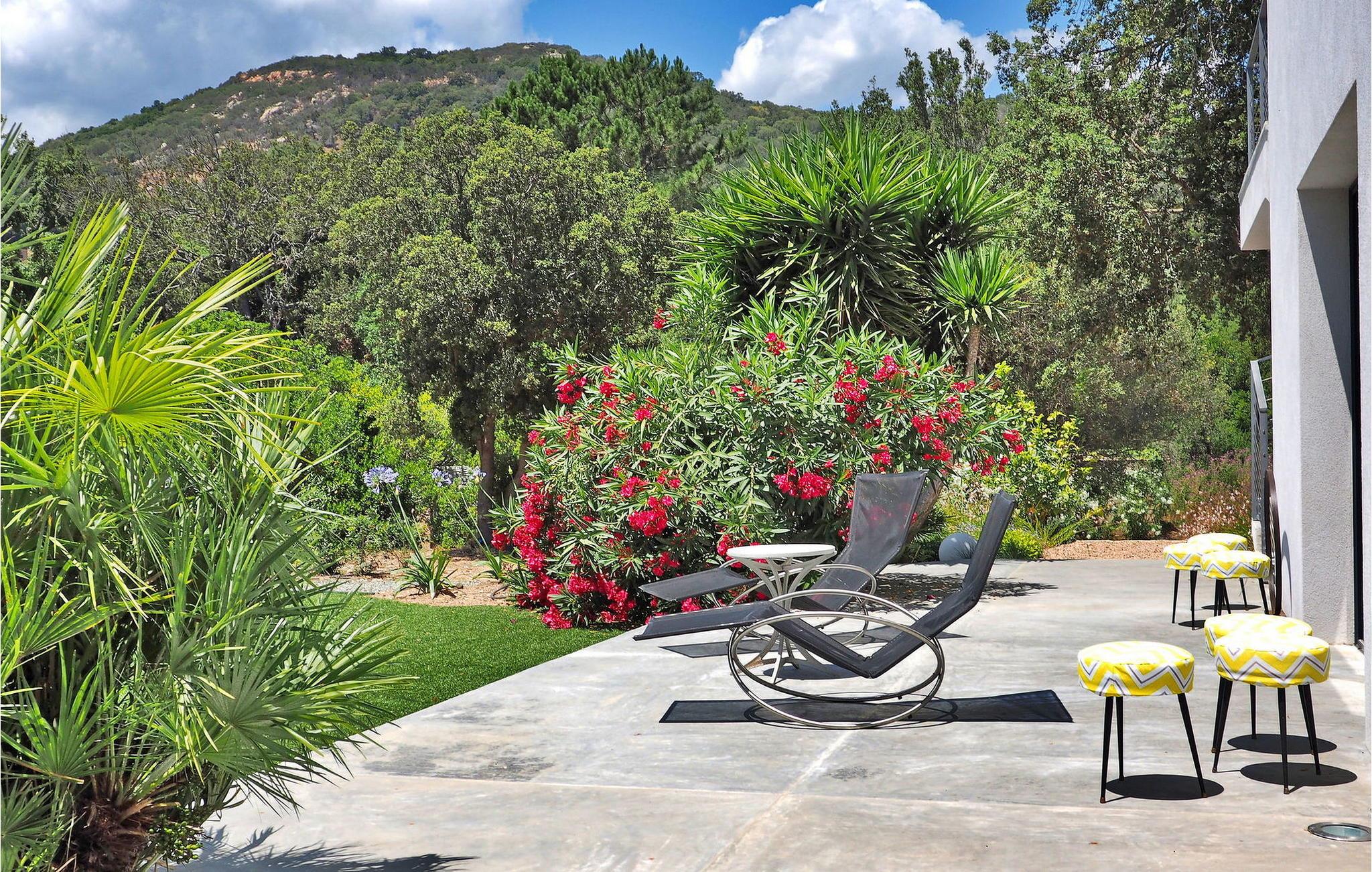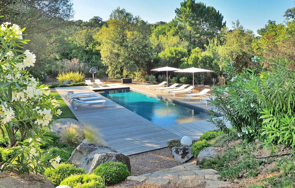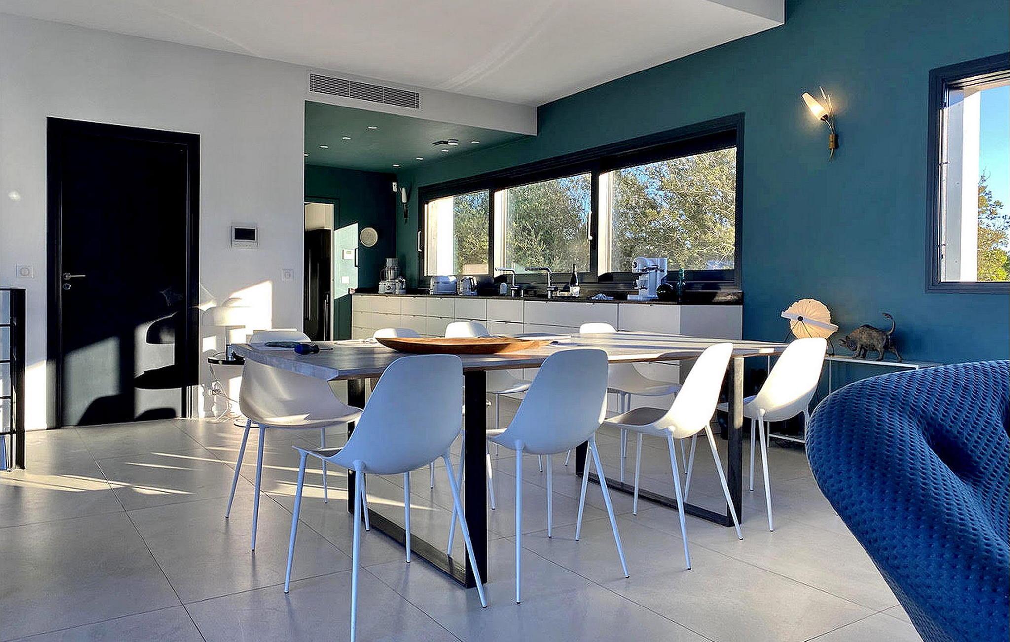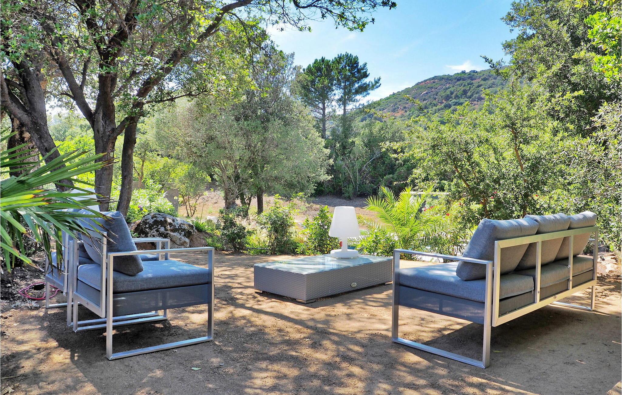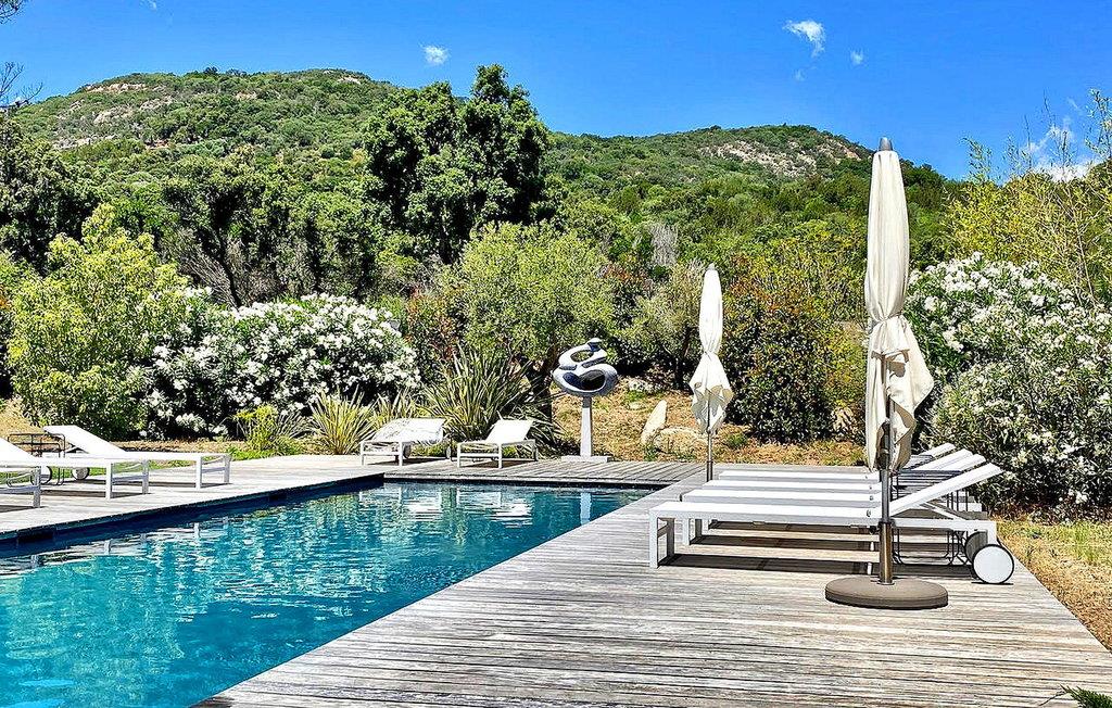 Denne moderne villa tilbyder en udsøgt ferieoplevelse. Det er fuldstændig renoveret og kunstnerisk designet af en indretningsarkitekt og ligger kun et stenkast fra den charmerende kystby Pinarello og dens maleriske strande. Beliggende midt i ro i en anlagt have, kan villaen prale af en betagende udsigt over havet, genuesiske tårne og et Natura 2000-beskyttet område foran Pinarello-strandene. På den anden side byder den på en fantastisk udsigt over bjergene. Pinarello-stranden, som er tilgængelig via en kort 20-minutters gåtur gennem en naturskøn sti, tilføjer et strejf af afslappet charme til dit ophold. Denne moderne bolig byder på en fusion af designermøbler og vintage-stile, kurateret omhyggeligt af ejeren, en indretningsarkitekt. Borde af massivt egetræ og stål, sofaborde i Arabescato-marmor, sideborde i Carrara-marmor og zimbabwiske sorte stenkonsoller er nogle af de udsøgte stykker, der pryder dette rum. Villaen er prydet med Ploum-sofaer af E og R Bouroullec, Opinion Ciatti-stole, Eames-stole, Paulin, vaskede linnedgardiner og linnedsengetæpper. Villaens stueetage strækker sig over to niveauer og rummer fire soveværelser, hver med ekspansive karnapper, der fører til terrasser. Det øverste niveau har et master bedroom med en spektakulær havudsigt og et ensuite brusebadeværelse. Stuen på første sal byder på ærefrygtindgydende udsigter fra sin store terrasse. Det veludstyrede køkken med hårde hvidevarer af høj kvalitet støder op til et sommerkøkken designet til al fresco spiseoplevelser. Udenfor er en privat opvarmet pool (14 mx 4 m) suppleret med et vadeområde for små børn. Den smukt anlagte have, sammen med flere liggestole og havemøbler, giver idylliske rum til at slappe af. Villaen ligger kun få skridt væk fra kystbyen Pinarello og dens smukke strande, klassificeret som en af de 20 bedste strande i verden. Villaen er omgivet af natur, meget rolige og fredelige omgivelser, omkring ti minutters kørsel fra Sainte-Lucie-de-Porto-Vecchio og dens butikker. I den lille havn Pinarello er der forskellige restauranter og et bageri.