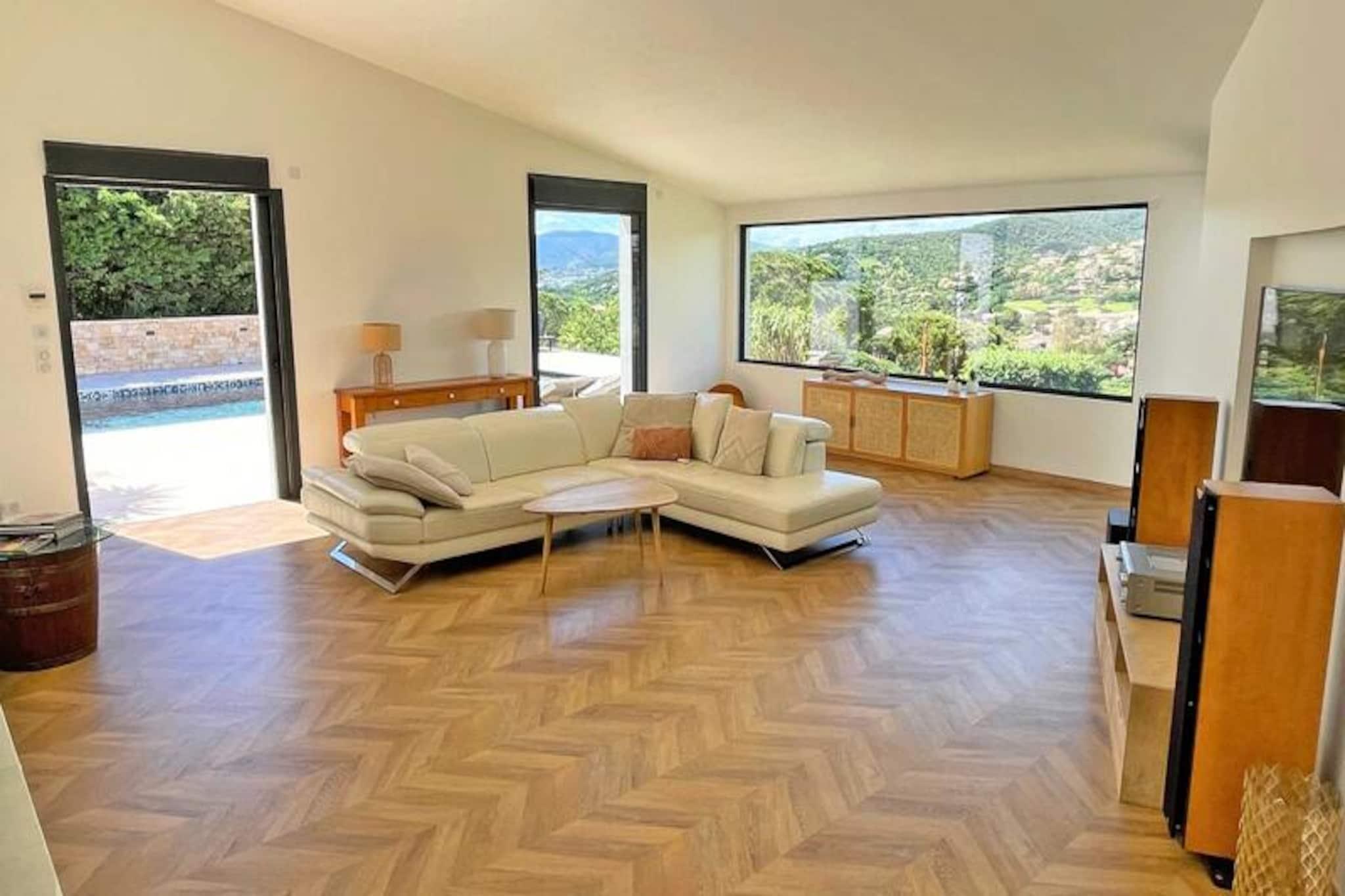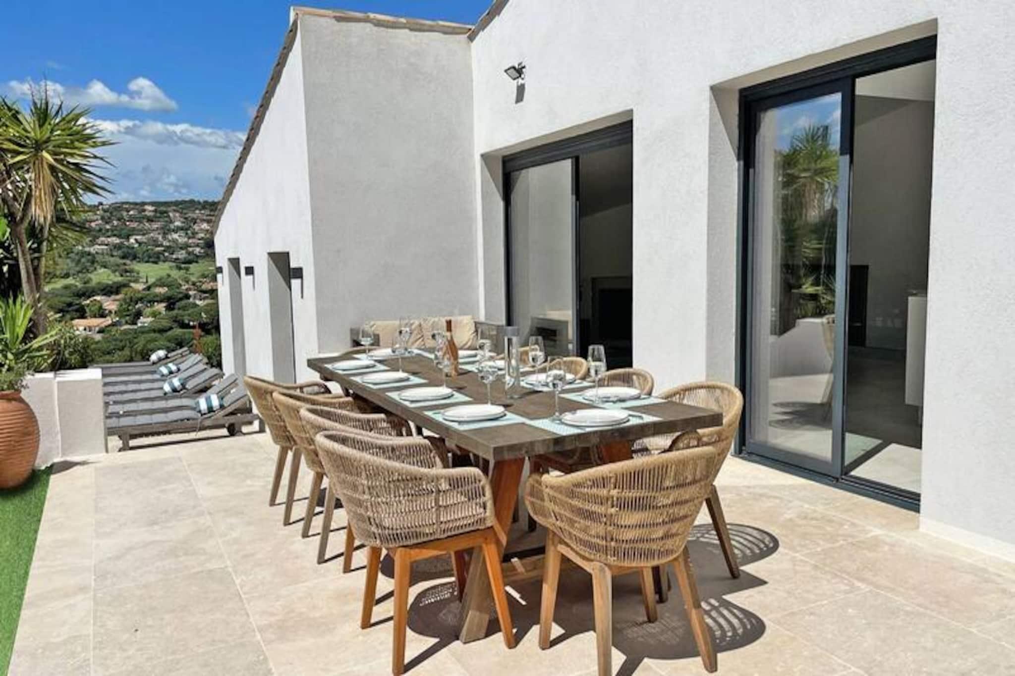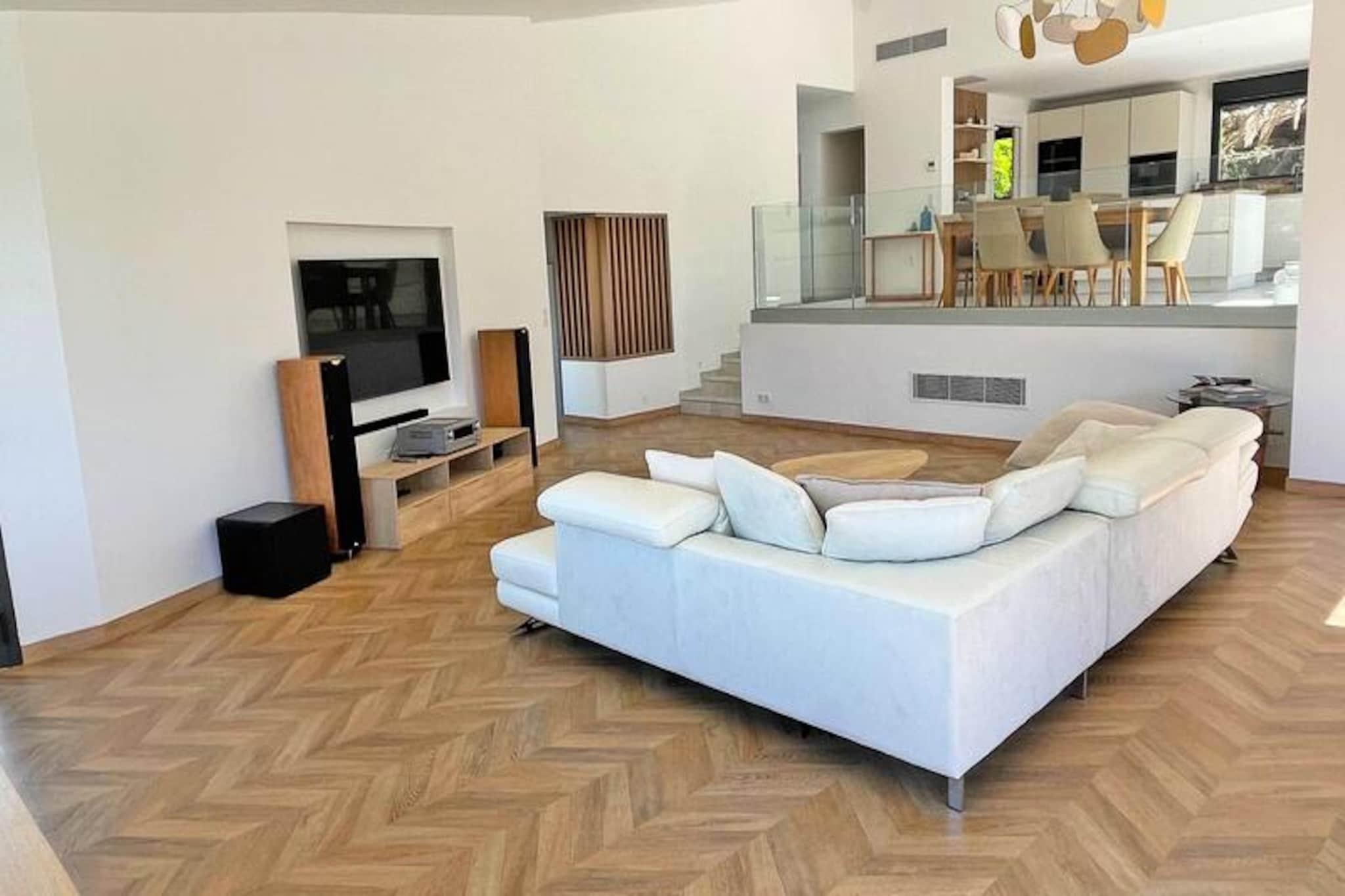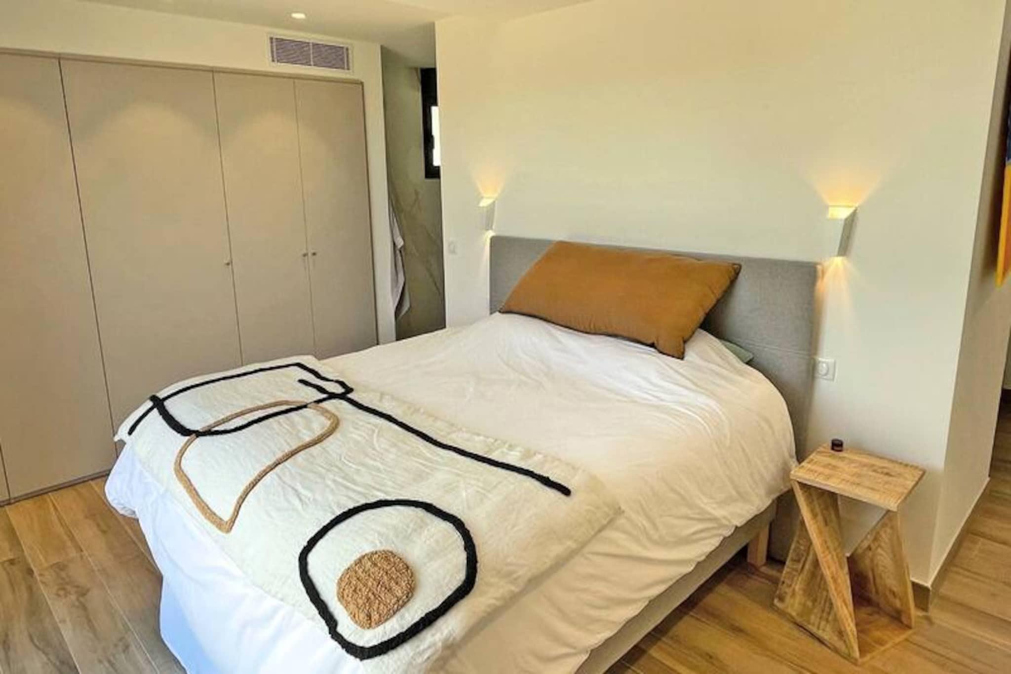 Denne fantastiske 6-værelses villa, beliggende på en lukket 1760m² grund, tilbyder et luksuriøst ophold for op til 10 gæster. Den rummelige stue er opdelt i tre områder: en komfortabel lounge med et storskærms-tv og hjemmebiograf, en spiseplads og et moderne amerikansk køkken fuldt udstyret med køleskab, fryser, semi-professionel gaskomfur, ovn, mikroovn, opvaskemaskine og Nespresso kaffemaskine. Stueetagen indeholder også et vaskerum med vaskemaskine og tørretumbler samt separat toilet. Mastersuiten på det nederste niveau har en kingsize seng, en-suite badeværelse med bruseniche, badekar og dobbelt håndvask og direkte adgang til terrasserne. Ovenpå tilbyder to soveværelser med aircondition hver en dobbeltseng og en-suite badeværelser - det ene med brusekabine og det andet med badekar. For ekstra privatliv omfatter villaen en selvstændig lejlighed med et fjerde soveværelse med aircondition, en separat stue med en sovesofa, et badeværelse med bruser og et lille tekøkken med mikrobølgeovn og kaffemaskine. Dette gør det til et ideelt valg for familier eller grupper, der leder efter både samvær og privatliv. Udenfor kan villaen prale af smukke terrasser med spiseplads, afslapningssteder og en privat 5x10m swimmingpool, som kan opvarmes mod et ekstra gebyr. Haven har liggestole, parasoller og en gasgrill, hvilket skaber et perfekt sted til udendørs spisning og afslapning. Villaen tilbyder også aircondition overalt, Wi-Fi, et bordtennisbord og parkering til to køretøjer sikret af en elektrisk port. Kæledyr er velkomne efter anmodning mod et mindre tillægsgebyr.