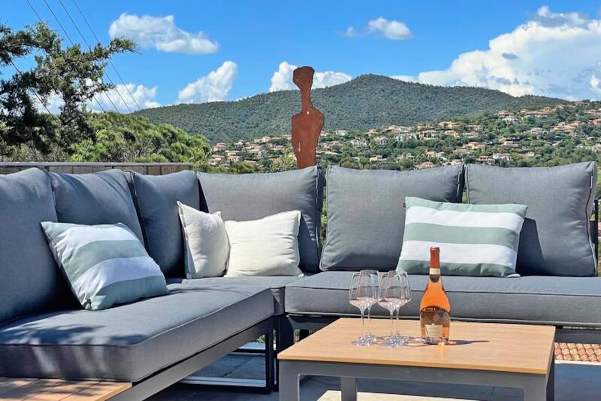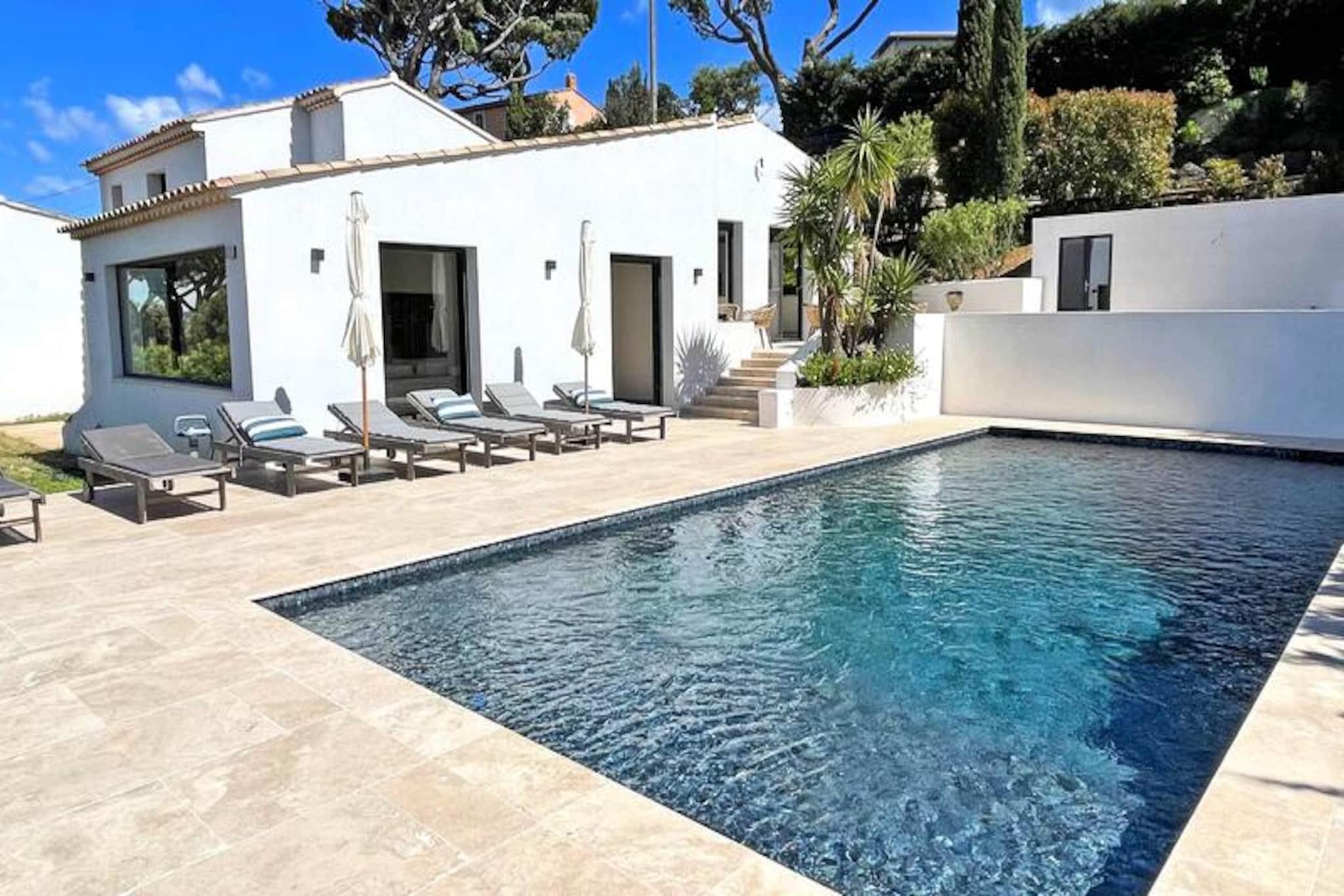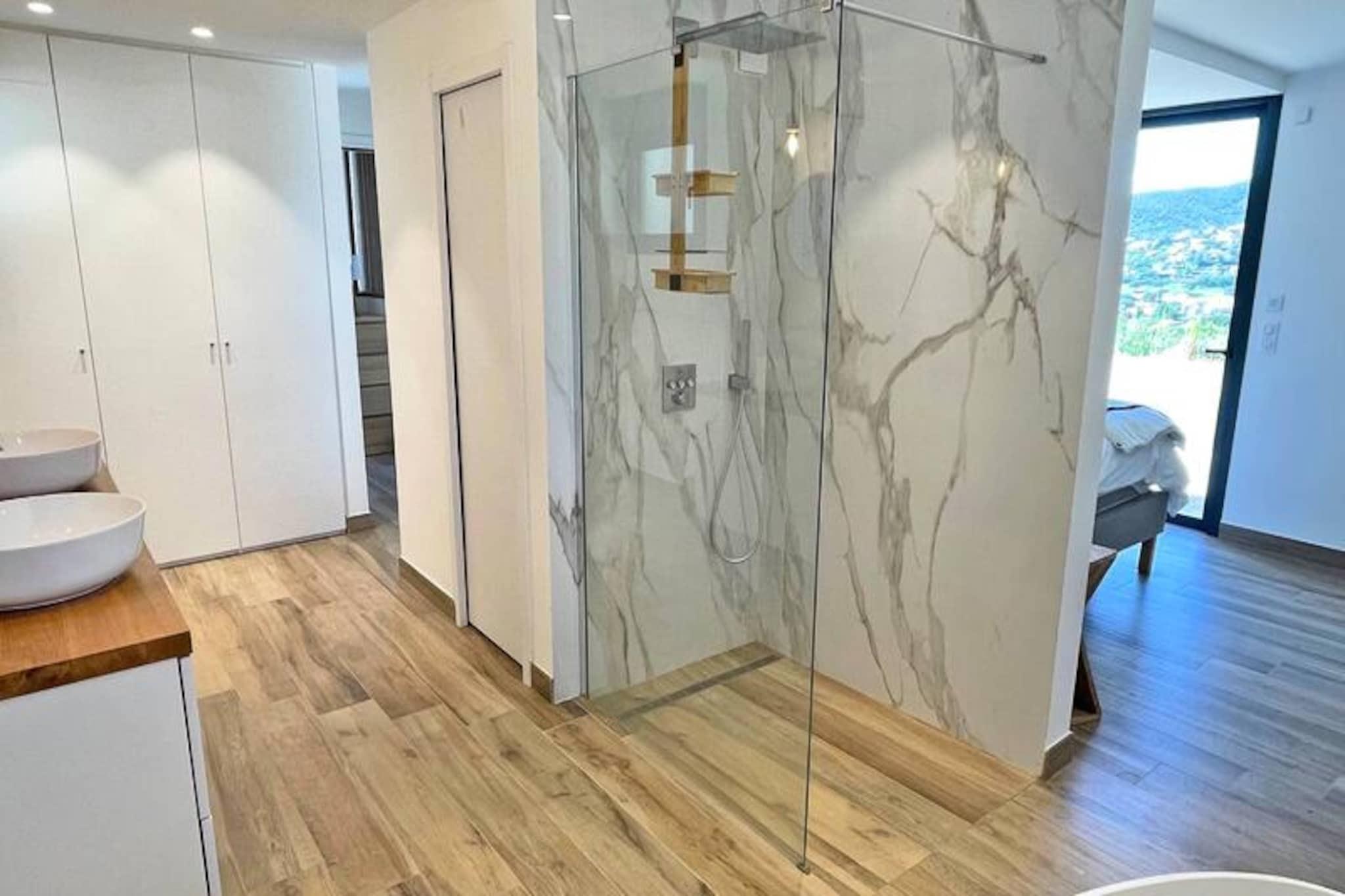 Denne fantastiske 6-værelses villa, beliggende på en lukket 1760m² grund, tilbyder et luksuriøst ophold for op til 10 gæster. Den rummelige stue er opdelt i tre områder: en komfortabel lounge med et storskærms-tv og hjemmebiograf, en spiseplads og et moderne amerikansk køkken fuldt udstyret med køleskab, fryser, semi-professionel gaskomfur, ovn, mikroovn, opvaskemaskine og Nespresso kaffemaskine. Stueetagen indeholder også et vaskerum med vaskemaskine og tørretumbler samt separat toilet. Mastersuiten på det nederste niveau har en kingsize seng, en-suite badeværelse med bruseniche, badekar og dobbelt håndvask og direkte adgang til terrasserne. Ovenpå tilbyder to soveværelser med aircondition hver en dobbeltseng og en-suite badeværelser - det ene med brusekabine og det andet med badekar. For ekstra privatliv omfatter villaen en selvstændig lejlighed med et fjerde soveværelse med aircondition, en separat stue med en sovesofa, et badeværelse med bruser og et lille tekøkken med mikrobølgeovn og kaffemaskine. Dette gør det til et ideelt valg for familier eller grupper, der leder efter både samvær og privatliv. Udenfor kan villaen prale af smukke terrasser med spiseplads, afslapningssteder og en privat 5x10m swimmingpool, som kan opvarmes mod et ekstra gebyr. Haven har liggestole, parasoller og en gasgrill, hvilket skaber et perfekt sted til udendørs spisning og afslapning. Villaen tilbyder også aircondition overalt, Wi-Fi, et bordtennisbord og parkering til to køretøjer sikret af en elektrisk port. Kæledyr er velkomne efter anmodning mod et mindre tillægsgebyr.
