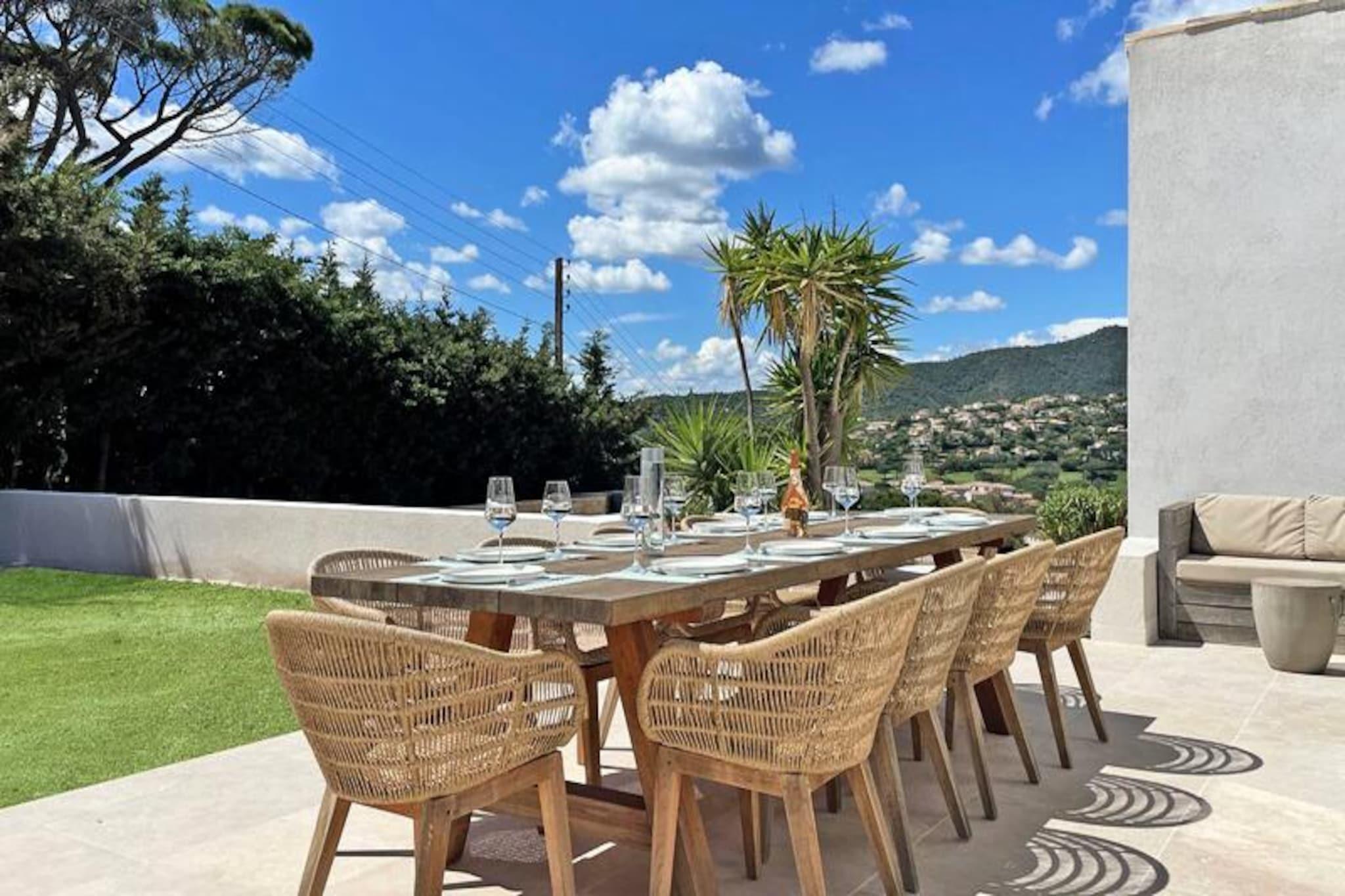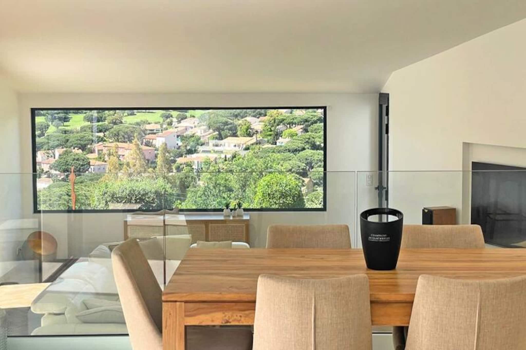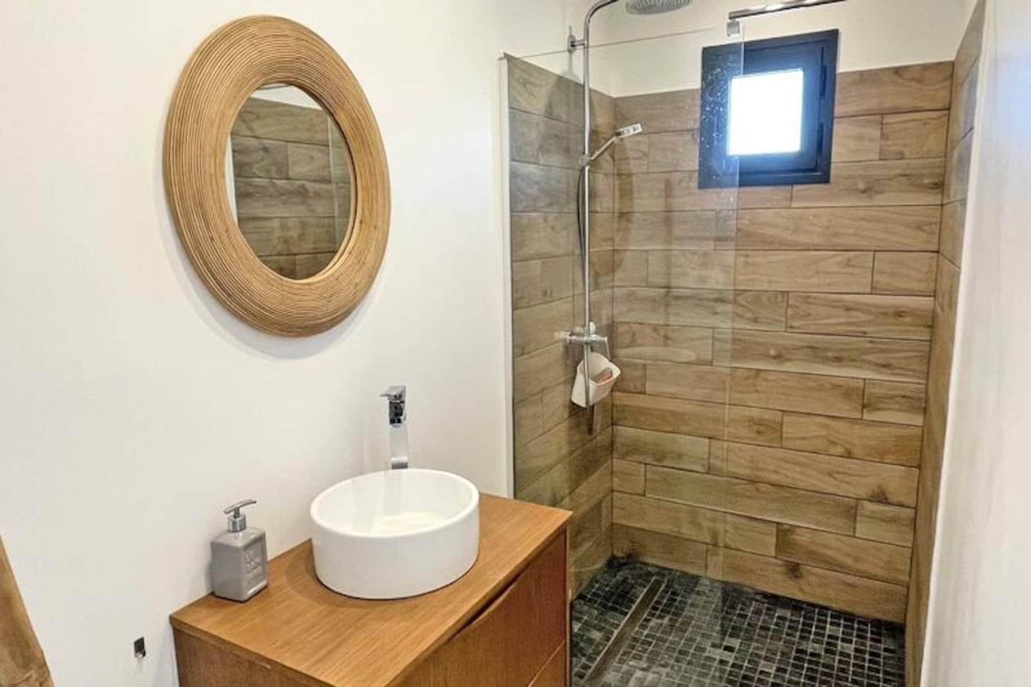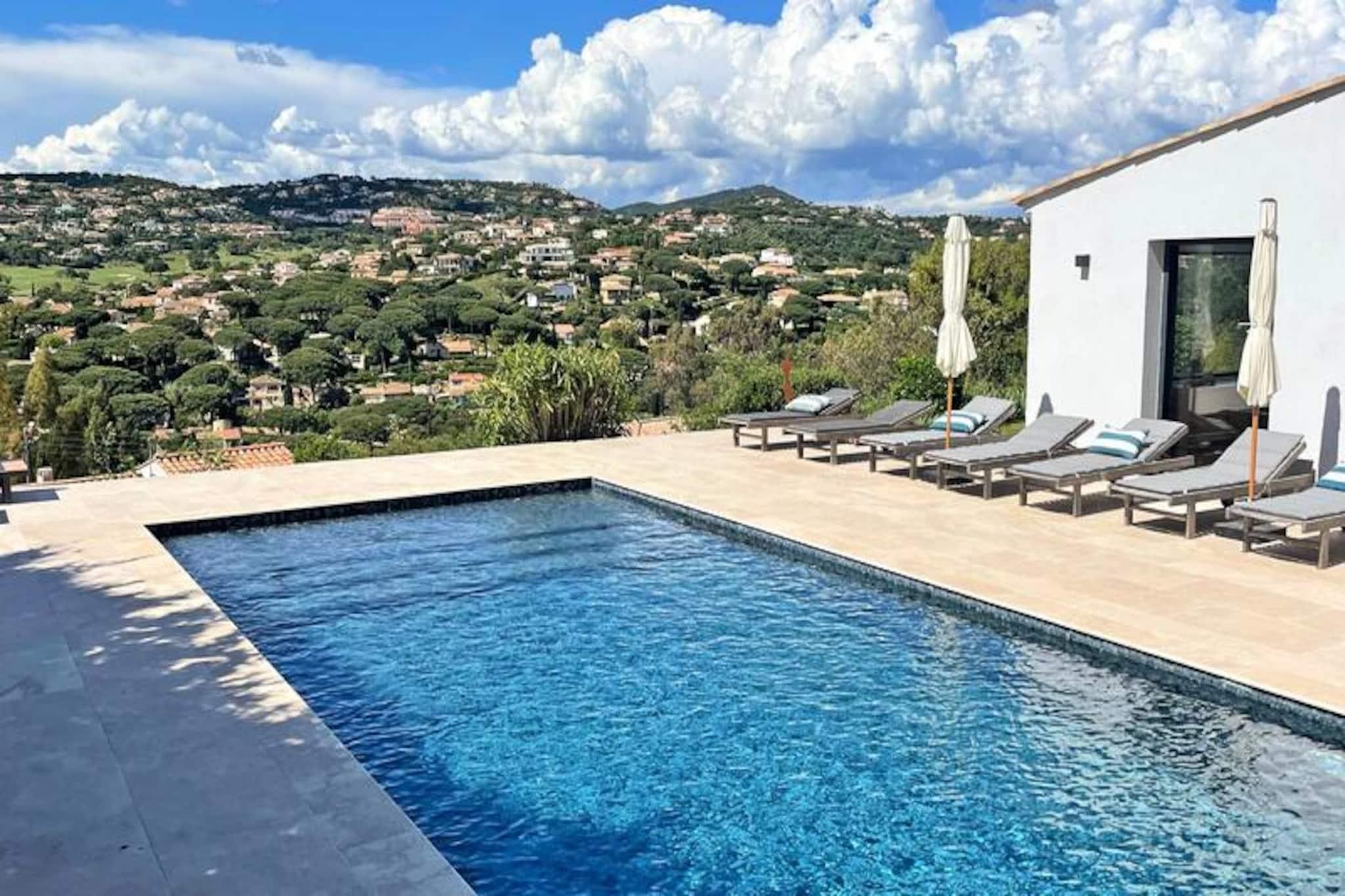 Denne fantastiske 6-værelses villa, beliggende på en lukket 1760m² grund, tilbyder et luksuriøst ophold for op til 10 gæster. Den rummelige stue er opdelt i tre områder: en komfortabel lounge med et storskærms-tv og hjemmebiograf, en spiseplads og et moderne amerikansk køkken fuldt udstyret med køleskab, fryser, semi-professionel gaskomfur, ovn, mikroovn, opvaskemaskine og Nespresso kaffemaskine. Stueetagen indeholder også et vaskerum med vaskemaskine og tørretumbler samt separat toilet. Mastersuiten på det nederste niveau har en kingsize seng, en-suite badeværelse med bruseniche, badekar og dobbelt håndvask og direkte adgang til terrasserne. Ovenpå tilbyder to soveværelser med aircondition hver en dobbeltseng og en-suite badeværelser - det ene med brusekabine og det andet med badekar. For ekstra privatliv omfatter villaen en selvstændig lejlighed med et fjerde soveværelse med aircondition, en separat stue med en sovesofa, et badeværelse med bruser og et lille tekøkken med mikrobølgeovn og kaffemaskine. Dette gør det til et ideelt valg for familier eller grupper, der leder efter både samvær og privatliv. Udenfor kan villaen prale af smukke terrasser med spiseplads, afslapningssteder og en privat 5x10m swimmingpool, som kan opvarmes mod et ekstra gebyr. Haven har liggestole, parasoller og en gasgrill, hvilket skaber et perfekt sted til udendørs spisning og afslapning. Villaen tilbyder også aircondition overalt, Wi-Fi, et bordtennisbord og parkering til to køretøjer sikret af en elektrisk port. Kæledyr er velkomne efter anmodning mod et mindre tillægsgebyr.