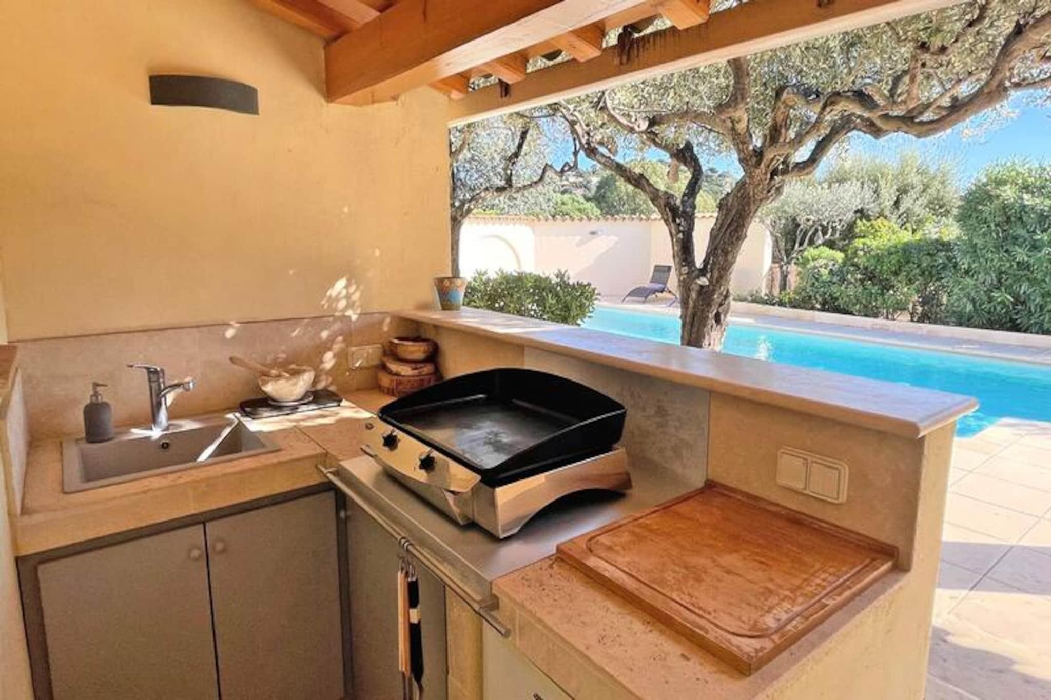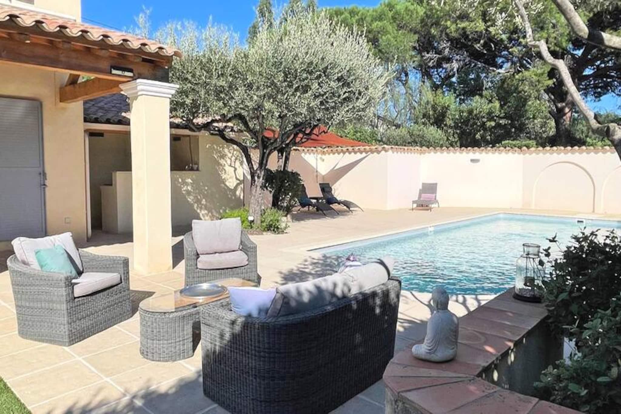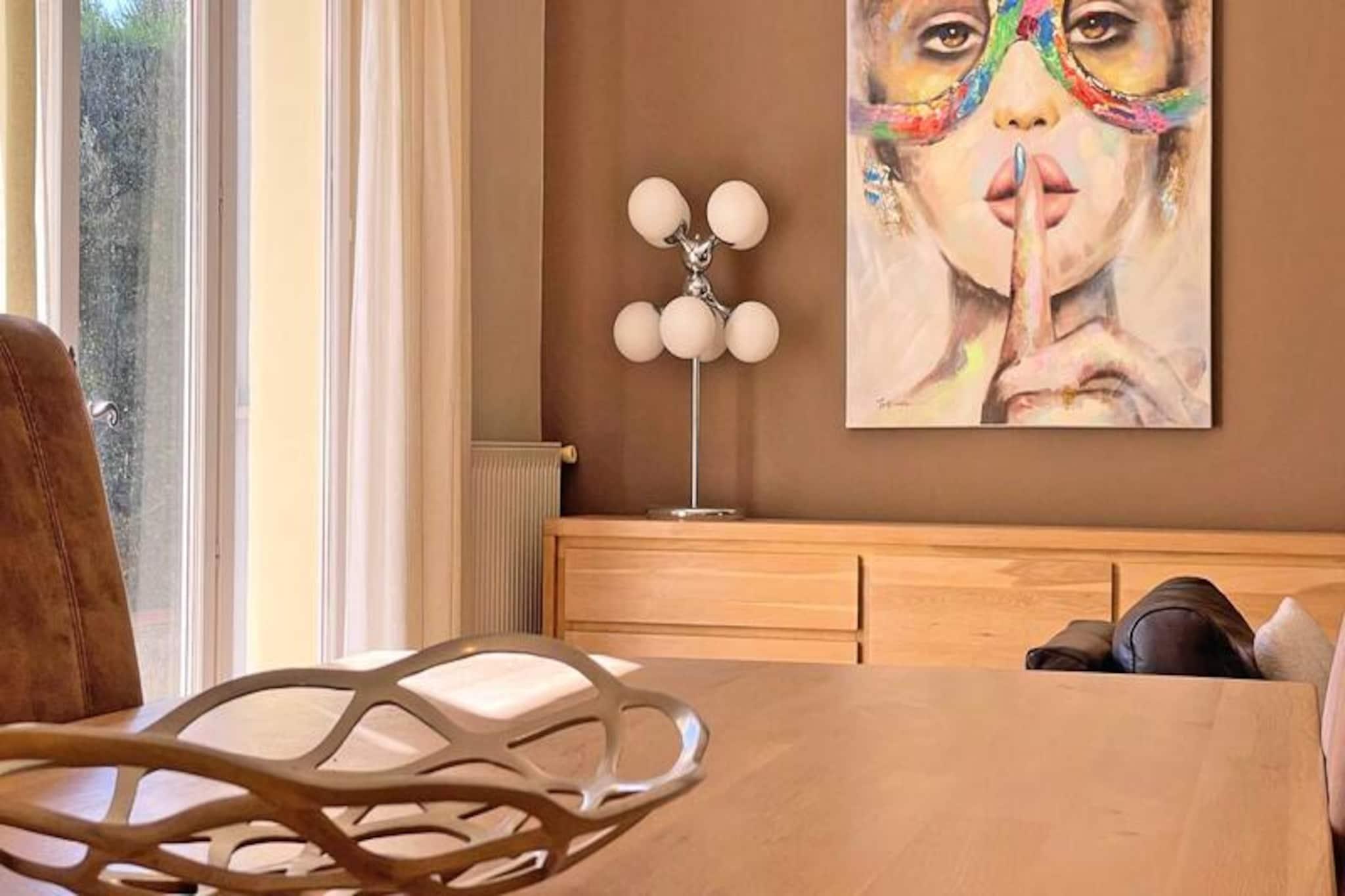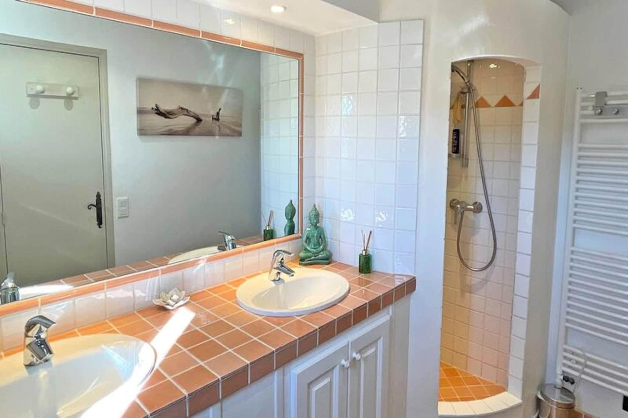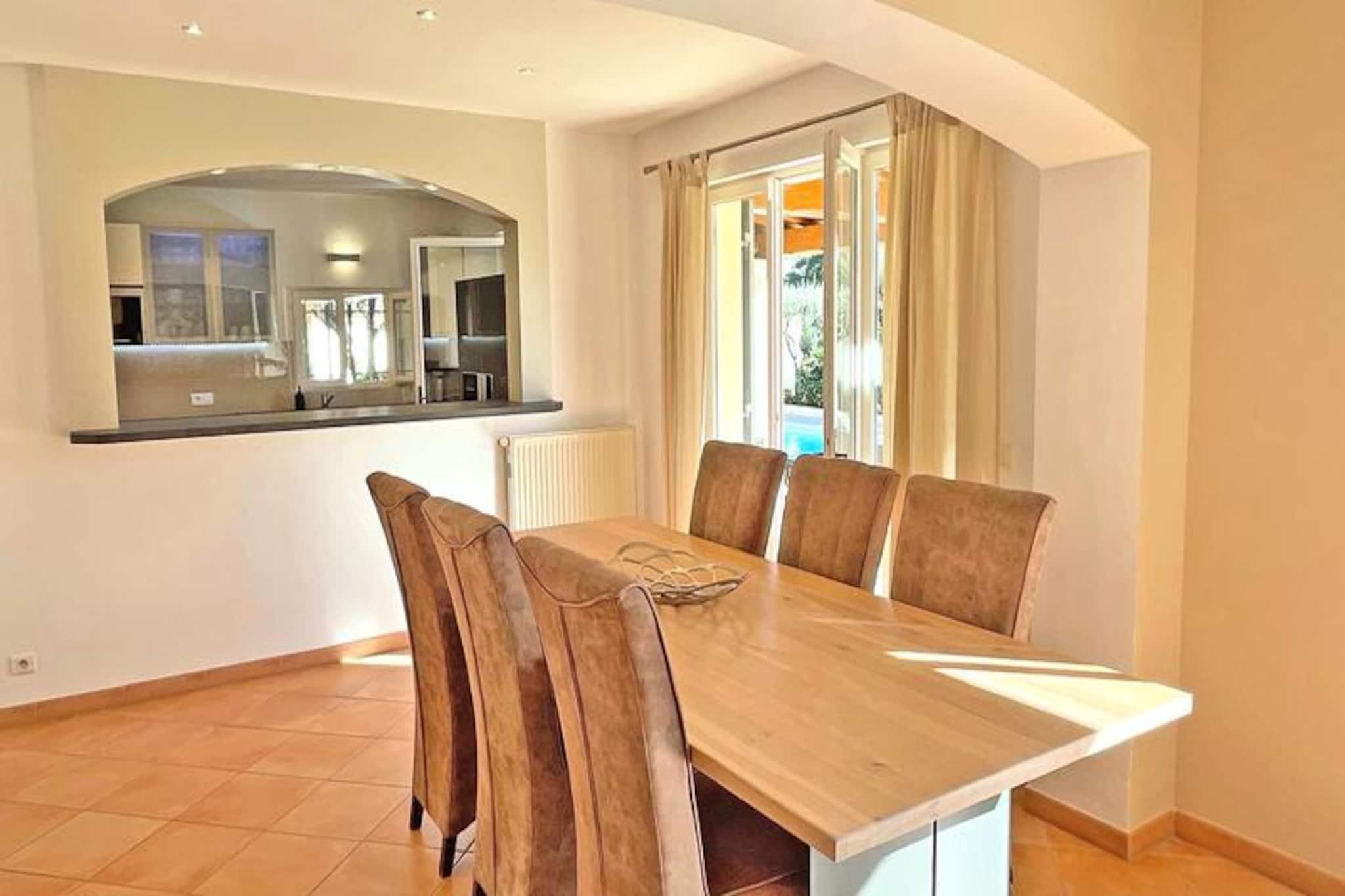 Denne fantastiske 5-værelses villa er fordelt på to etager og tilbyder luksuriøse faciliteter for op til 8 gæster. Det har 4 værelser med aircondition, hvilket sikrer et behageligt ophold. Den rummelige stue åbner ud til det fri, med separate områder til spisning og afslapning, komplet med en hyggelig pejs og fladskærms-tv. Det fuldt udstyrede køkken omfatter køleskab, fryser, induktionskomfur, ovn, mikroovn, Nespresso-kaffemaskine og et udvalg af retter, ideelt til at tilberede måltider under dit ophold. Til ejendommen hører desuden vaskerum og separat toilet. Denne villa ligger i et fredeligt boligområde kun 1,6 km fra byens centrum og 2 km fra stranden, med butikker kun 1,5 km væk. Gæster kan nyde roen i omgivelserne, mens de stadig er tæt på alle lokale faciliteter. Udendørsrummene er lige så imponerende med en stor overdækket terrasse, et udendørs køkken med plancha og køleskab og en privat swimmingpool (5x10m). Ejendommen tilbyder også en boulodrome, udendørs bruser og toilet, hvilket gør den perfekt til afslapning og underholdning. Yderligere højdepunkter inkluderer rigelig parkeringsplads til op til 6 køretøjer, sikret af en elektrisk port. Villaen er fuldt udstyret med WiFi og aircondition i alle værelser, hvilket sikrer komfort overalt. Kæledyr er ikke tilladt, hvilket bevarer et roligt og fredeligt miljø for alle gæster. Ideel til familier eller grupper, denne villa tilbyder alt hvad du behøver for en uforglemmelig ferie.