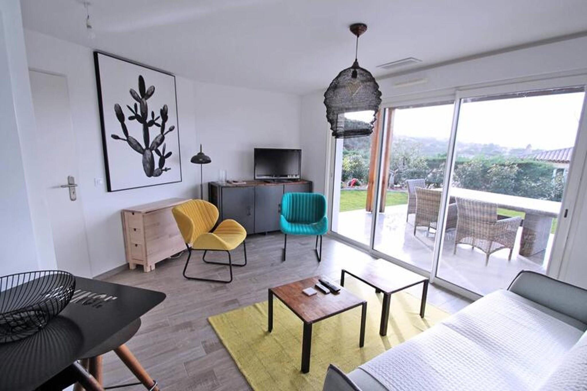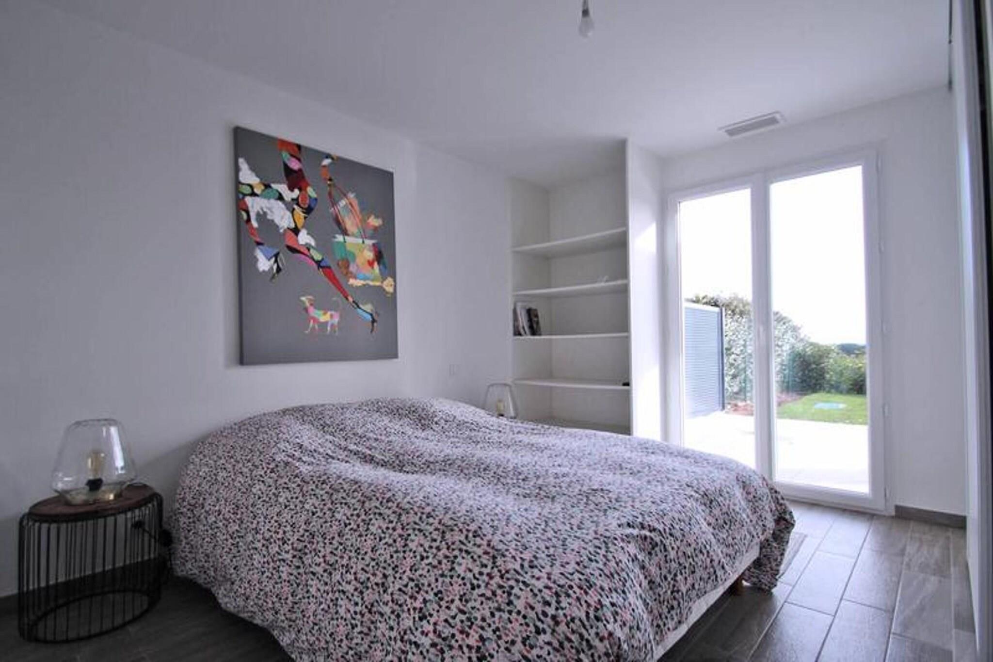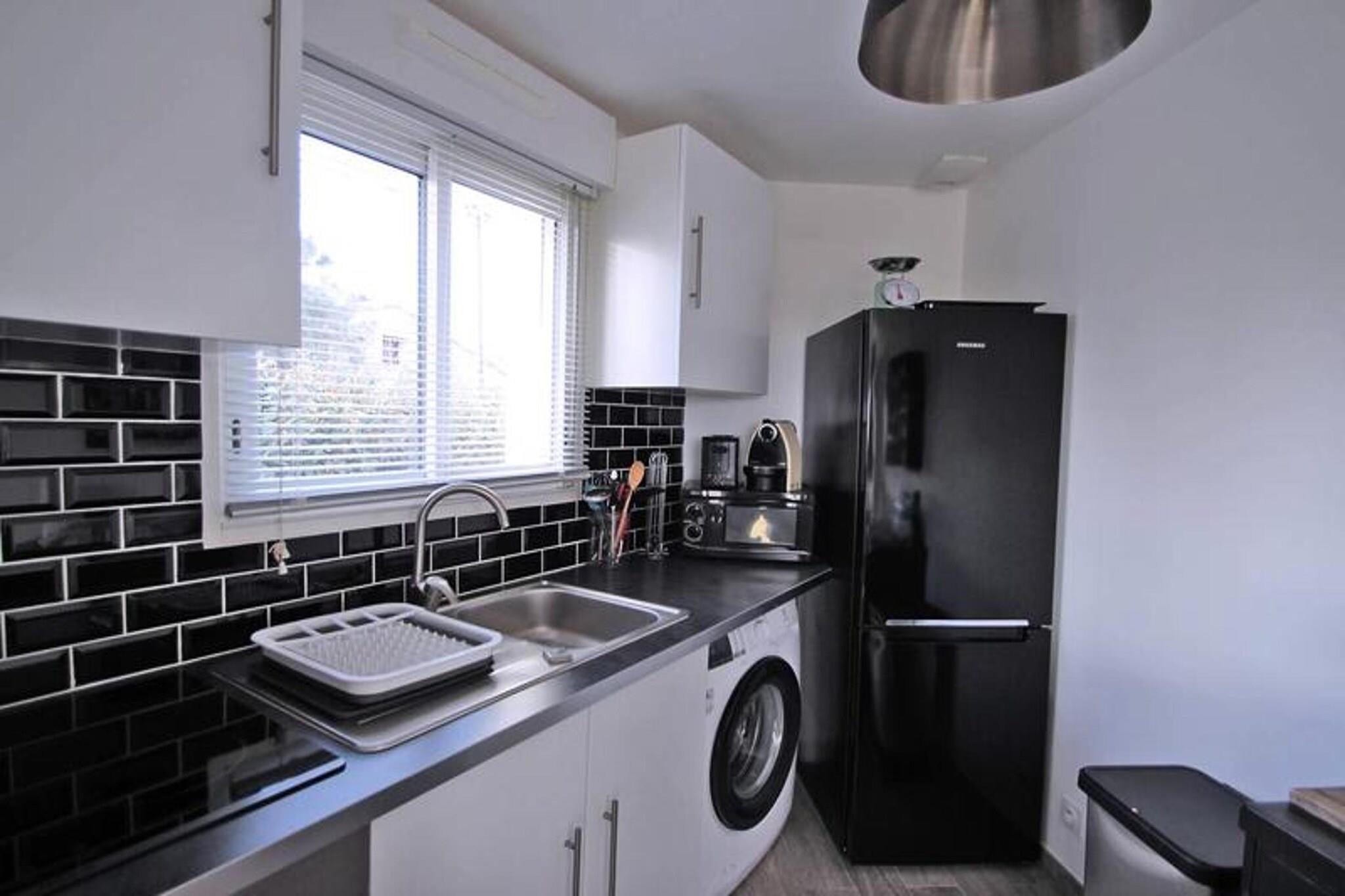 Denne charmerende 2-værelses lejlighed, beliggende i stueetagen, tilbyder et fredfyldt tilflugtssted for op til 4 gæster. Lejligheden har en smuk stue med aircondition, en rummelig sovesofa, et fladskærms-tv og en spiseplads. Det åbne køkken er fuldt udstyret med moderne faciliteter såsom en 4-brænder kogeplade, mikroovn, ovn, køleskab, fryser, vaskemaskine og kaffemaskine, perfekt til at tilberede dine yndlingsmåltider. Soveværelset med aircondition har en 140 cm seng, et påklædningsværelse og adgang til den private terrasse. Badeværelset indeholder brusekabine, vaskeskab og opbevaringsplads, suppleret med et separat toilet. Ideel til et roligt tilflugtssted, er denne lejlighed beliggende i en fredelig bolig med en privat have og havudsigt. Gæsterne kan nyde den smukke udendørs terrasse med spisemøbler og en markise, mens de også drager fordel af de fælles faciliteter, herunder en swimmingpool (lukket fra oktober til maj) og en petanquebane. Boligen er også udstyret med underjordisk parkering og en privat plads til cykler eller tohjulede køretøjer, alt tilgængeligt med elevator. Lejligheden er fuldt udstyret med WiFi og aircondition, hvilket sikrer komfort under hele dit ophold. Beliggende kun 1,8 km fra byens centrum og stranden, med butikker kun 800 m væk, tilbyder lejligheden nem adgang til lokale faciliteter. Derudover er ejendommen tilgængelig for personer med nedsat mobilitet, hvilket sikrer et bekvemt og behageligt ophold for alle. Med sin fremragende beliggenhed, fredfyldte atmosfære og moderne bekvemmeligheder er denne lejlighed perfekt til en fredelig ferie.
