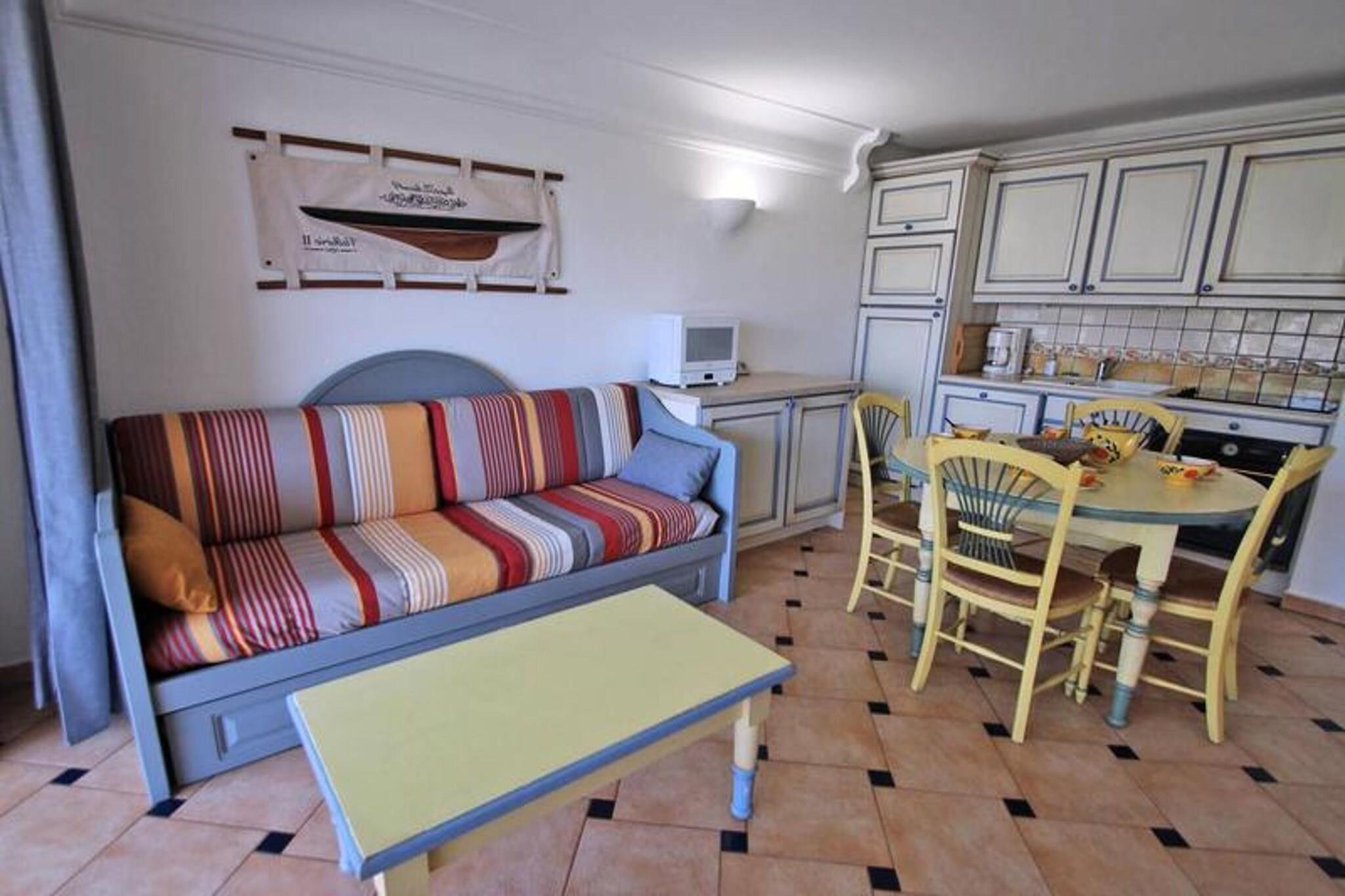 Denne 40 m² store 3-værelses lejlighed med en alkove ligger på 3. sal i Résidence Port Marine og tilbyder et behageligt ophold for op til 5 gæster. Stuen er møbleret med en sofa, der kan omdannes til to udtrækssenge på 80 cm, et fladskærms-tv, en værdiboks og en spiseplads. Det veludstyrede amerikanske køkken har en 4-brænder kogeplade, ovn, køleskab/fryser, opvaskemaskine, mikroovn, brødrister og kaffemaskine. Det store soveværelse byder på en dobbeltseng (160cm eller 2x80cm) og opbevaring, mens det andet soveværelse, som er placeret i en alkove, har køjesenge (2x80cm) og ekstra skabsplads. Lejligheden har også et badeværelse med badekar, vaskemaskine og vaskeskab. Denne bolig er ideelt beliggende for nem adgang til lokale attraktioner, med byens centrum kun 400 meter væk og stranden kun 300 meter fra ejendommen. Butikker er blot 100 meter væk, hvilket giver bekvemmelighed til daglige behov. Gæsterne kan nyde en 14 m² stor terrasse med udendørsmøbler, som tilbyder en fredelig udsigt over floden. Boligen kan også prale af en swimmingpool, tilgængelig fra maj til oktober, og en privat underjordisk parkeringsplads (maks. højde 185 cm) til gæsternes brug. Yderligere faciliteter inkluderer aircondition, lomme-Wi-Fi og en fredelig atmosfære. Kæledyr er ikke tilladt. Lejligheden er perfekt til familier eller små grupper, der søger en veludstyret og bekvem beliggenhed nær Sainte-Maximes vigtigste attraktioner.