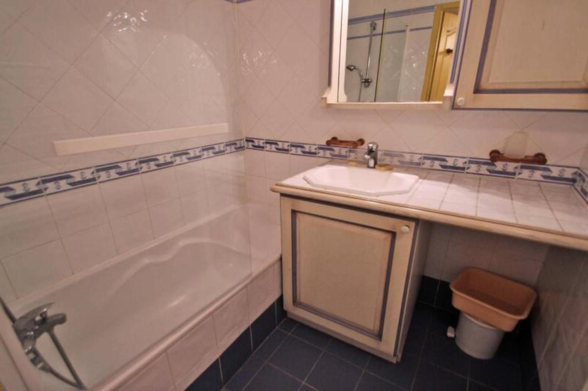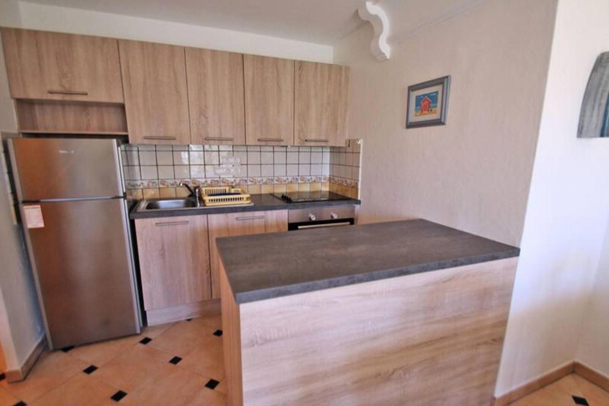 Denne charmerende 32 m² store 2-værelses lejlighed er ideel til en lille familie eller et par, der komfortabelt kan rumme op til 4 personer. Lejligheden er designet i en dejlig provencalsk stil og tilbyder en afslappende atmosfære med en hyggelig, airconditioneret stue med en udtrækssovesofa (2x80), fladskærms-tv og en spiseplads. Det amerikanske køkken er fuldt udstyret med moderne bekvemmeligheder, herunder en 4-brænder kogeplade, ovn, køleskab/fryser, opvaskemaskine og kaffemaskine. Soveværelset med aircondition, med enten 2x80 cm eller en 160 cm seng, byder på rigelig opbevaringsplads med skabe. Ejendommen har en perfekt beliggenhed, kun 400 meter fra byens centrum, 300 meter fra stranden og 100 meter fra butikker, hvilket giver bekvemmelighed og nem adgang til lokale attraktioner. Boligen er omgivet af haver, og fra terrassen kan gæsterne nyde en behagelig udsigt over "Préconil"-floden, hvilket gør det til et ideelt sted for udendørs afslapning. Den fælles swimmingpool er tilgængelig fra maj til oktober, som gæsterne kan nyde. Yderligere faciliteter inkluderer en privat underjordisk parkeringsplads, Wi-Fi og aircondition overalt. Badeværelset har badekar, vaskeskab og håndklædetørrer, mens det separate toilet tilbyder ekstra privatliv. Gæster vil også sætte pris på de tankevækkende detaljer som engangsmadrasbeskyttere, køkkenruller og et badeværelsestæppe, alt inkluderet for at øge komforten under deres ophold.