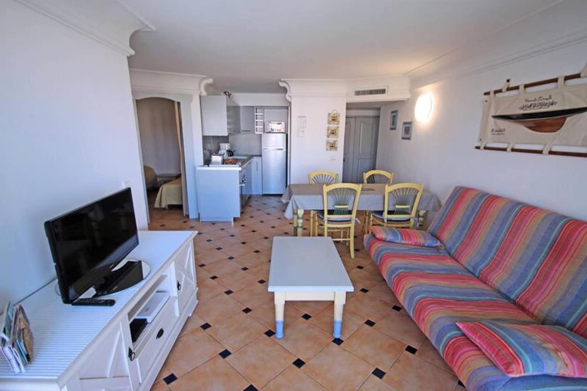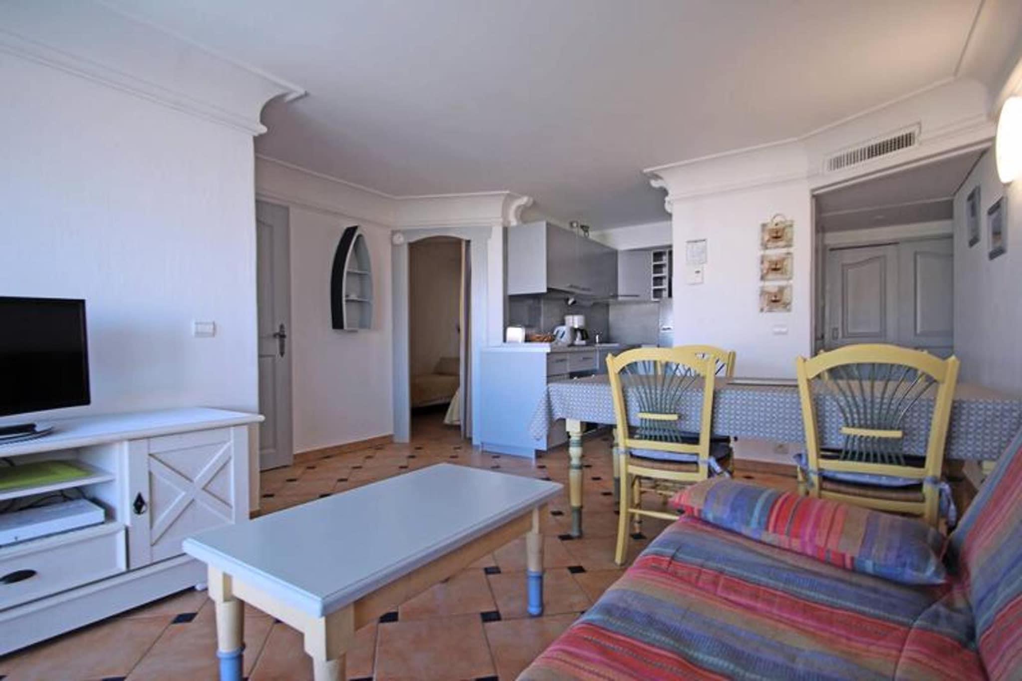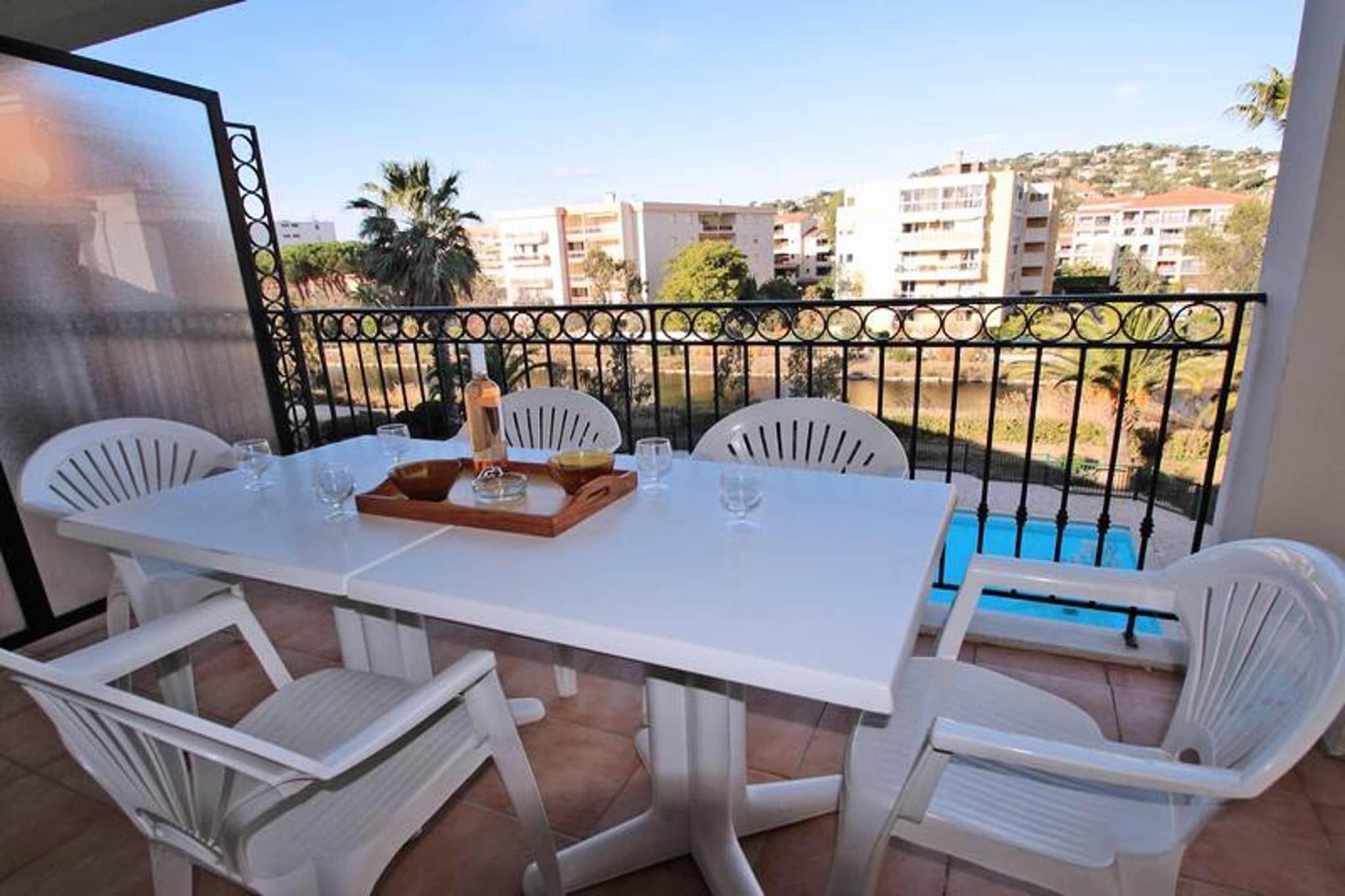 Denne rummelige 47 m² store 2-værelses lejlighed med en alkove, beliggende på 3. sal i Port Marine-residensen, er ideel til familier eller små grupper med plads til op til 5 personer. Det er for nylig renoveret og har en stue med aircondition, en 140 cm sovesofa, et fladskærms-tv og en spiseplads. Lejligheden åbner ud til en dejlig terrasse med udsigt over swimmingpoolen og "Préconil" floden. Det fuldt udstyrede amerikanske køkken omfatter moderne apparater såsom en 4-brænder kogeplade, ovn, køleskab/fryser, opvaskemaskine, mikroovn, brødrister, kaffemaskine og elkedel. Bekvemt beliggende kun 500 meter fra byens centrum og 350 meter fra stranden, tilbyder lejligheden nem adgang til butikker, restauranter og lokale attraktioner. Boligens beliggenhed nær poolen sikrer et afslappende ophold med en behagelig udsigt over det omkringliggende område. Lejligheden har aircondition overalt, og begge soveværelser er udstyret med opbevaringsplads og komfortabelt sengetøj. Det andet soveværelse tilbyder også et pengeskab for ekstra sikkerhed. Ud over de komfortable opholdsrum indeholder lejligheden et velindrettet badeværelse med badekar og vaskeskab samt separat toilet. En privat underjordisk parkeringsplads er til rådighed, samt Wi-Fi for din bekvemmelighed. Gæsterne vil nyde den fælles swimmingpool, der er tilgængelig fra maj til oktober. Boligen har strenge interne regler, herunder ingen fester eller rygning indenfor.