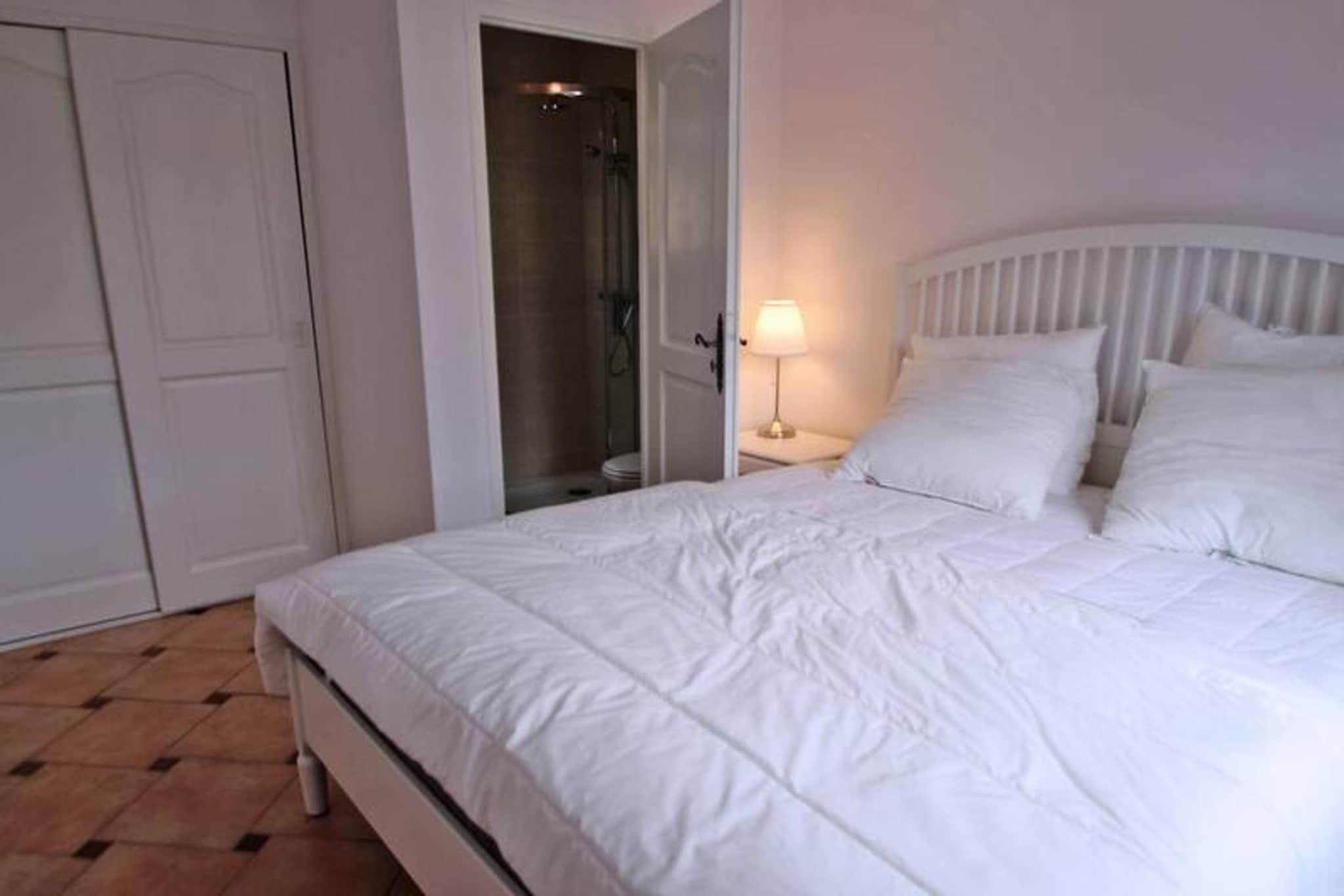 Denne rummelige 3-værelses lejlighed er designet til at rumme op til 4 personer og tilbyder et behageligt ophold med moderne bekvemmeligheder. Opholdsstuen har en hyggelig sofa, fladskærms-tv og et spisebord med direkte adgang til en terrasse med dejlig udsigt. Lejligheden indeholder to velindrettede soveværelser, hvoraf det ene har en dobbeltseng og det andet to enkeltsenge. Aircondition er tilgængeligt i stuen og soveværelset, hvilket sikrer komfort overalt. Ejendommen er ikke kæledyrsvenlig og er ideel for gæster, der søger et fredeligt og afslappende miljø. Denne lejlighed ligger kun 500 meter fra byens centrum og 350 meter fra stranden og giver nem adgang til lokale attraktioner, butikker og caféer. Den centrale beliggenhed giver gæsterne mulighed for at udforske de charmerende gader i Sainte-Maxime, nyde kystudsigten og opdage nærliggende markeder. Restauranter og butikker ligger også inden for gåafstand, hvilket gør det bekvemt at nyde den lokale kultur og det lokale køkken. Lejligheden er fuldt udstyret til et ophold med egen forplejning, med et veludstyret køkken med 4-brænder kogeplade, opvaskemaskine, kaffemaskine, brødrister, kedel og alt nødvendigt køkkenudstyr. Badeværelset inkluderer et badekar og et separat brusebadeværelse for bekvemmelighed. Yderligere faciliteter omfatter en vaskemaskine, hvilket gør den velegnet til længere ophold, og en underjordisk parkeringsplads til gæster med bil.