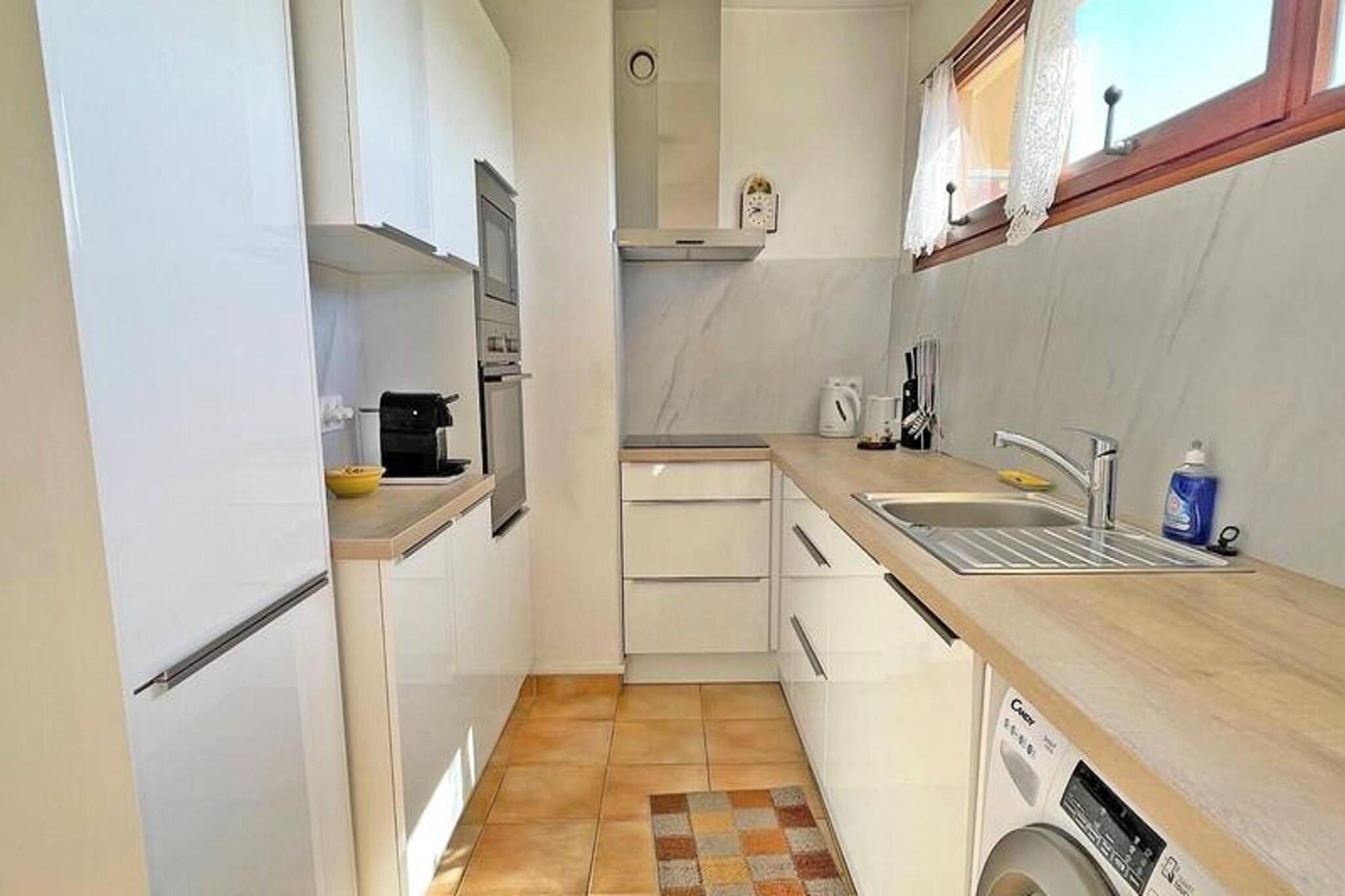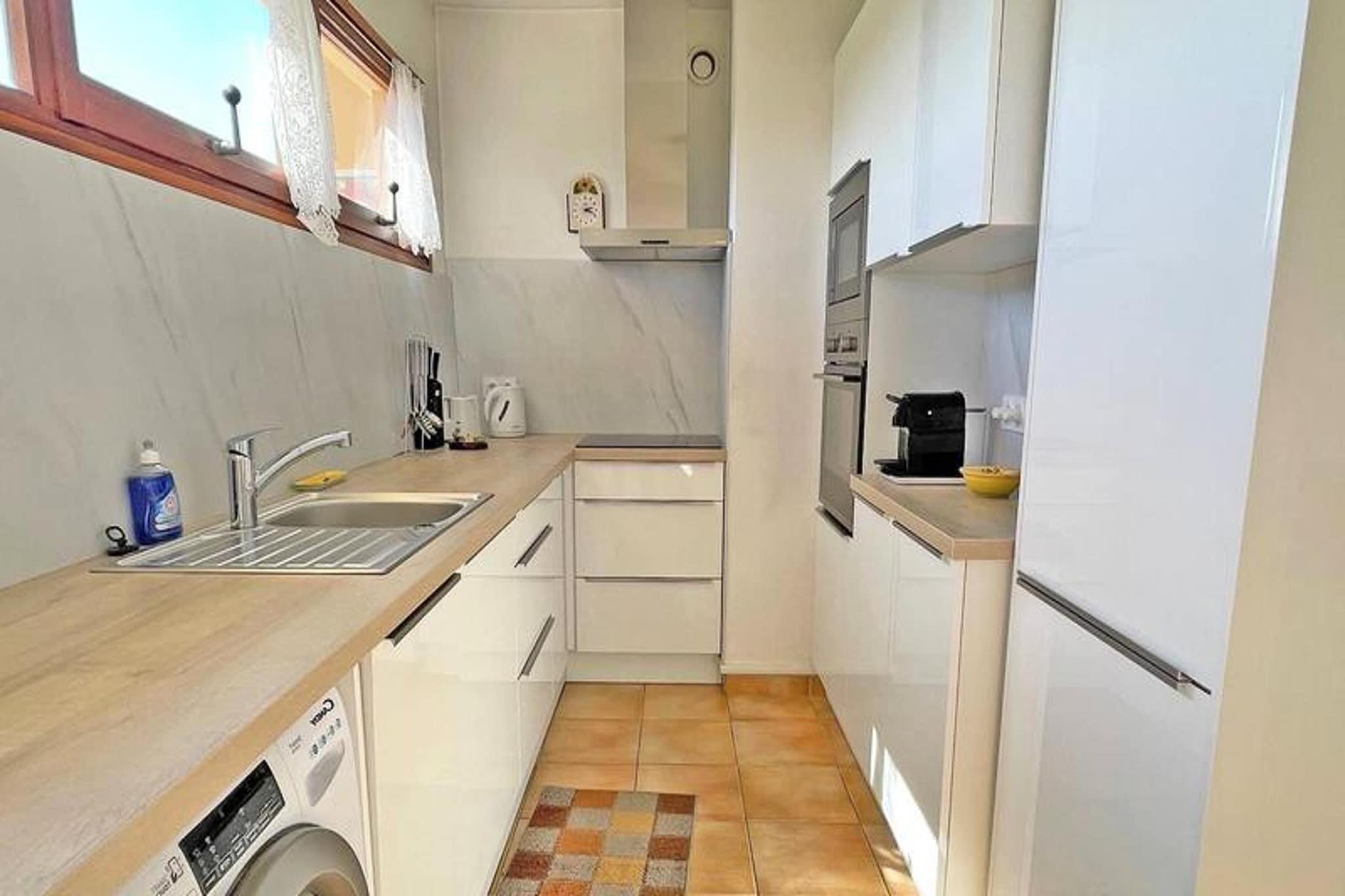 Denne rummelige 2-værelses lejlighed tilbyder komfortabel indkvartering for op til fire gæster. Den har en hyggelig 160 cm dobbeltseng i soveværelset og en 140 cm sovesofa i stuen, perfekt til yderligere gæster. Lejligheden er kæledyrsvenlig, så du kan medbringe dine lodne ledsagere. Nyd bekvemmeligheden med aircondition, WiFi og gratis parkering i boligen. Ejendommen er ideelt beliggende i hjertet af Sainte-Maxime, med stranden kun 500 m væk og butikker kun 100 m fra døren. Udforsk den livlige bymidte, kun 350 m fra lejligheden, hvor du finder en række caféer, restauranter og markeder. Uanset om du ønsker at slappe af ved havet eller nyde et måltid på en nærliggende restaurant, er alt inden for nem gåafstand. Lejligheden har et veludstyret tekøkken med køleskab, fryser, ovn, kedel og opvaskemaskine, hvilket gør den ideel til at tilberede dine egne måltider. Badeværelset har brusekabine og vaskeskab, mens det separate toilet tilføjer ekstra bekvemmelighed. En privat sydvendt terrasse med spise- og afslapningsmøbler fuldender lejligheden og tilbyder et perfekt sted at slappe af.