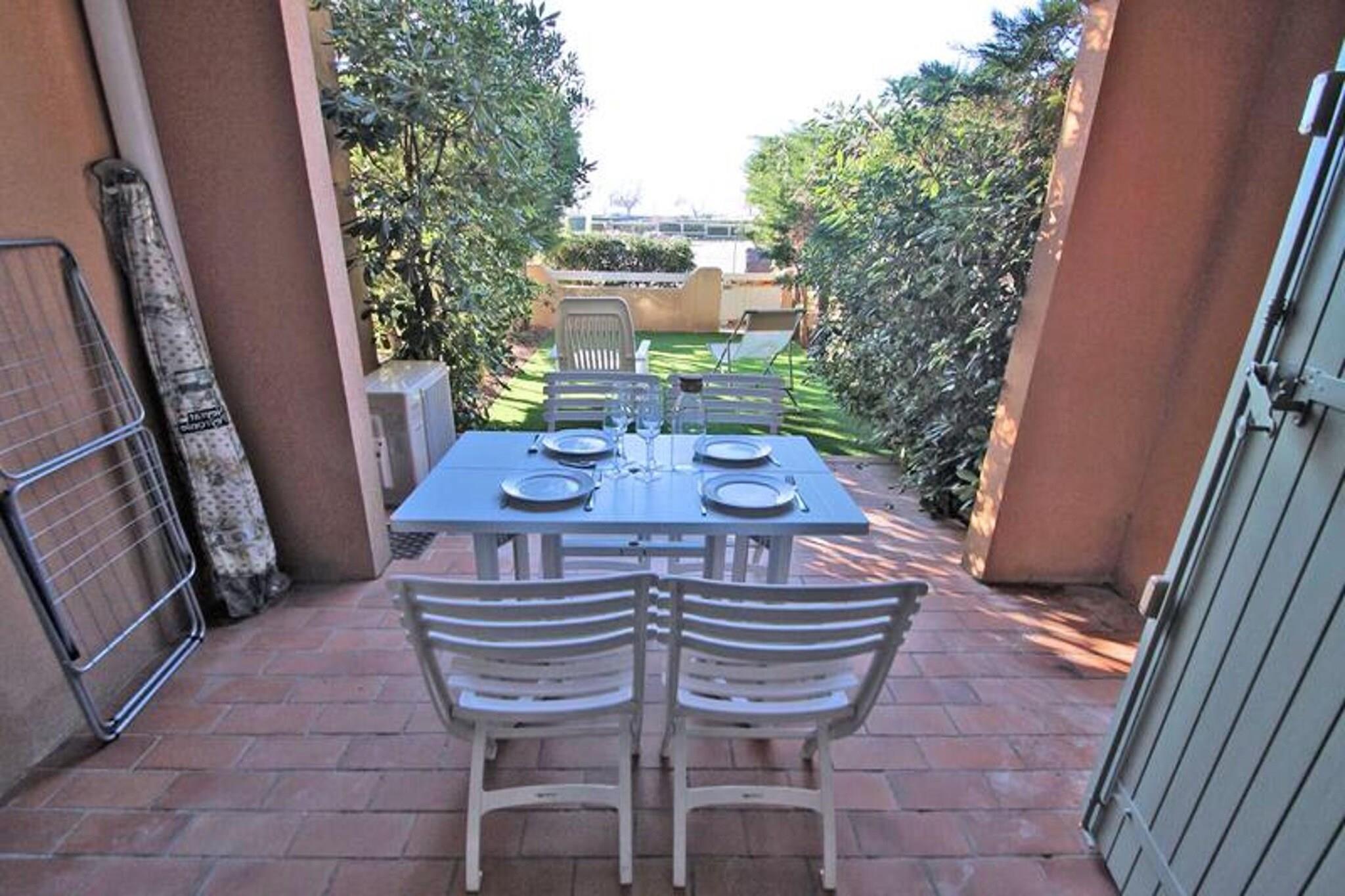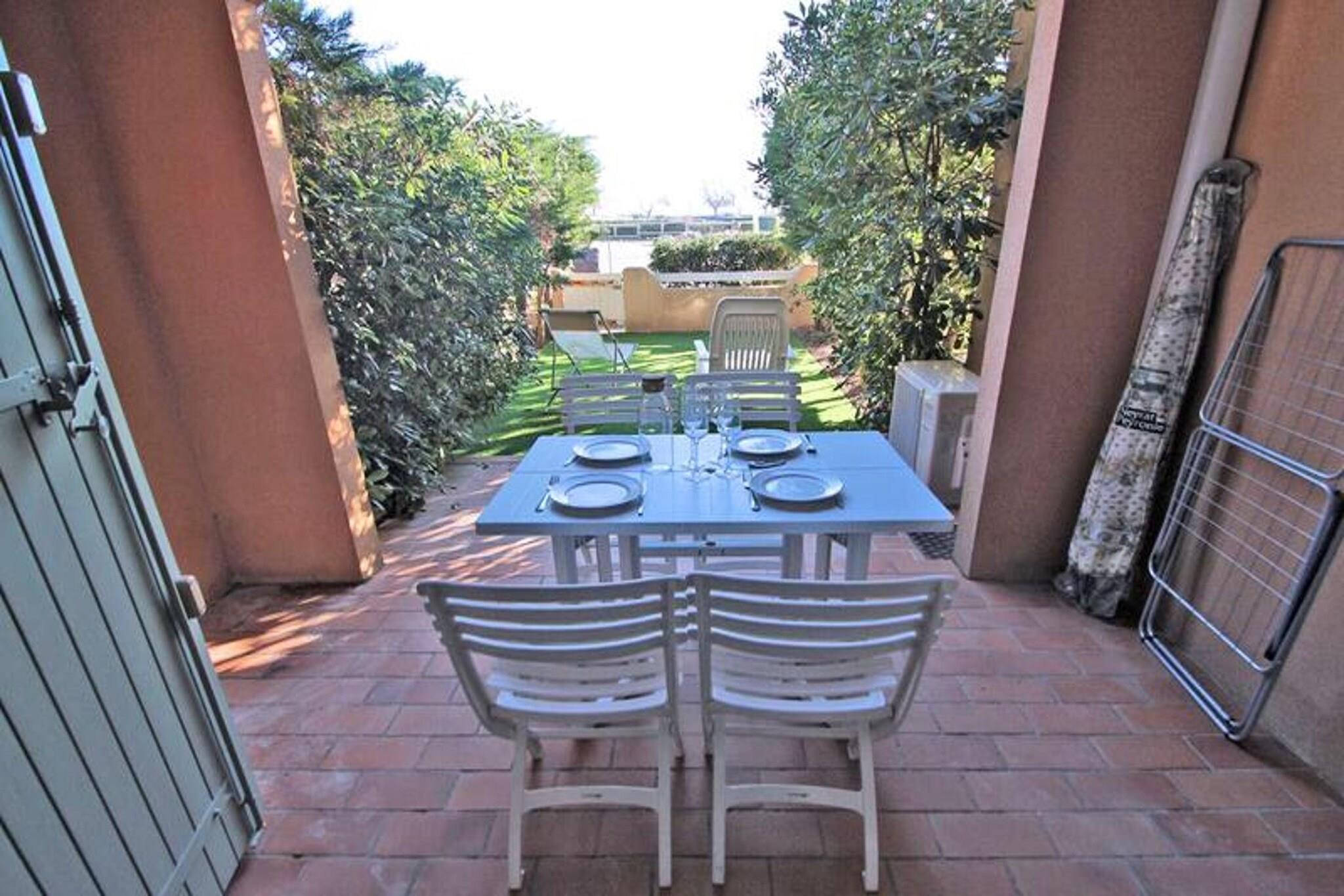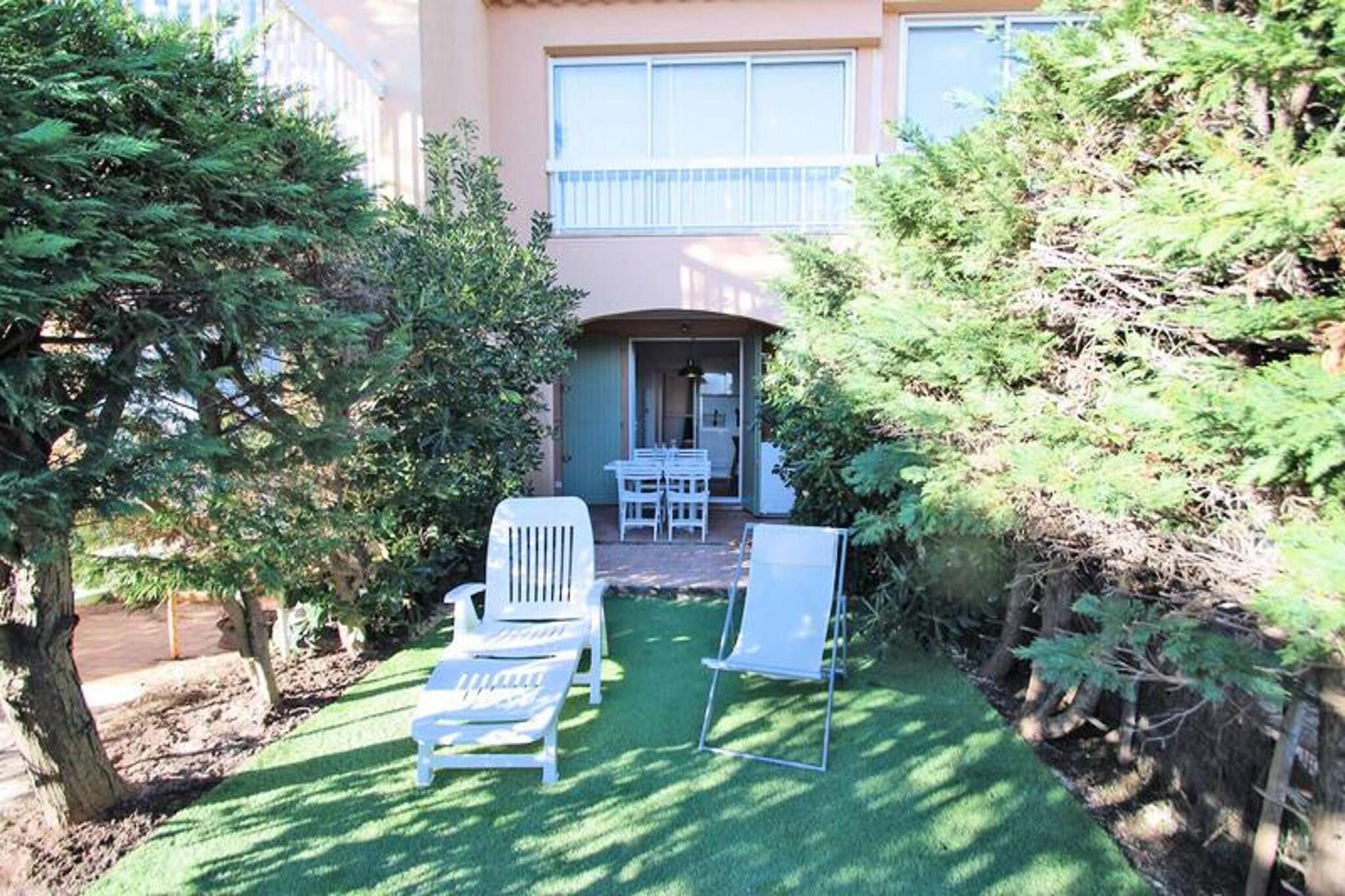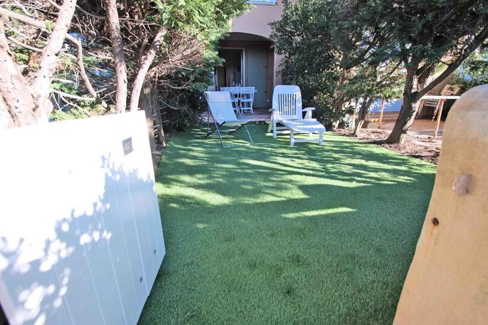 Denne charmerende 2-værelses lejlighed er perfekt til en familieferie, og tilbyder komfortabel indkvartering for op til fire personer. Den airconditionerede stue har en køjesovesofa (2x90), et tv og en spiseplads med bord og stole. Soveværelset er adskilt af en skydedør og inkluderer en 140 cm seng, skab og vindue med skodde. Yderligere faciliteter omfatter et badeværelse med bruser og håndvask samt et separat toilet. Beliggende kun 50 m fra stranden og restauranterne i Nartelle, er denne lejlighed ideelt placeret til en ferie ved havet. Byens centrum er 3000 m væk, mens butikker er blot 50 m fra ejendommen. Alt hvad du behøver for en afslappende strandferie er inden for gåafstand, hvilket gør det til et ideelt udgangspunkt for at udforske området. Lejligheden byder på et veludstyret køkkenområde med en 4-brænder kogeplade, ovn, køleskab, fryser, mikroovn og en italiensk kaffemaskine. En overdækket terrasse på 8m² er perfekt til spisning eller afslapning udendørs, og den 12m² store have har syntetisk græs og afslapningsmøbler. En privat parkeringsplads er også tilgængelig for din bekvemmelighed.