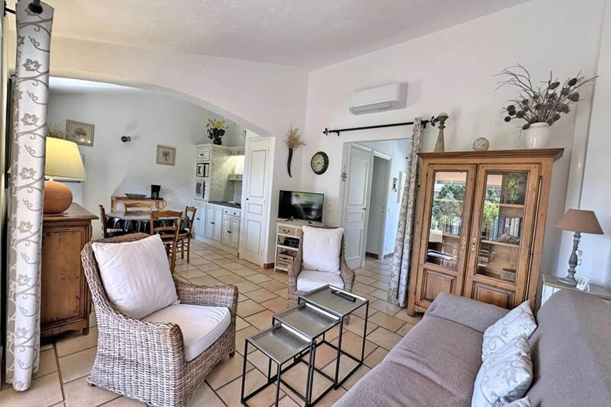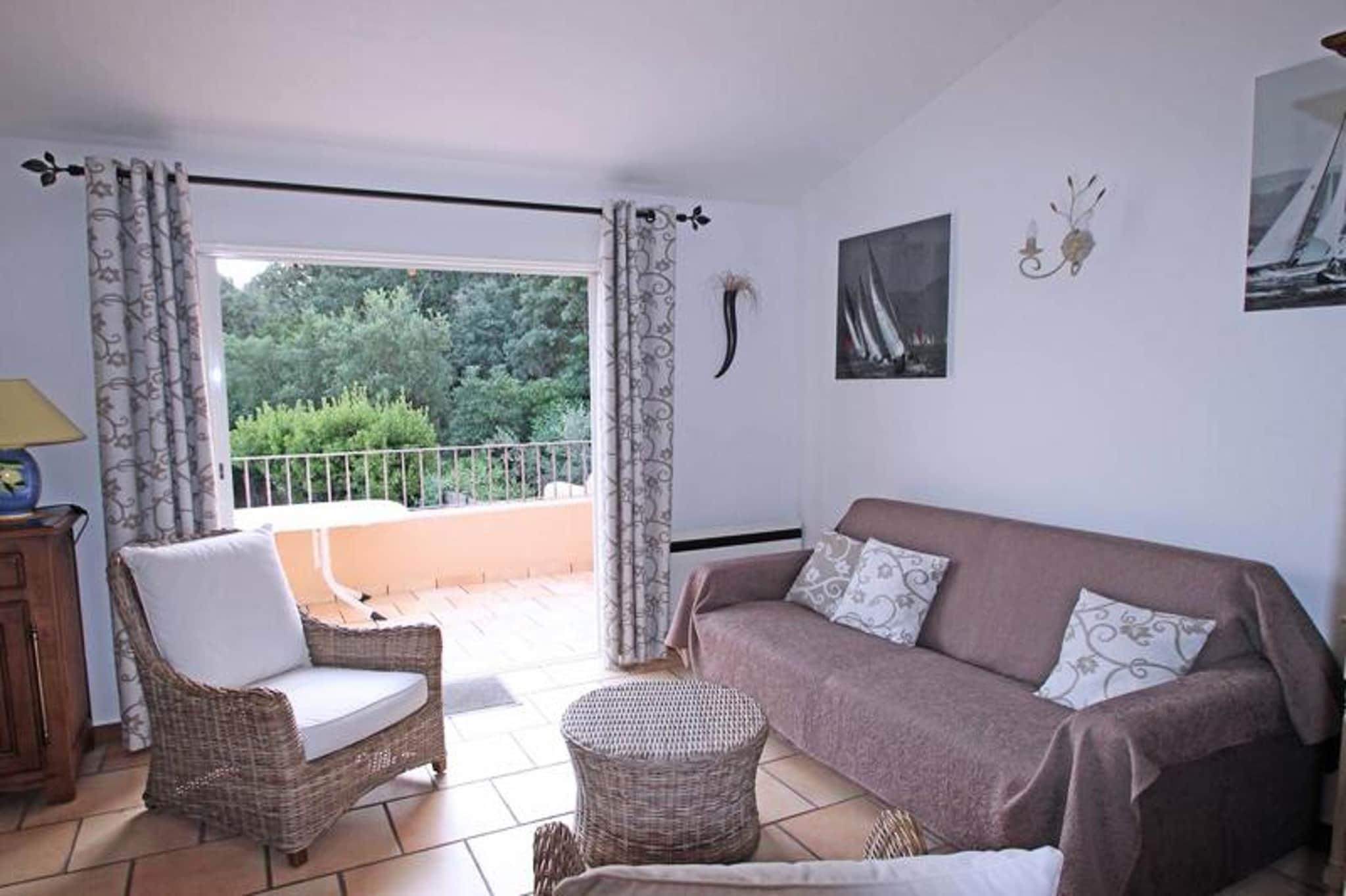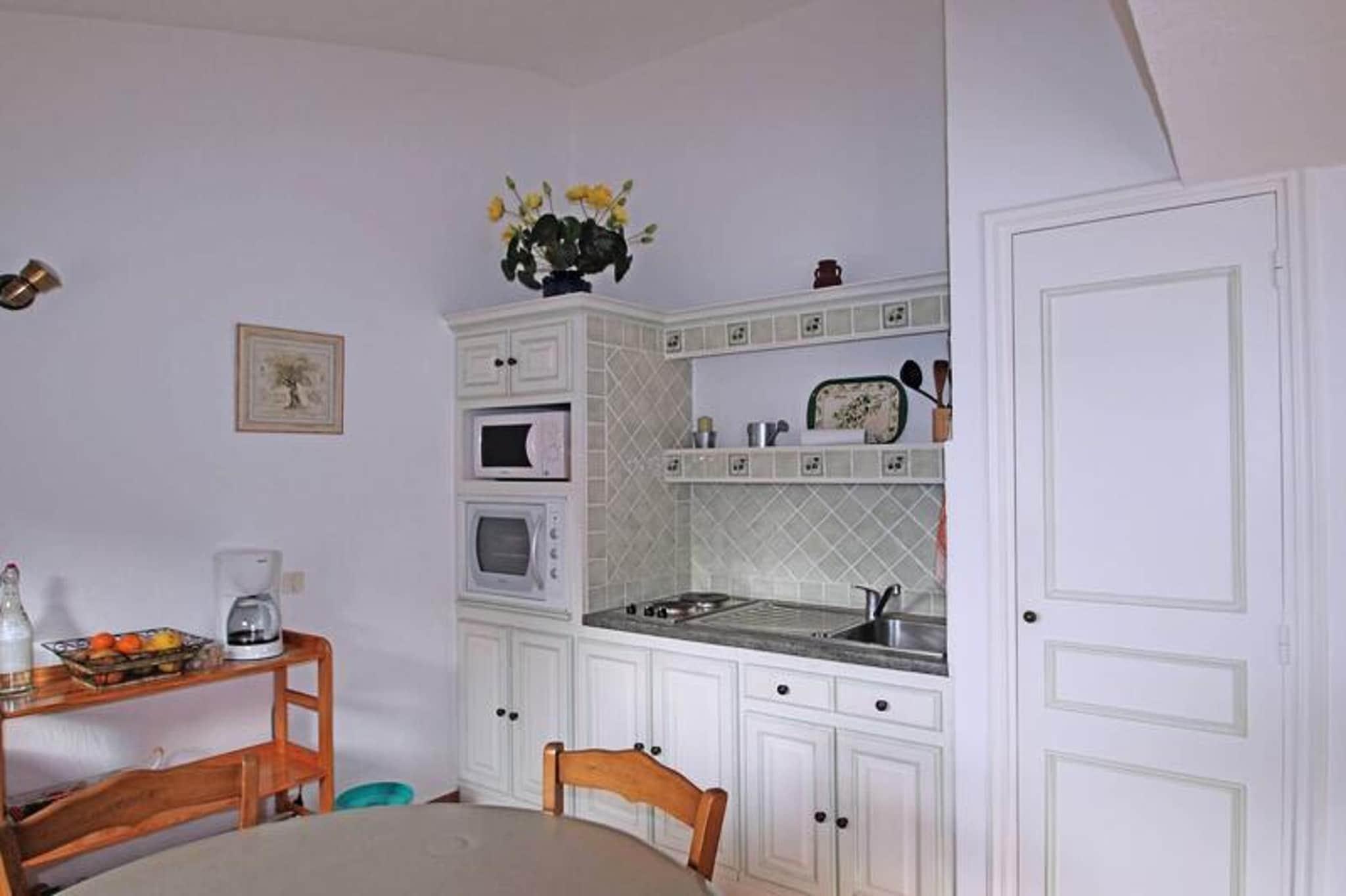 Denne hyggelige 2-værelses lejlighed tilbyder komfortabel indkvartering for op til 4 personer, ideel til en afslappende ferie. Den airconditionerede stue har en 140 cm hurtig sovesofa, et fladskærms-tv og adgang til terrassen, mens soveværelset har en 140 cm dobbeltseng og opbevaringsplads. Lejligheden er beliggende i en fredelig bolig med swimmingpool (lukket fra oktober til maj) og tennisbaner. Kæledyr er ikke tilladt, hvilket sikrer et roligt og behageligt miljø for alle gæster. Lejligheden er beliggende 1,8 km fra både byens centrum og stranden, hvilket giver nem adgang til lokale attraktioner og den pulserende kystatmosfære. Butikker er kun 800 meter væk, og det omkringliggende område byder på smuk udsigt over bjergene, perfekt til at slappe af efter en dag med udforskning. Nyd den behagelige beliggenhed med en blanding af ro og bekvemmelighed. Ejendommen har et veludstyret semi-uafhængigt køkken med moderne apparater, herunder en 2-brænder induktionskomfur, køleskab, fryser, vaskemaskine, ovn og mikroovn. Badeværelset er udstyret med vaskeskab og bruser, mens det uafhængige toilet sikrer ekstra privatliv. Den 20 m² store terrasse med spise- og afslapningsmøbler giver et perfekt sted til udendørs måltider eller til at nyde den friske luft.