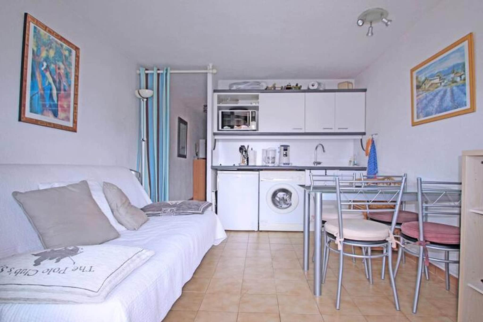 Denne charmerende studiolejlighed på 24 m² er beliggende på 4. sal i en bolig i centrum af Sainte-Maxime og er perfekt til op til 4 gæster. Den airconditionerede stue har en 140 cm sovesofa, et fladskærms-tv og en spiseplads med bord og stole. Det åbne køkken er veludstyret med køleskab, fryser, mikroovn, kaffemaskine og vaskemaskine. Kabinen byder på en hyggelig dobbeltseng (140 cm), og badeværelset har brusekabine og vaskeskab. Lejligheden har desuden separat toilet og vestvendt terrasse med havemøbler og markise, ideel til at nyde de lune aftener. Gæsterne vil nyde lejlighedens førsteklasses beliggenhed, kun 150 meter fra byens centrum og 300 meter fra stranden, hvilket gør det nemt at udforske området til fods. Butikker er blot 50 meter væk, hvilket giver nem adgang til det vigtigste. Boligen har en fælles swimmingpool (lukket fra oktober til maj), der tilbyder en forfriskende flugt i de varmere måneder. Området er ideelt for dem, der ønsker at nyde alt, hvad Sainte-Maxime har at tilbyde uden at skulle bruge en bil. Lejligheden inkluderer yderligere faciliteter såsom WiFi (fiber), aircondition i stuen og en privat overliggende parkeringsplads i boligen. Det er et perfekt sted for en afslappende ferie med alt inden for gåafstand. Bemærk venligst, at kæledyr ikke er tilladt, hvilket sikrer et fredeligt miljø for alle gæster.