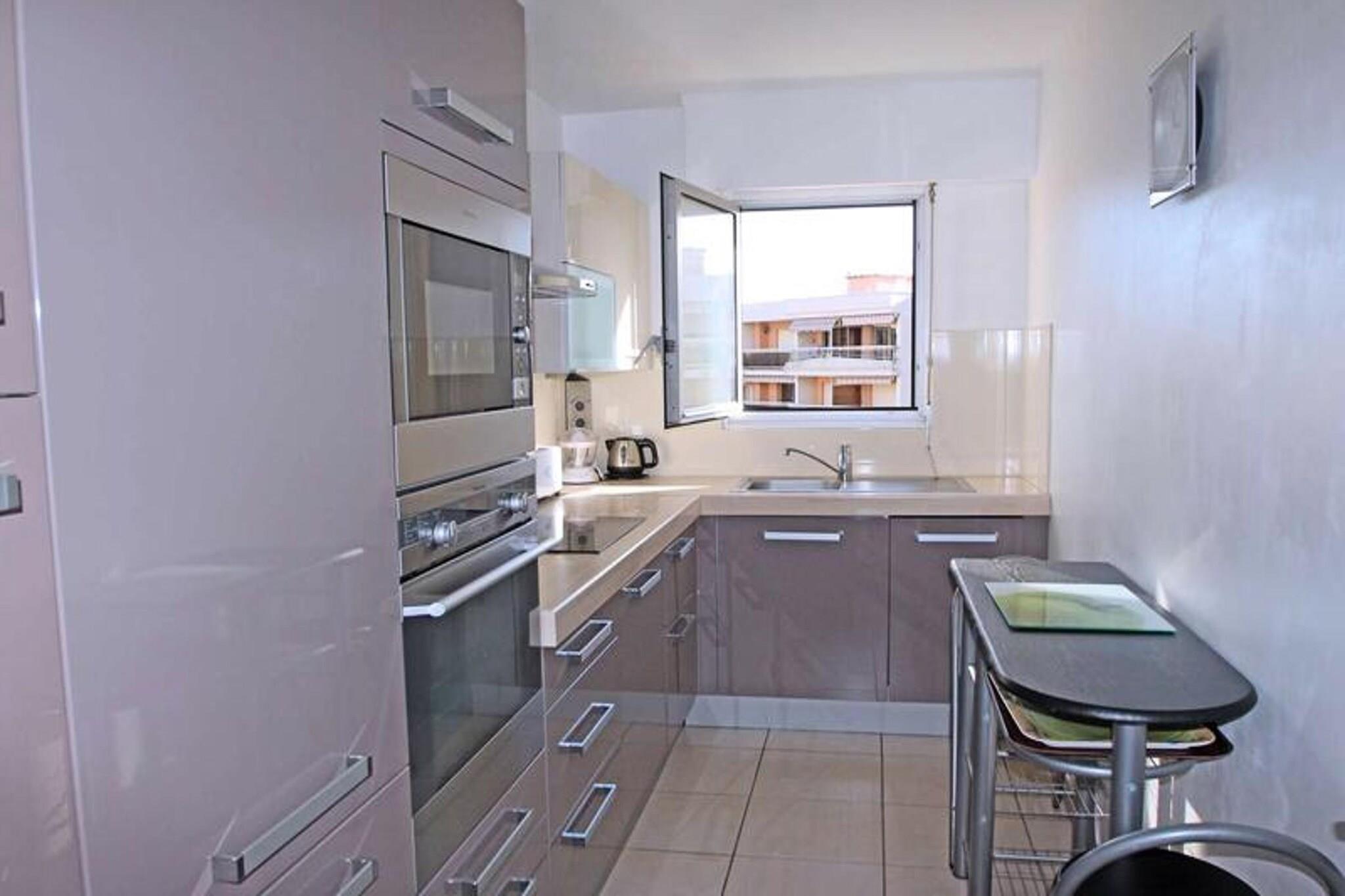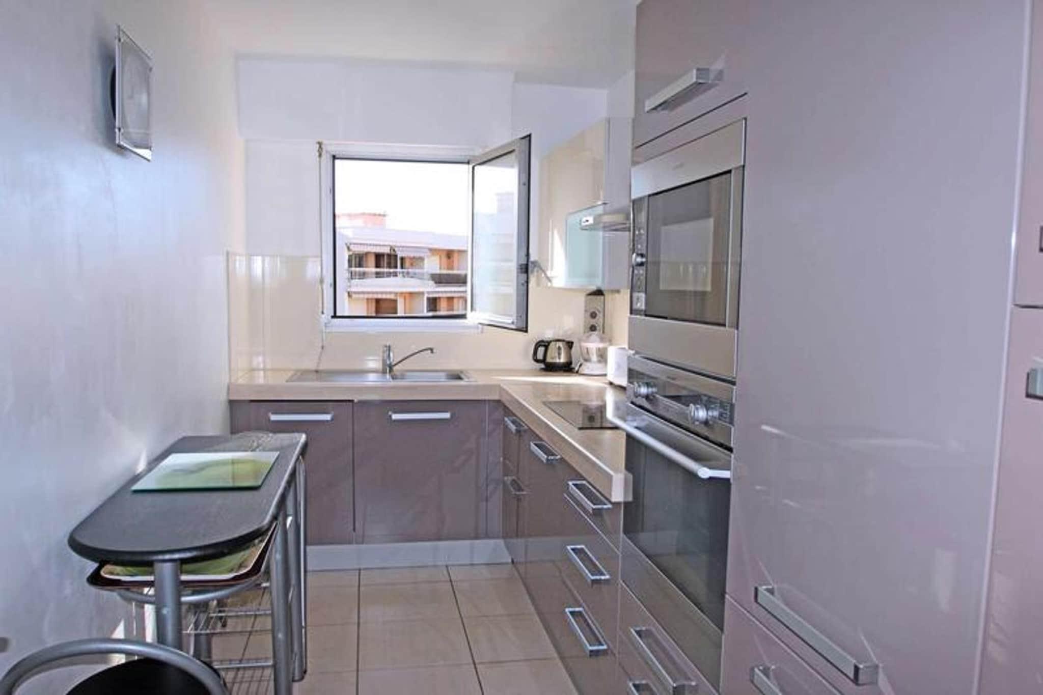 Denne rummelige 3-værelses lejlighed er ideel til op til 5 gæster, og tilbyder en komfortabel og velindrettet plads til familie eller venner. Den airconditionerede stue har en 3-personers sofa, lænestol, skammel og en BZ-sofa samt en spiseplads med bord og stole, der alle fører til balkoner. Køkkenet er fuldt udstyret med køleskab, mixer, 3-brænder kogeplader, ovn, mikroovn, Nespresso kaffemaskine, opvaskemaskine, vaskemaskine og væsentlige redskaber. De to soveværelser har hver 160 cm senge, hvoraf det ene også har adgang til en balkon, mens badeværelset har bruser og vaskeskab. Denne lejlighed ligger kun 250 meter fra byens centrum og 400 meter fra stranden og tilbyder nem adgang til lokale attraktioner. Butikkerne ligger kun 100 meter væk, hvilket gør det praktisk til daglige behov. Gæsterne kan nyde områdets pulserende caféer og spisesteder, og for dem, der nyder udendørs aktiviteter, er det nærliggende område perfekt til gåture og afslapning. Yderligere faciliteter omfatter en privat parkeringsplads foran bygningen, en fælles cykelgarage og et solarium på taget til solbadning. Gæsterne kan slappe af på de 12 m² store balkoner, der er møbleret med spisemøbler og en liggestol. Lejligheden er udstyret med Wi-Fi, aircondition i stuen, og kæledyr er tilladt efter anmodning. For dem med børn er et babysæt tilgængeligt, hvilket sikrer et behageligt ophold for alle.